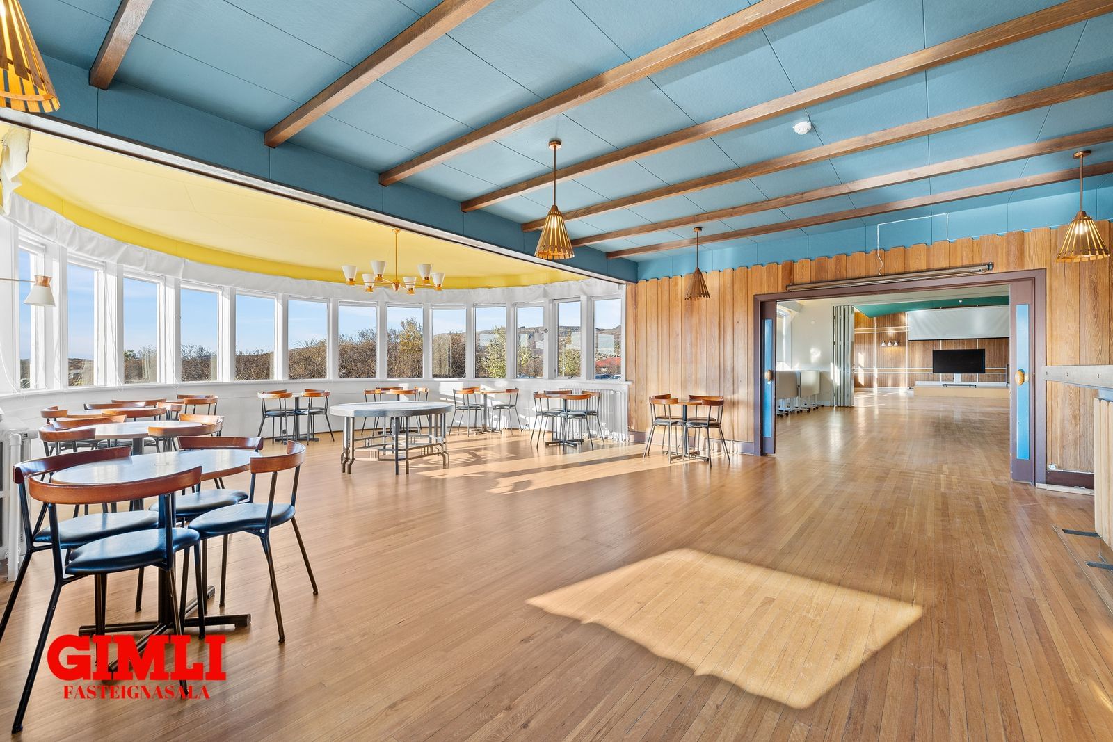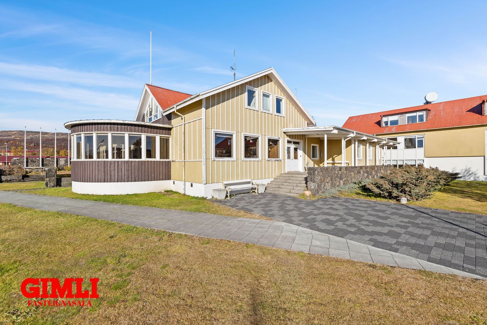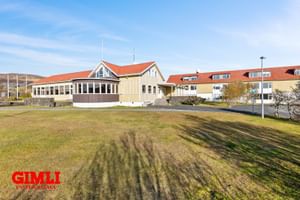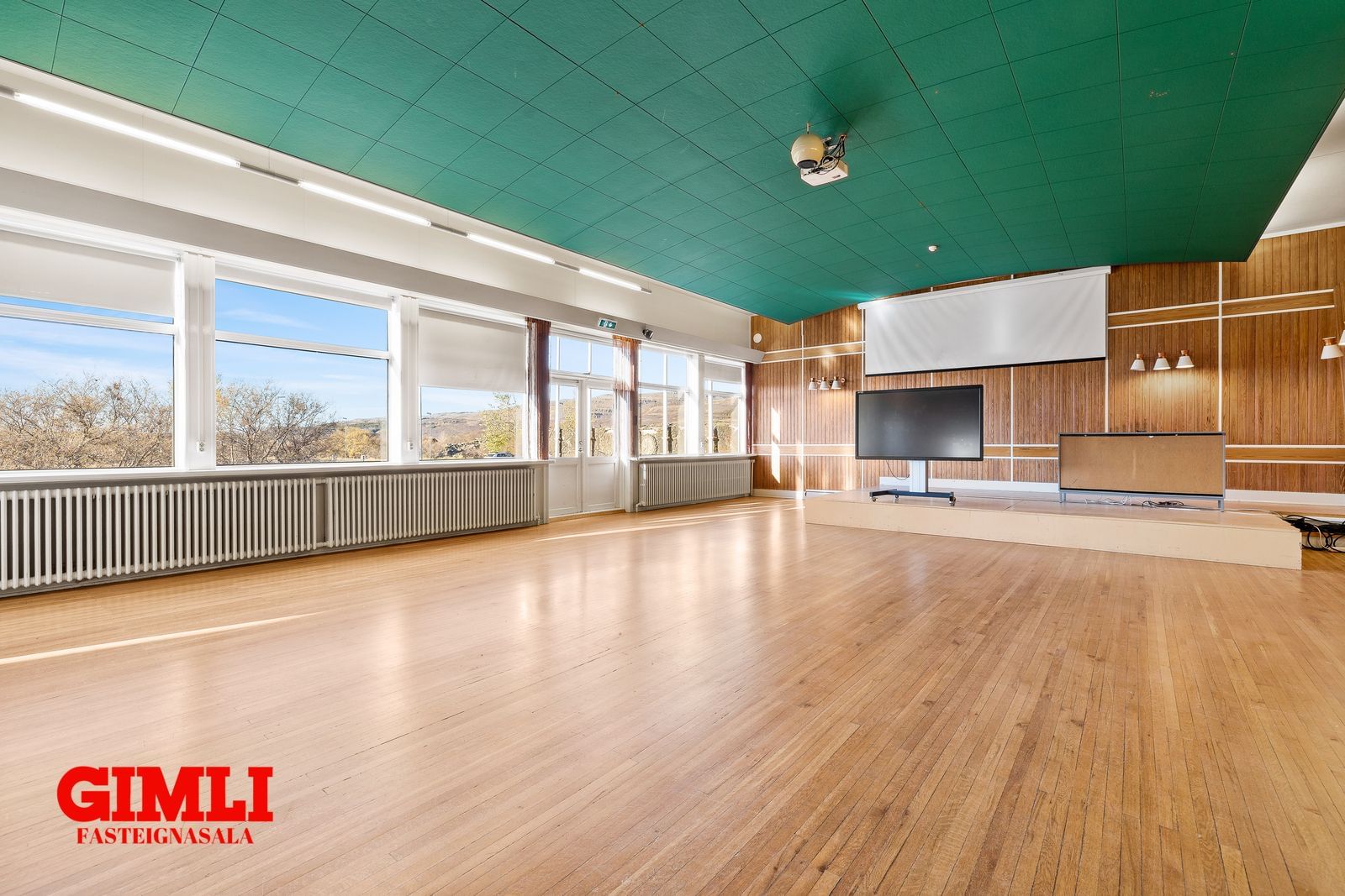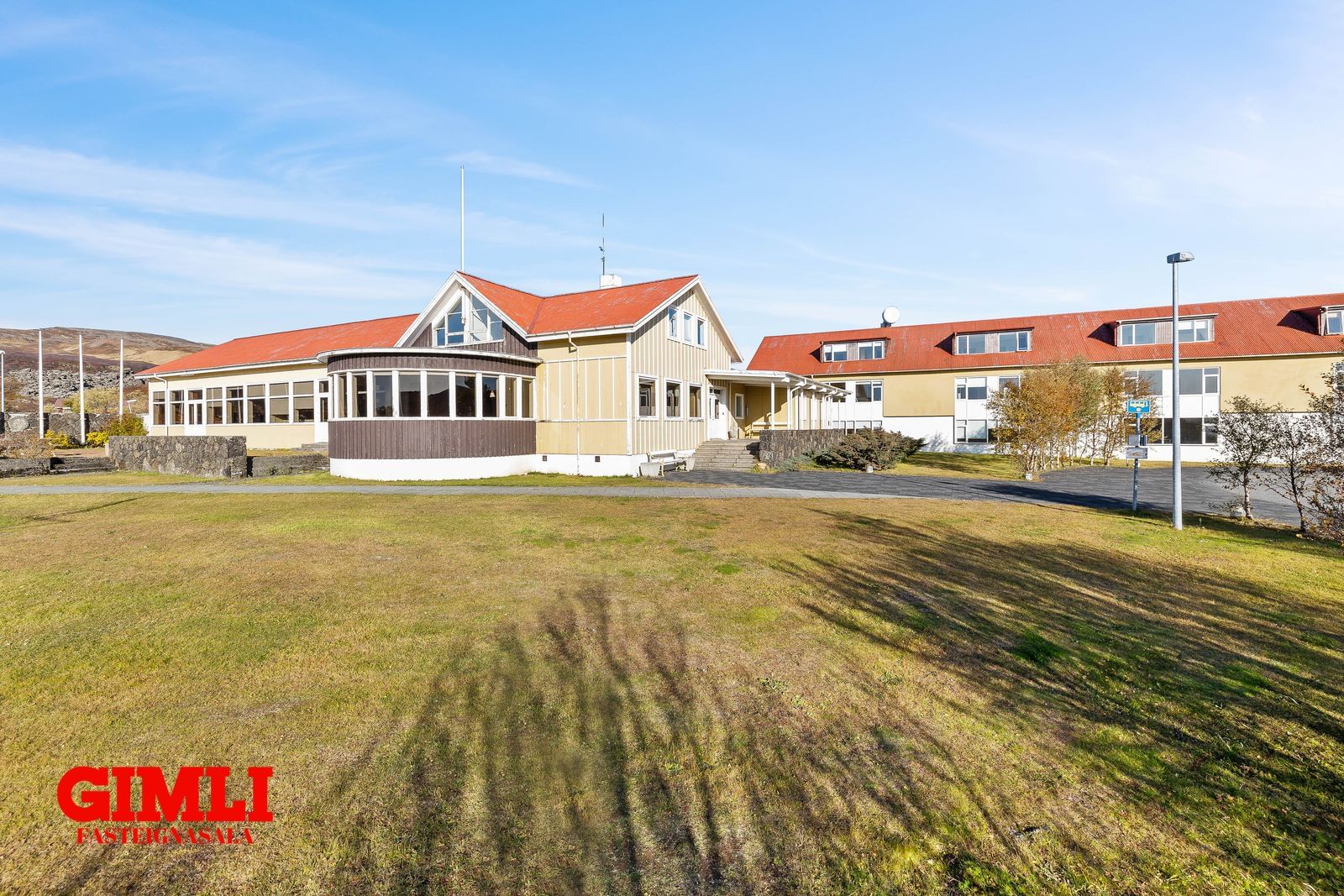 NÁNARI LÝSING:Skóli og visthús, samtals 3120,2 fm. Elsti hluti skólans, 669,2 fm, teiknaður af Sigvalda Thordarson, reistur 1950. Stór samkomusalur með aðliggjandi veitingaeldhúsi, setustofa með bogadregnum gluggum og arni, móttaka, snyrtingar og herbergi á 2.hæð.