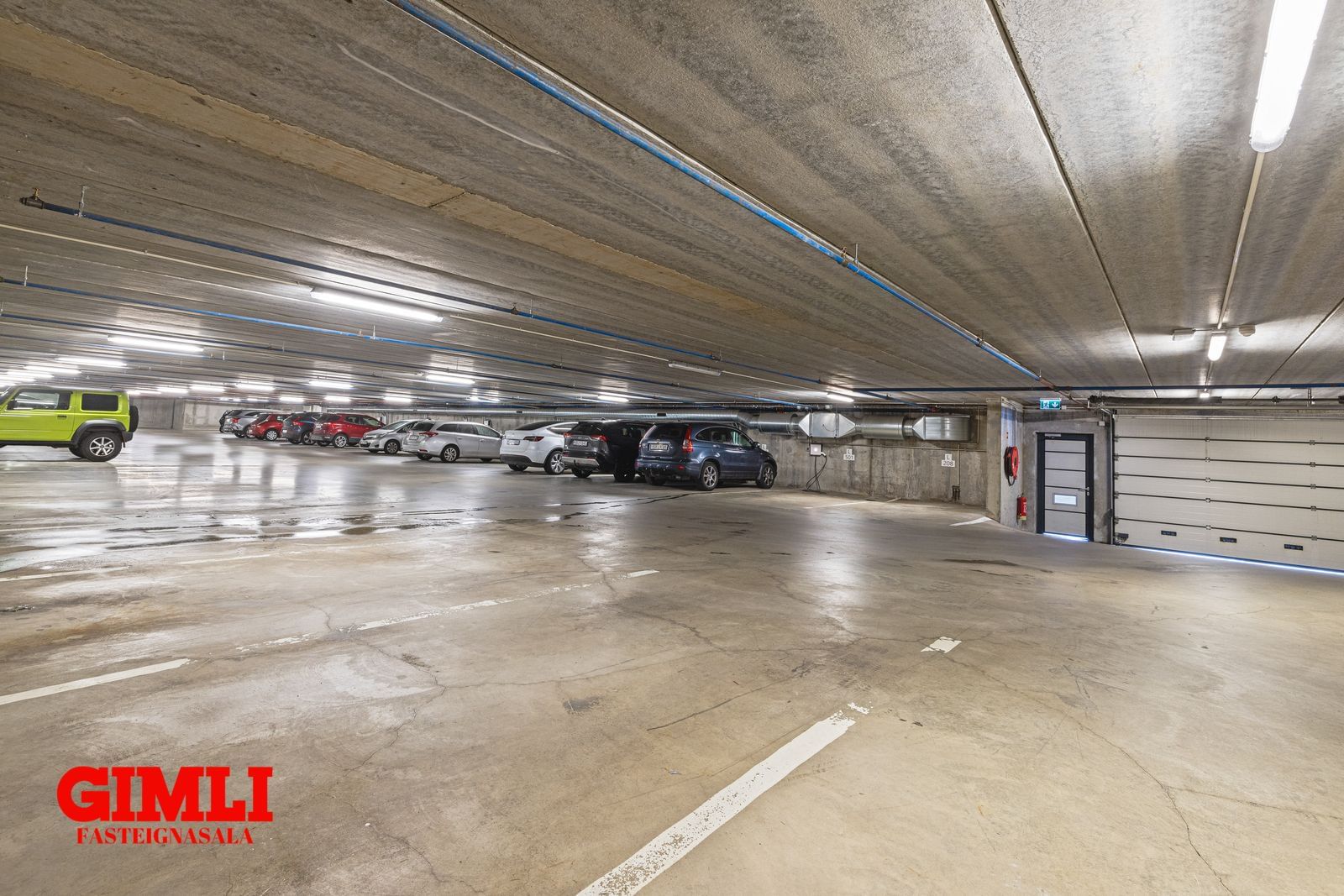 Bílastæði: Sérmerkt bílastæði í lokaðri bílageymslu, búið að draga að rafmagn fyrir hleðslustöð.