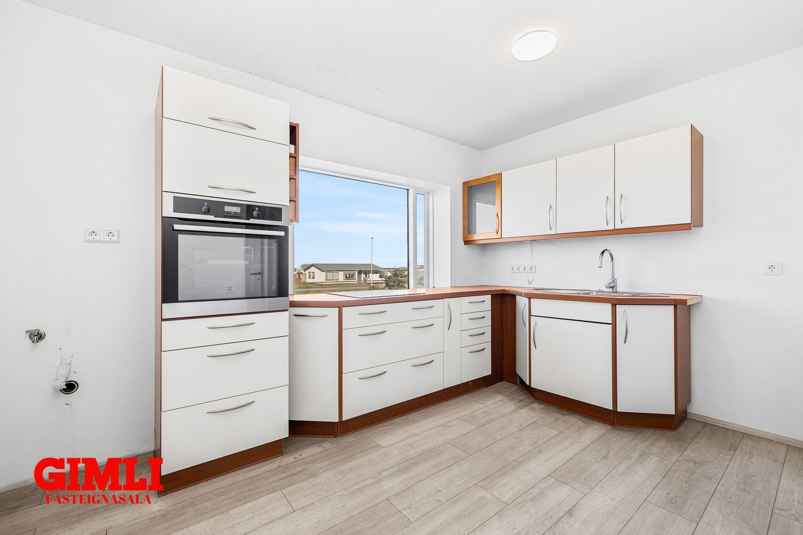 íbúð á hæð með stofu, eldhúsi, fjórum rúmgóðum svefnherbergjum og baðherbergi.