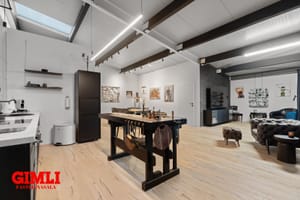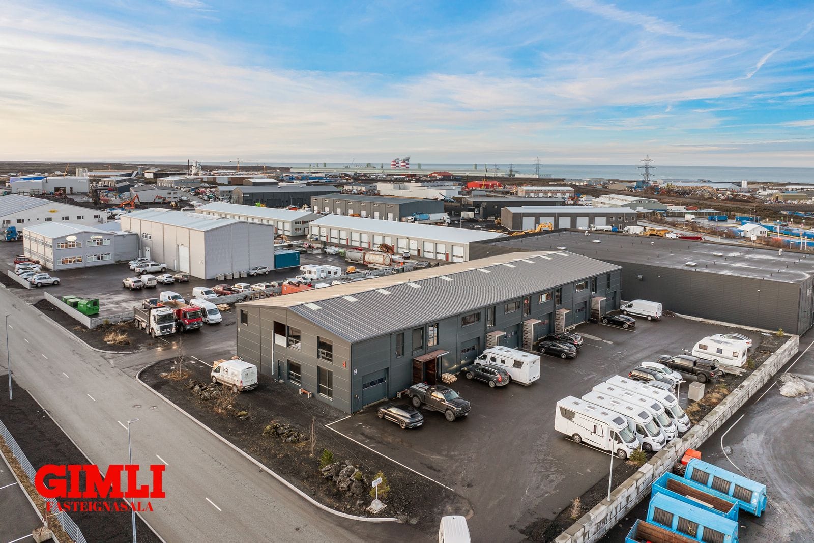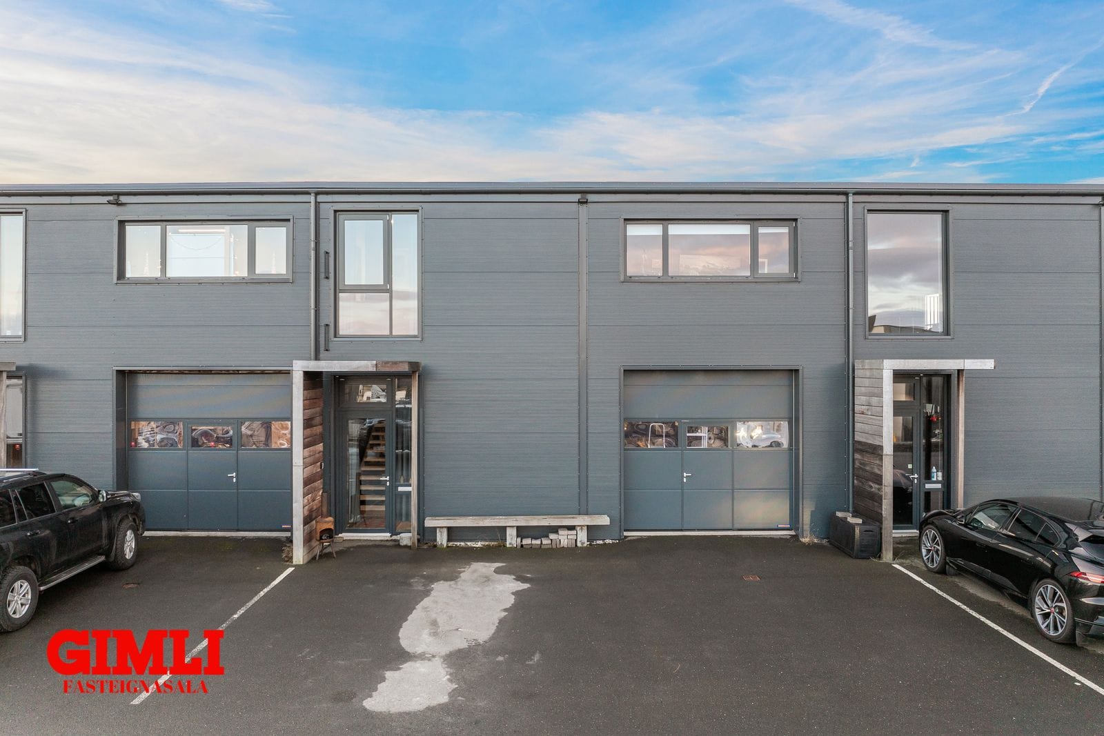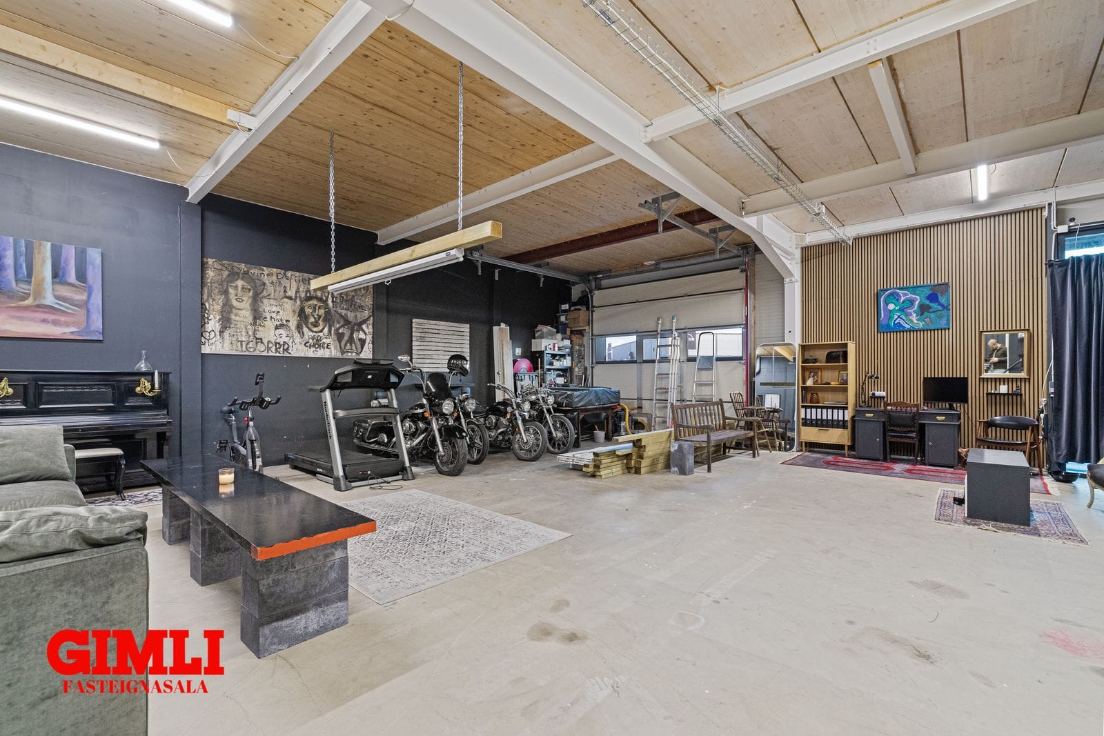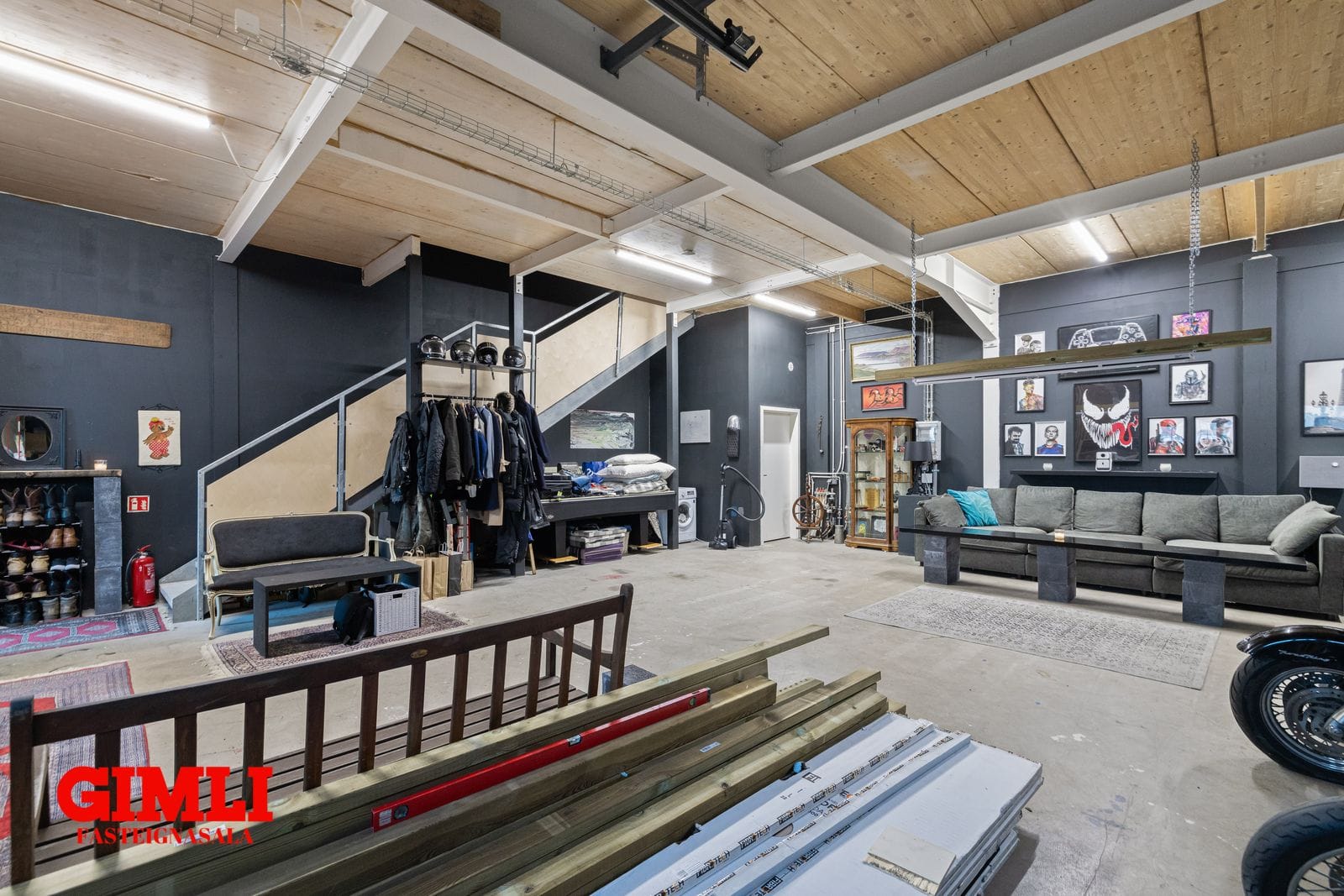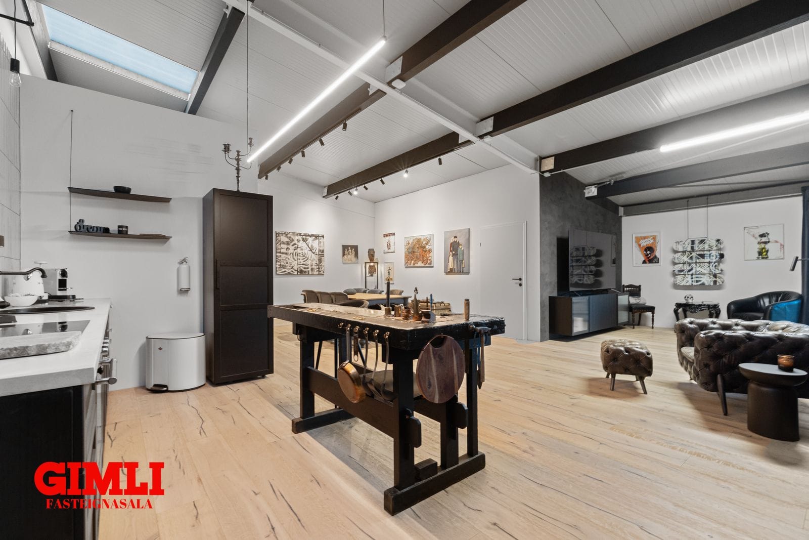 Gimli fasteignasala og Lilja Hrafnberg kynna: Álfhella 4, 221 Hafnarfjörður. Um er að ræða nýlegt 193,9 fm iðnaðarbil á tveimur hæðum. Aðkoma er að eigninni á neðri hæð með sérinngangi og stórri innkeyrsluhurð. Á efri hæð er búið að innrétta sérlega smekklega og rúmgóða íbúð sem skiptist í alrými; eldhús/stofu/borðsstofu, stórt svefnherbergi og baðherbergi. Á neðri hæðinni er opið rými sem hentar vel fyrir alls kyns atvinnustarfssemi og/eða áhugamál. Við inngang er stigi upp á 2.hæð og búið er að útbúa rými undir stiganum fyrir snyrtingu.