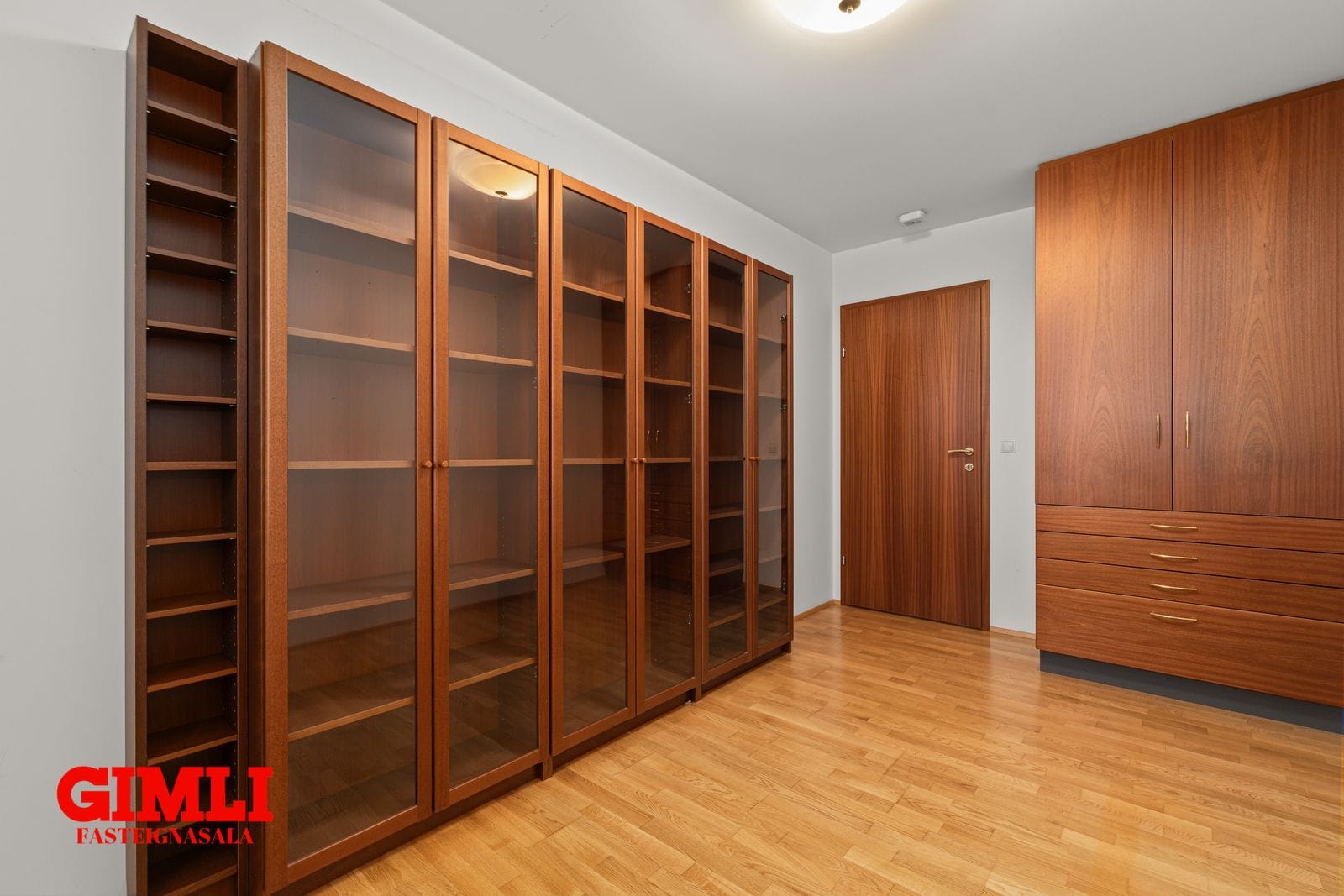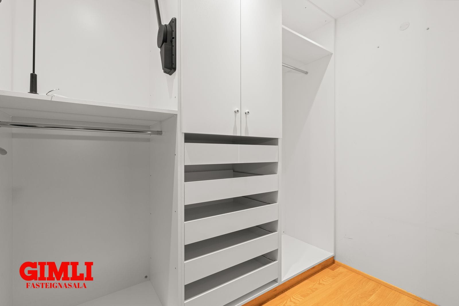 Fataherbergi: Með hvítum fataskáp, parket á gólfi. Fataherbergið var stúkað af barnaherbergi II en auðvelt að breyta á ný.