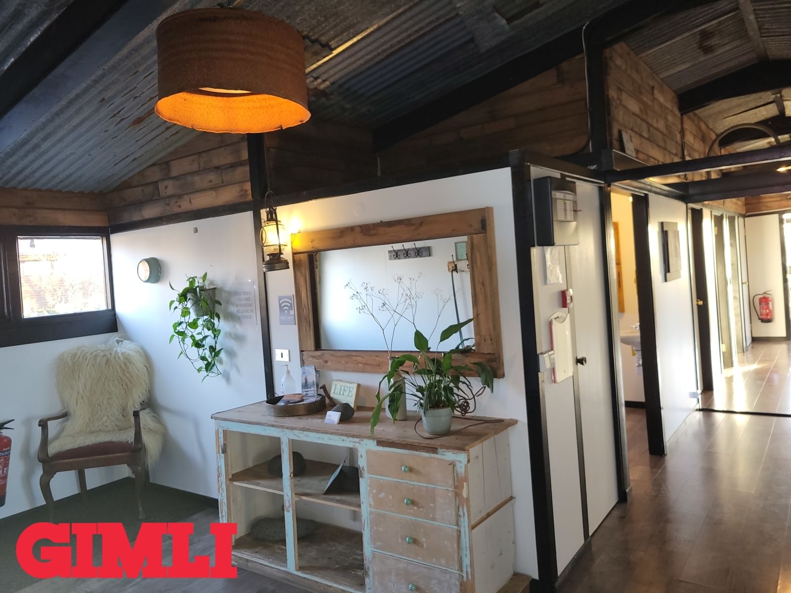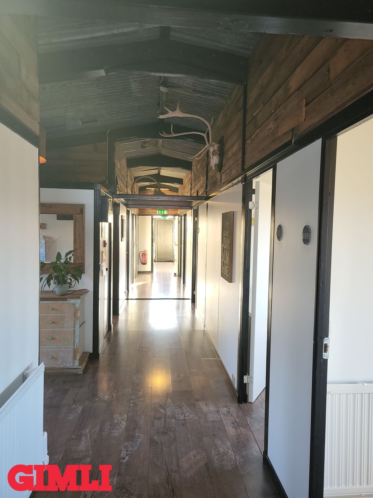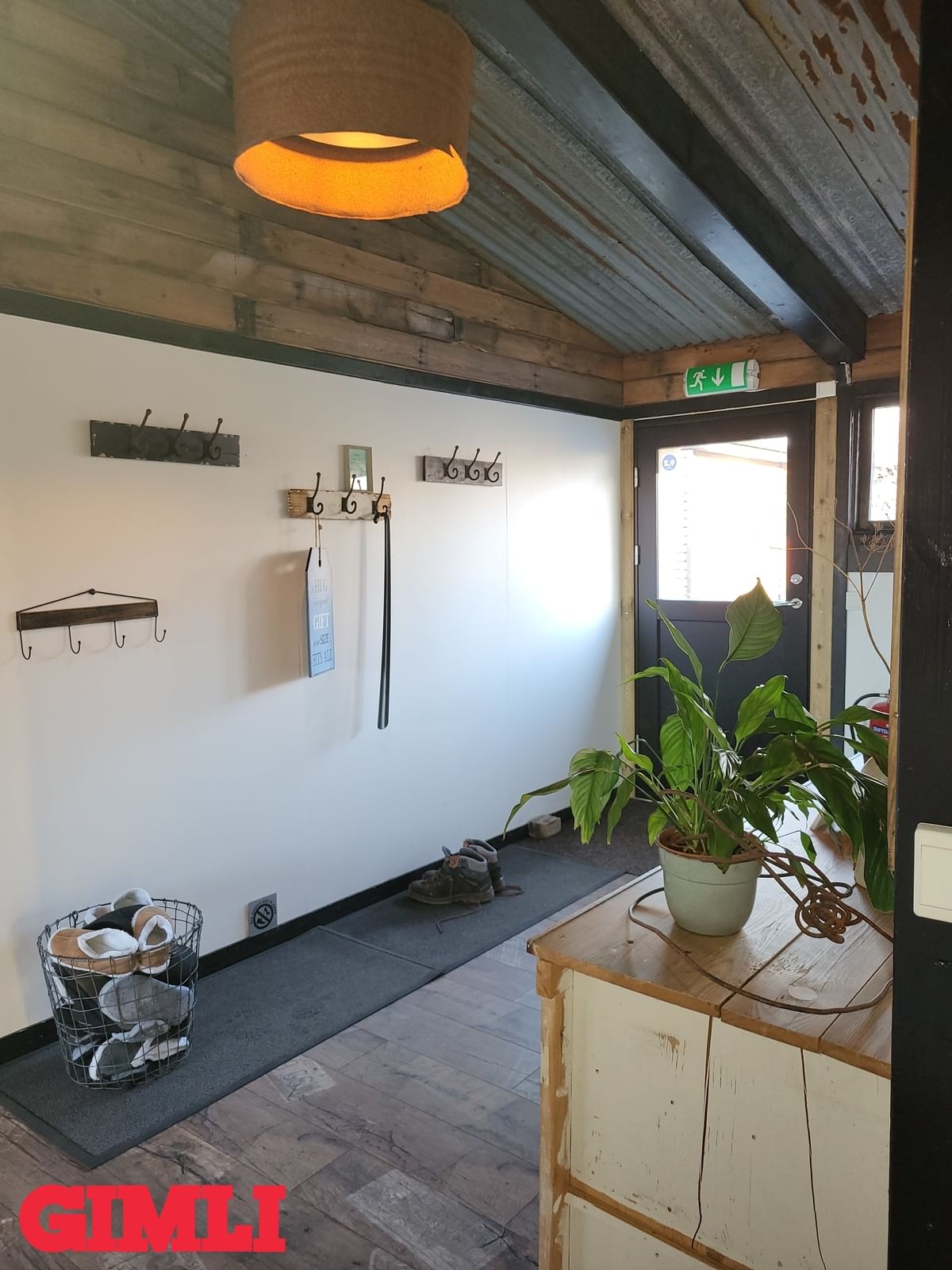 Hol/gangur: Skemmtileg stemning þegar gengið er um húsið sem er innréttað í fallegurm "rustic" stíl. Harðparket á gólfi og endurunnið bárujárn í lofti.