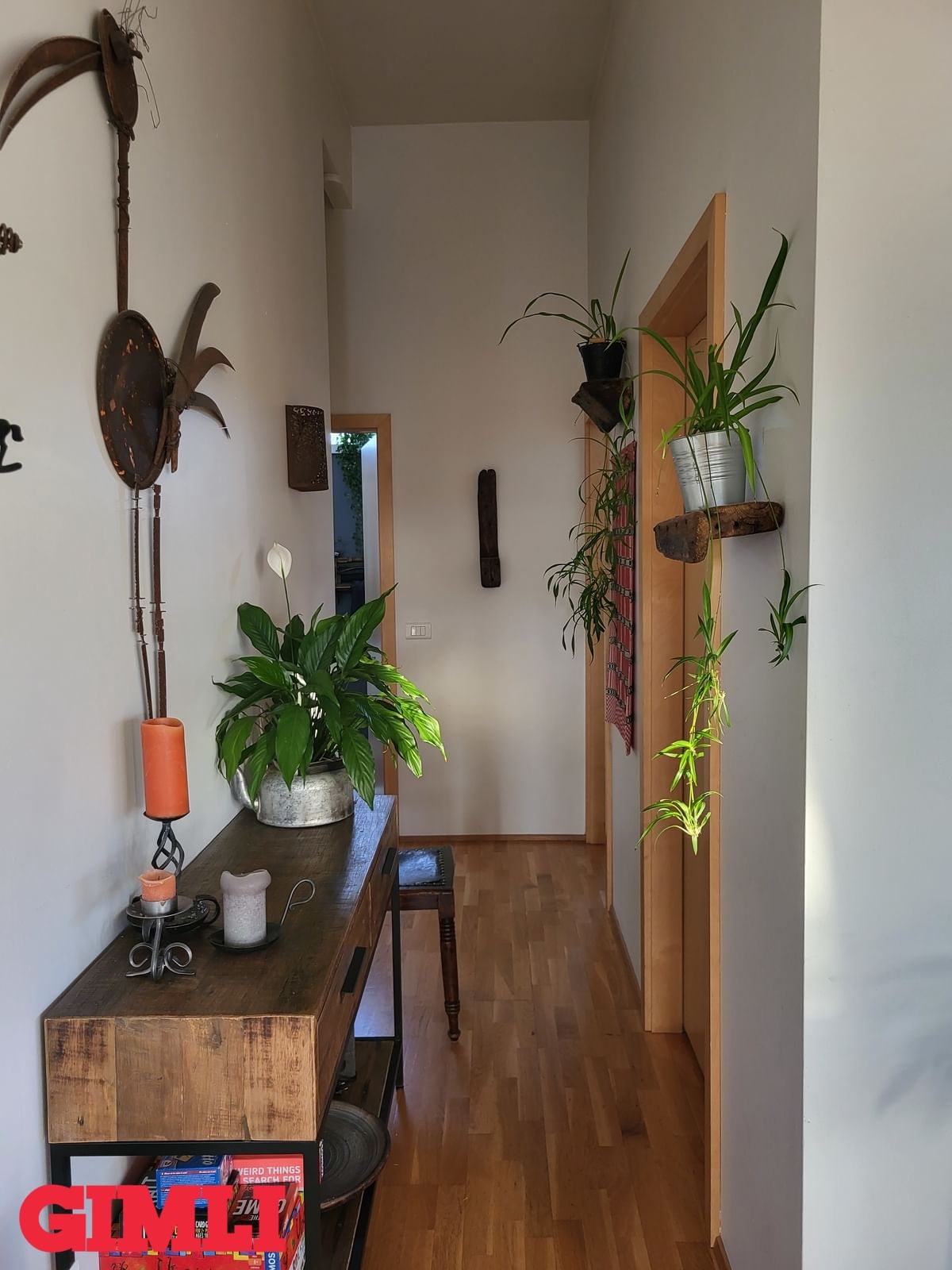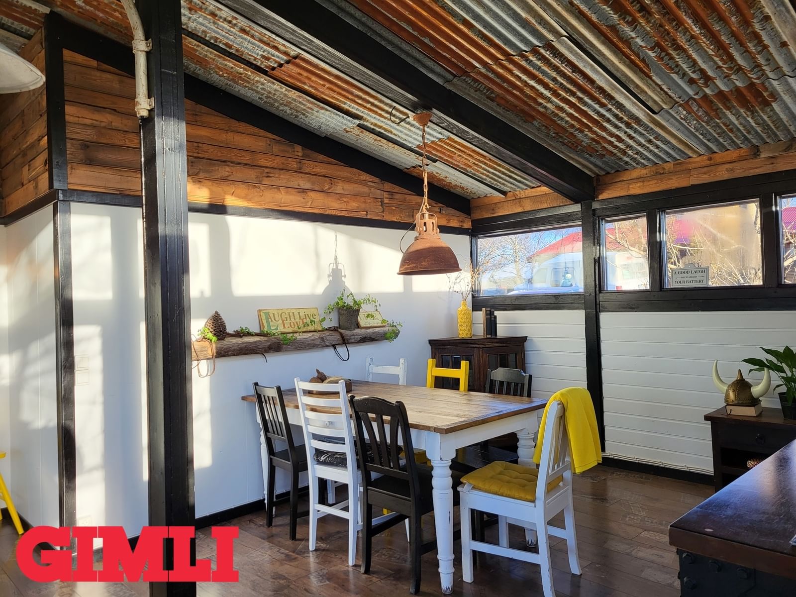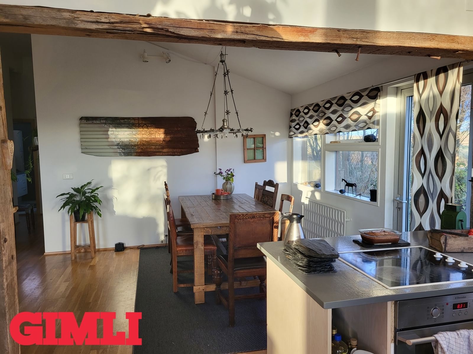 Hol/gangur: Skemmtileg stemning þegar gengið er um húsið sem er innréttað í fallegurm "rustic" stíl. Harðparket á gólfi og endurunnið bárujárn í lofti.