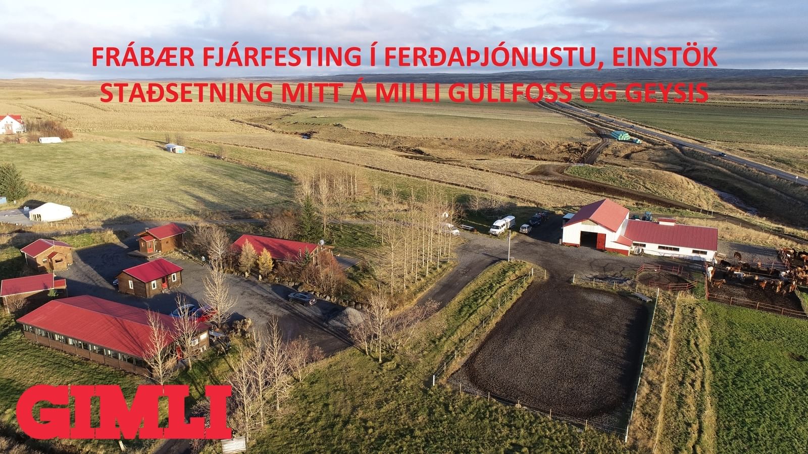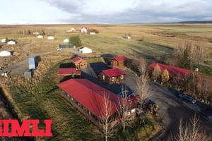 Þar við hliðina er borðsalur með vel útbúnu veislueldhúsi og eru gluggar á milli borðsals og hesthúss þar sem hægt er að fylgjast með hestunum. Veitingaleyfi fyrir 44 manns. Tvær snyrtingar í anddyri. Leigutekjur eru af útleigu af smá landskika norðan við gistihúsin þar sem eru nokkur hringlaga gistitjöld á steyptum grunniNánari upplýsingar veita Ólafur B. Blöndal, löggiltur fasteignasali, í síma 6900 811 eða tölvupósti olafur@gimli.is eða Lilja Hrafnberg, viðskiptafr./lögg. fasteignasali, í síma 820 6511 eða tölvupósti lilja@gimli.is, milli kl. 9:00 og 17:00 alla virka daga.Gimli er ein af elstu starfandi fasteignasölum landsins, stofnuð 1982 og fagnar því 40 ára starfsafmæli á árinu 2022. Leiðarljós Gimli er heiðarleiki og traust. Gimli, gerir betur...Um skoðunar- og aðgæsluskyldu kaupenda: Í lögum um fasteignakaup nr. 40/2002 er kveðið á um ríka skoðunarskyldu kaupenda á fasteignum. Gimli fasteignasala bendir væntanlegum kaupendum á að kynna sér vel ástand eigna við skoðun og fyrir tilboðsgerð og að leita til sérfræðinga um nánari ástandsskoðun ef þörf er á.