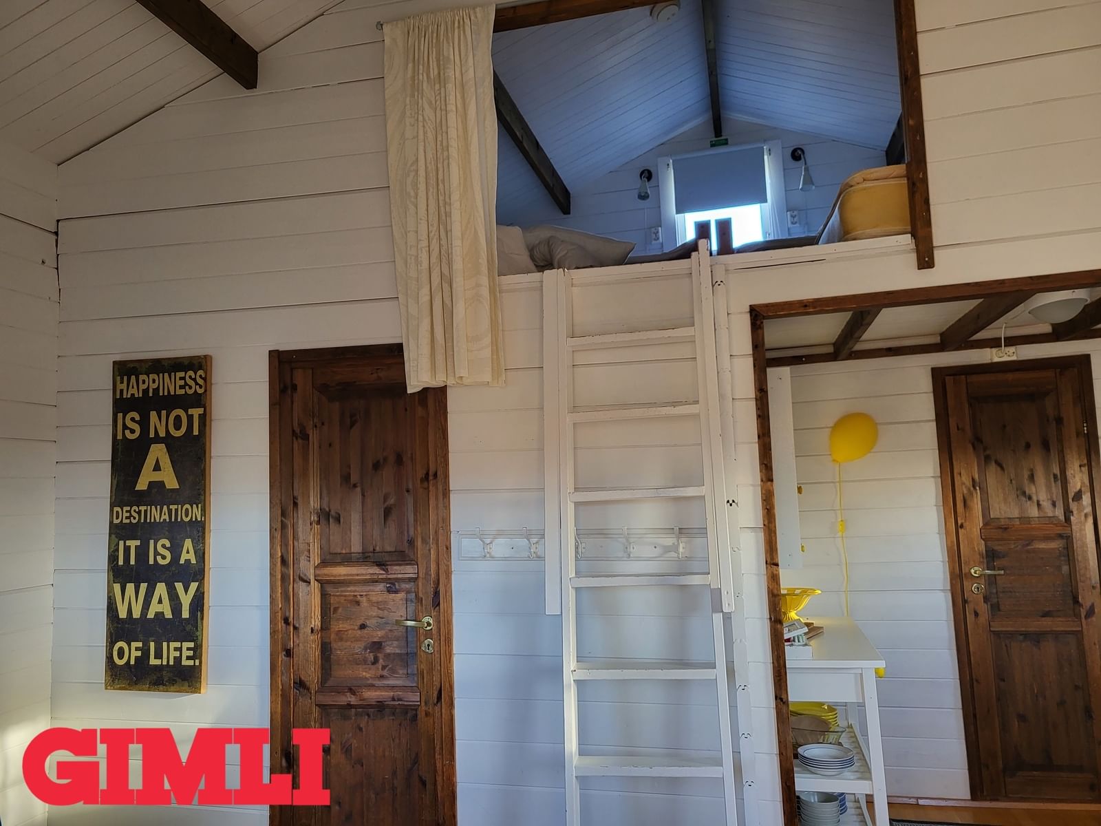 Svefnloft: skemmtilegt rými þar sem 2-4 geta gist, 2 rúm og tvær dýnur.