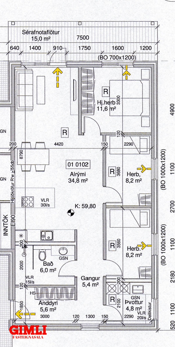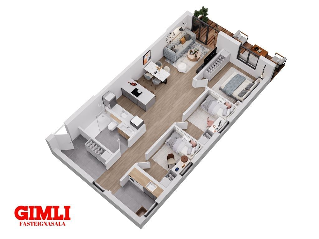 Ath myndirnar með húsgögnum eru tölvuteiknaðar. Nánari upplýsingar veitir: Elín Urður Hrafnberg Löggiltur fasteigna- og skipasali, í síma 6902602, tölvupóstur elin@gimli.is eða gimli@gimli.is