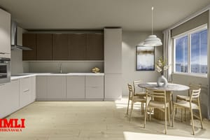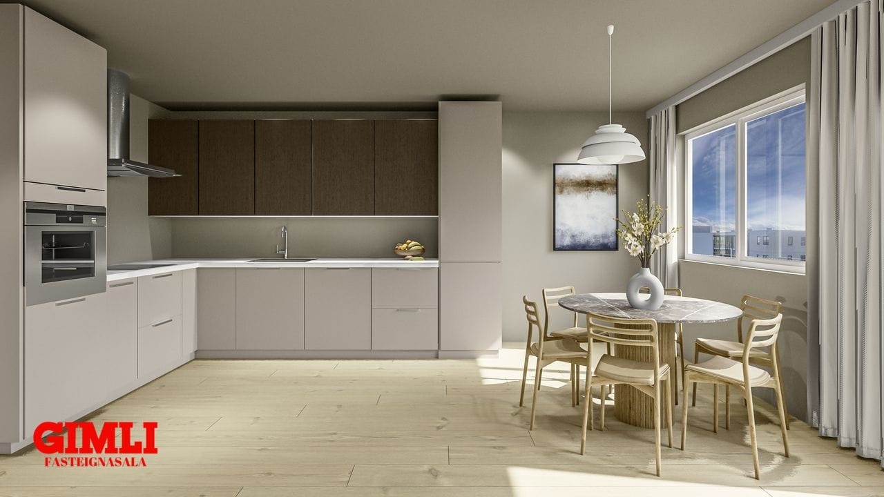 Hægt er að bæta við 3 herberginu Eldhús/stofa:Rúmgott alrými með veglegum gluggum. Eldhúsinnrétting eru tvítóna, með dökkri viðaráferð á efri skápum og ljósum neðri skápum. Heimilistækin frá Ormsson, helluborð, ofn, háfur og innbyggð uppþvottavél. Úr alrými er gengið út á 24,1fm sólpall.