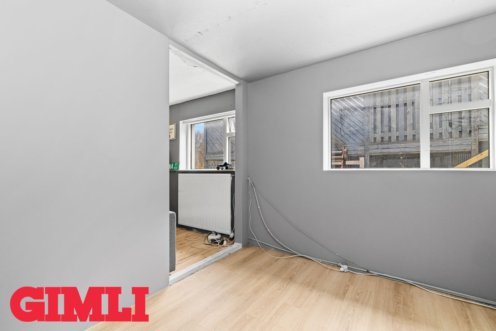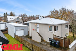Bílskúr, 41,5 m² frístandandi bílskúr og er fremri hlutinn nýttur sem geymsla og innréttuð tvö herbergi með sérinngangi í innri enda hans.