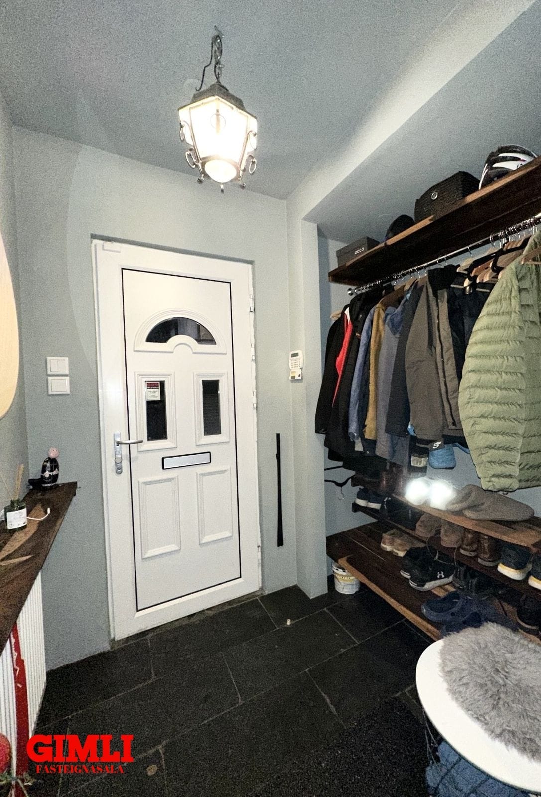 Efri hæð:Forstofa, flísalögð og hiti í gólfi.
