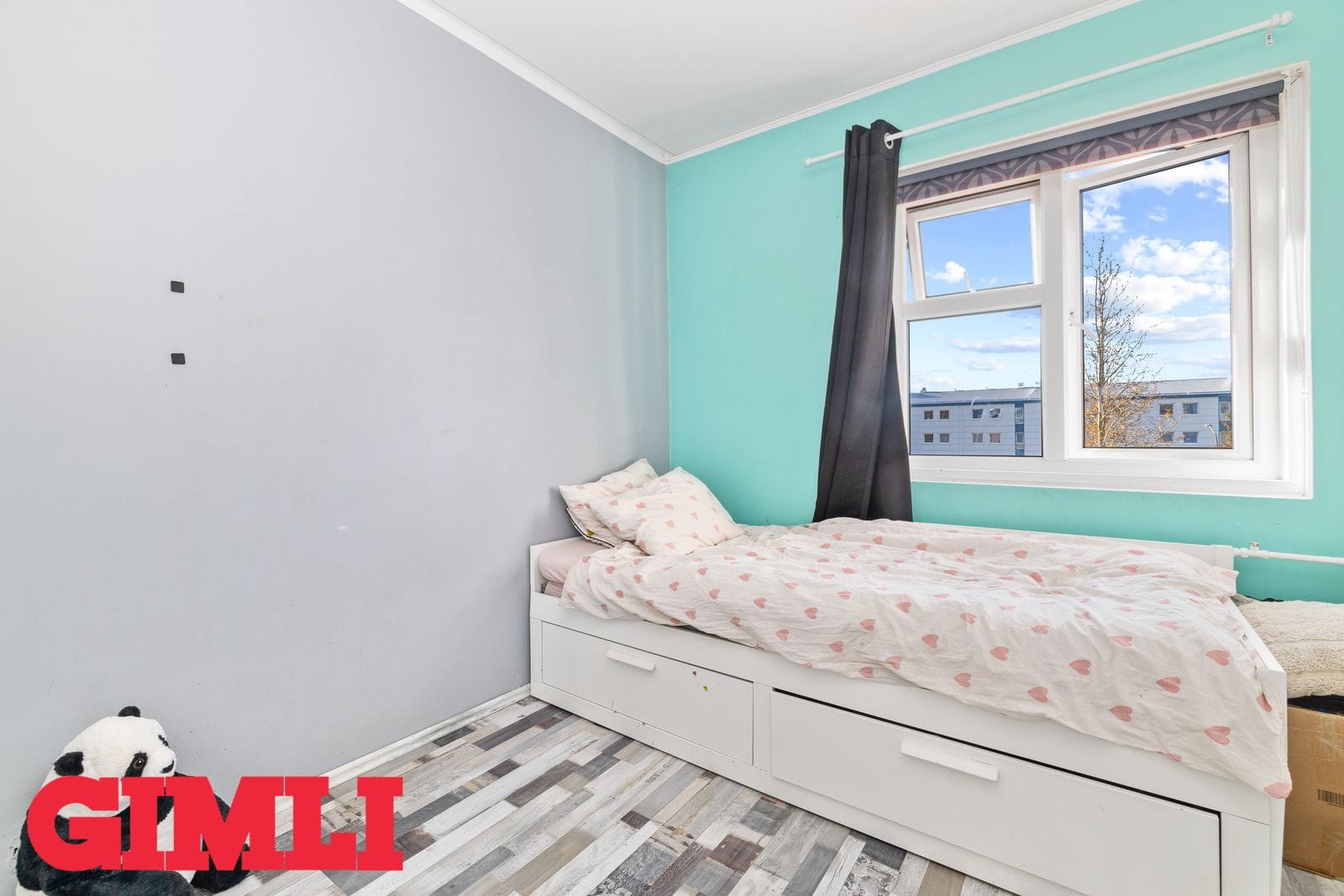 Tvö rúmgóð barnaherbergi með parketi.