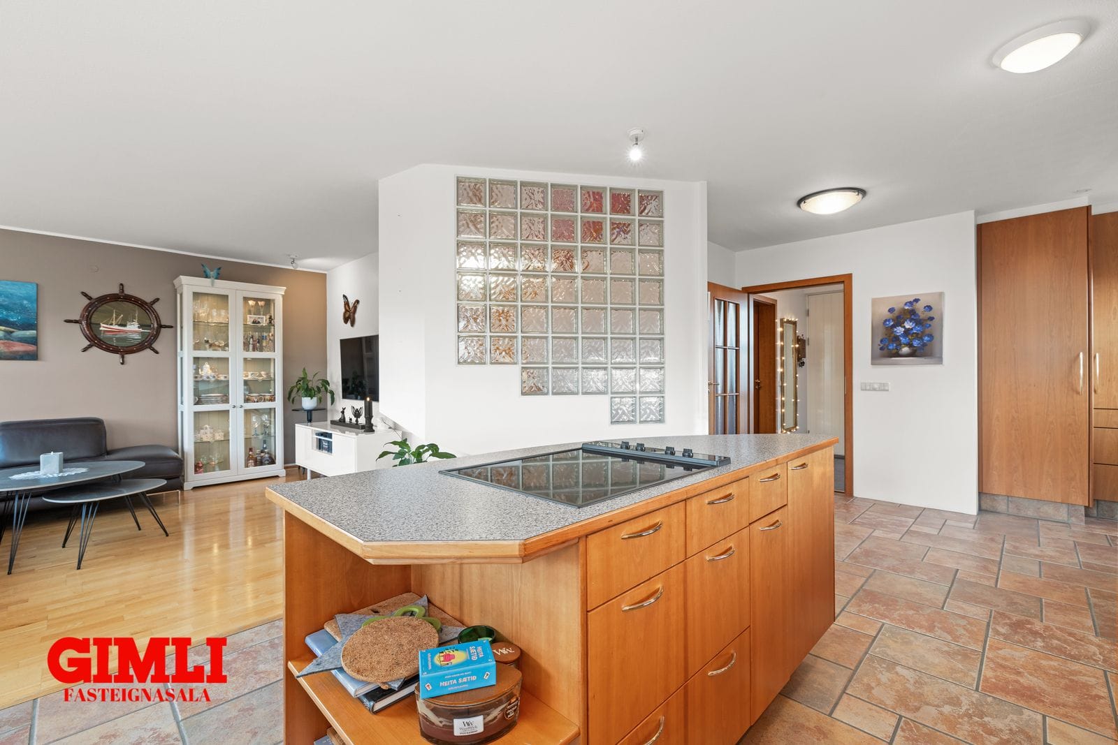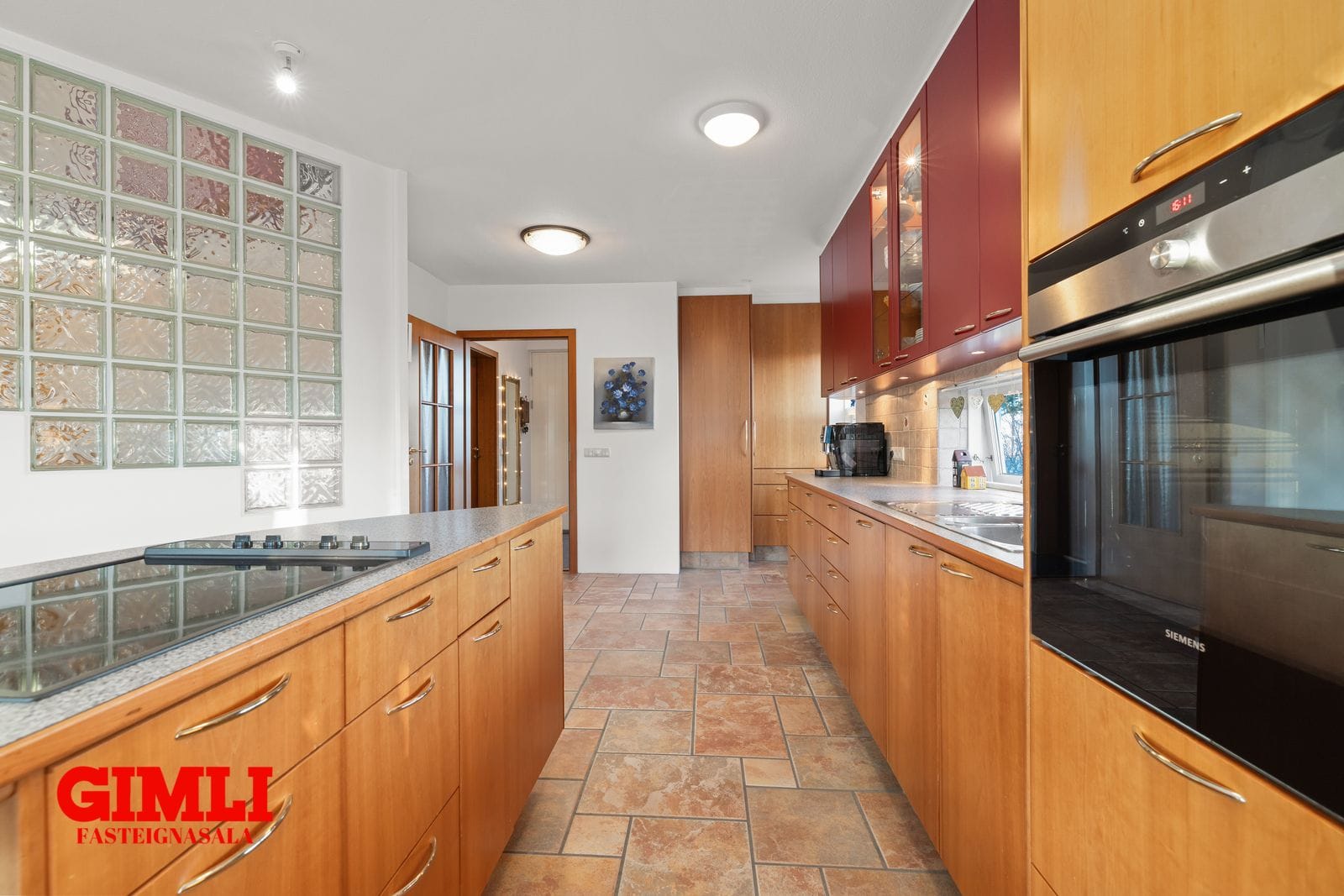 Bílskúr: innangengt úr forstofu. Tengi fyrir þvottavél og innrétting. Lakkað gólf.