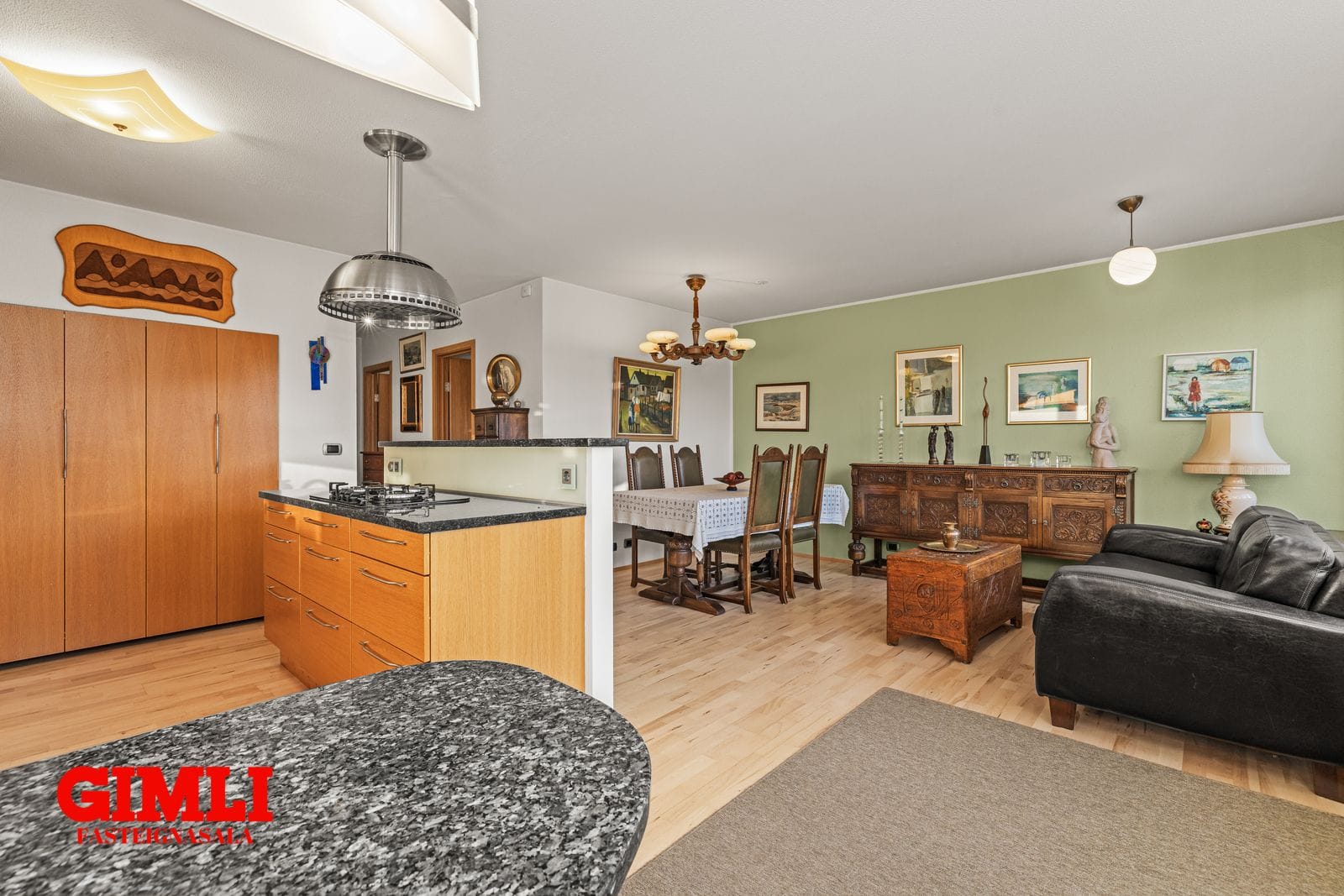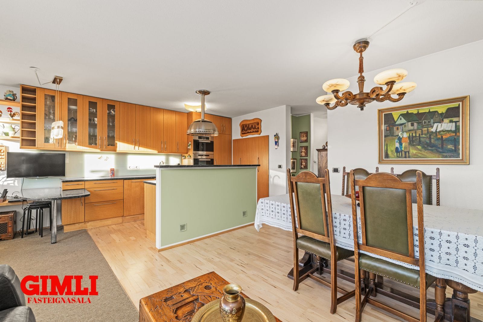 Eldhús: Góð innrétting með granítborðplötum og borðkrók. Gaseldavél. Inn af eldhúsi er þvottarými. Parket á gólfi.