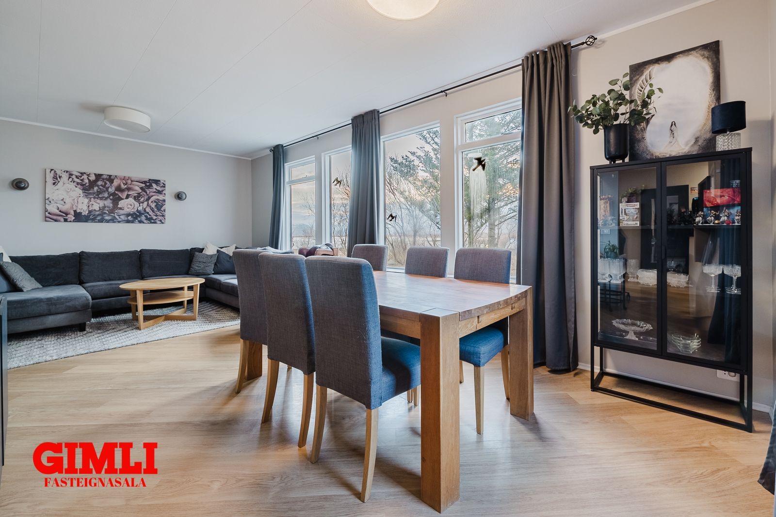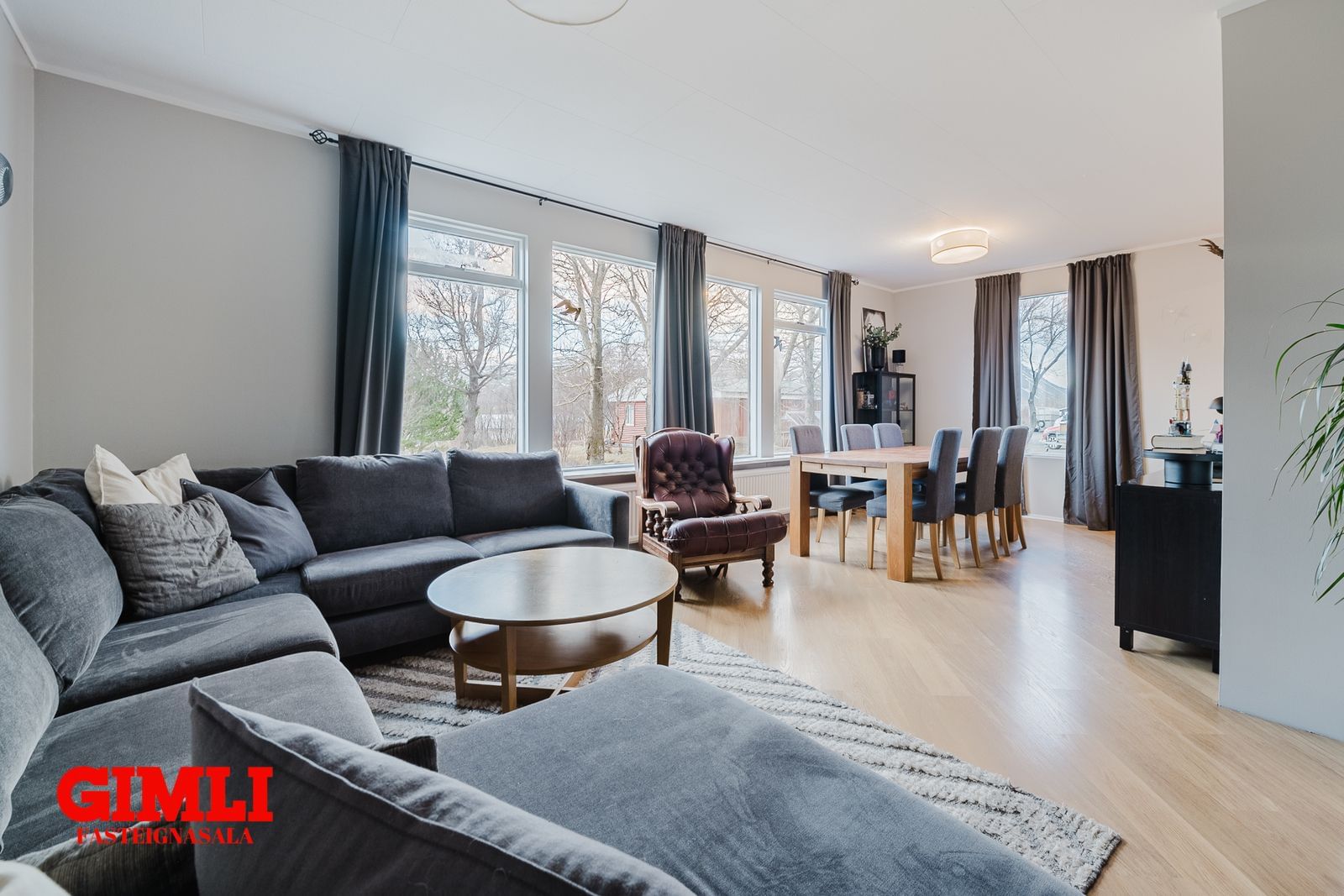Stofa / borðstofa er mjög rúmgóð með parketlögðu gólfi og gluggum á tvo vegu.