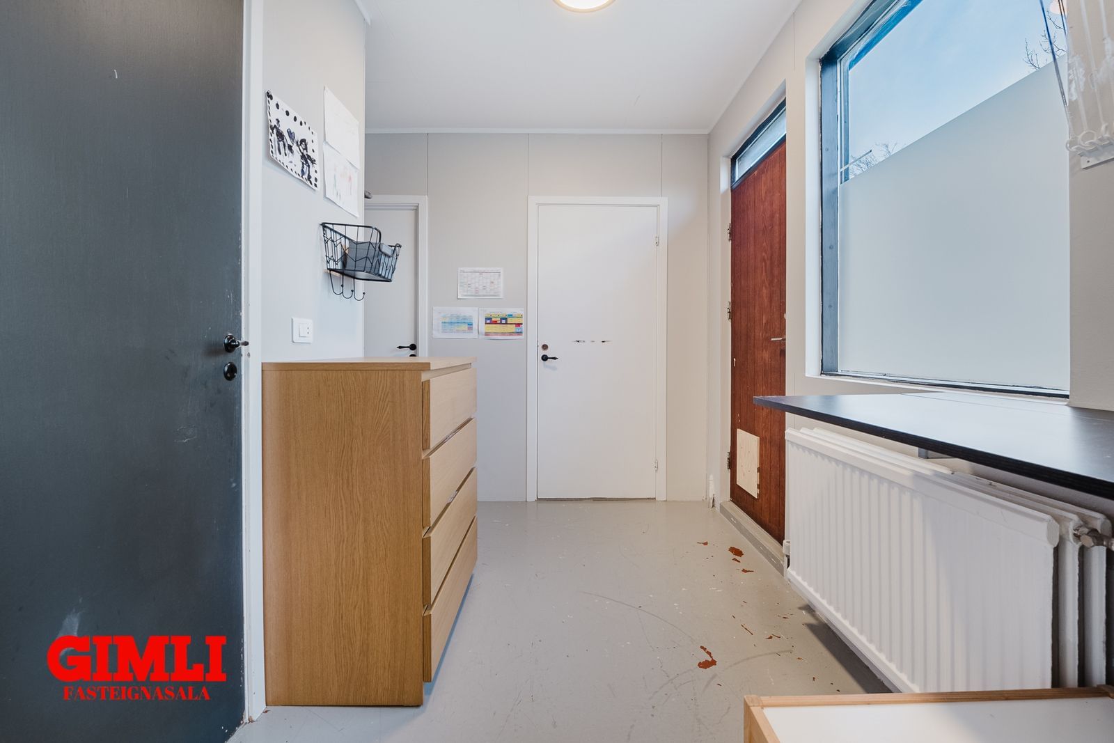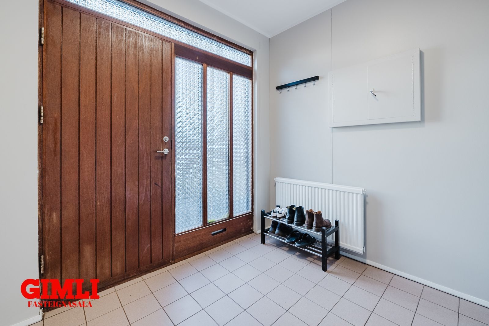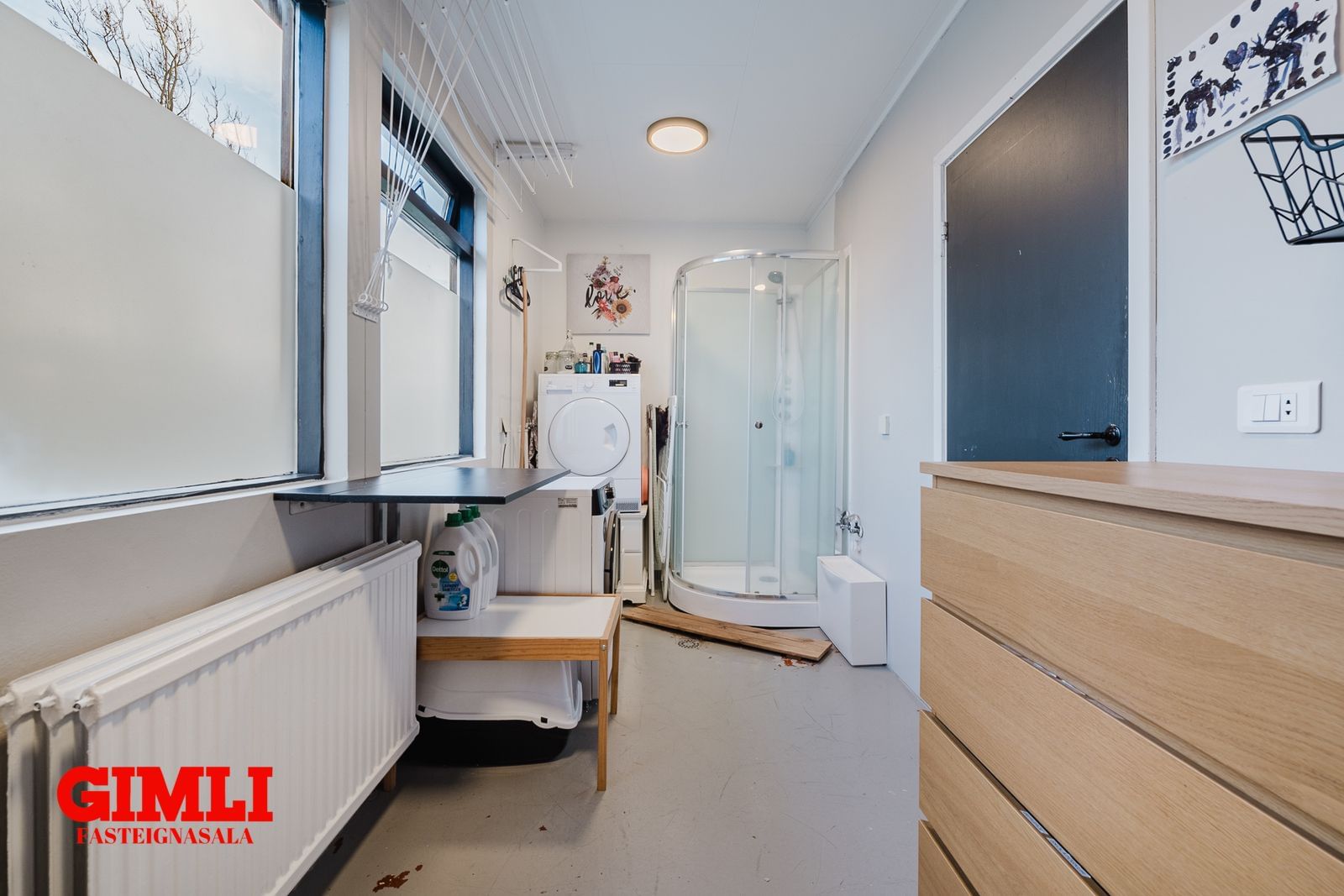 Þvottahús/bað Mjög rúmgott þvottahús er inn af eldhúsi með útgengi útí bakgarð. Tengi fyrir þvottavél & þurrkara og sturtuklefi.