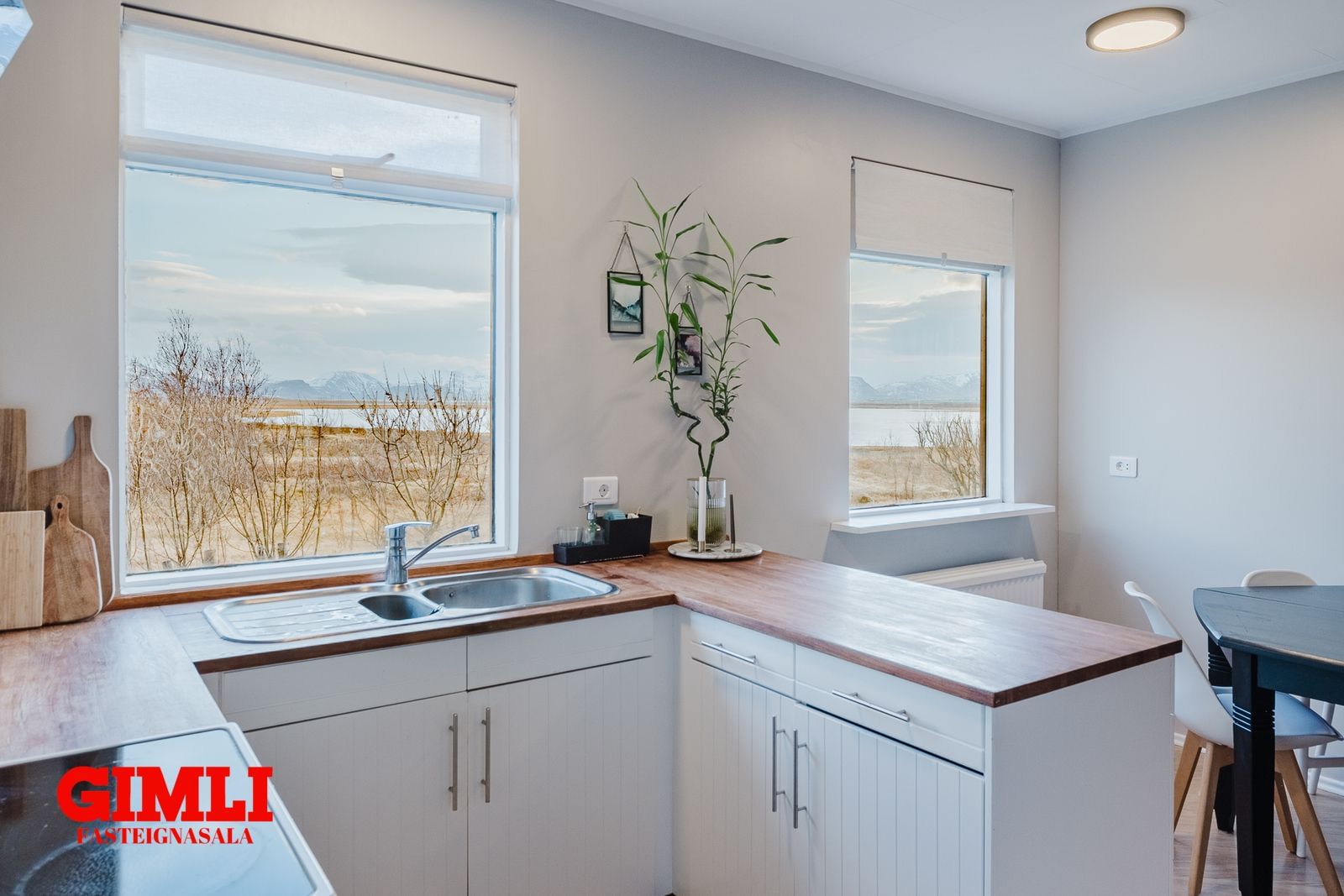 Staðsetning er mjög góð á rólegum stað innst í botngötu með útsýni inn Hvalfjörðinn.