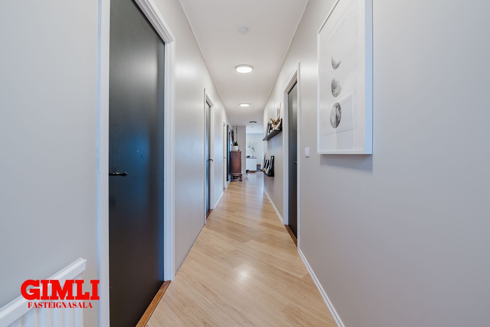 Herbergjagangur, við herbergjagangur eru þrjú svefnherbergi og baðherbergi.