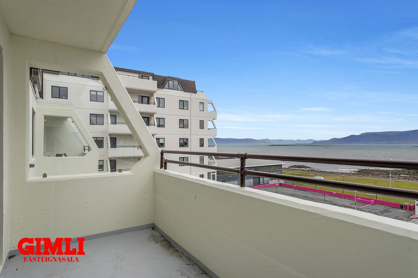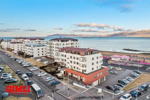 Skipulag: Forstofa/anddyri með hvítum fataskápum. Baðherbergi flísalagt, plássgóð sturta og innrétting. Rúmgott svefnherbergi með parketi og hvítmáluðum fataskápum. Stofan er rúmgóð og björt með parketi og norðaustur svölum með fallegu sjávarútsýni. Eldhúsið er með hvítri innrréttingu, vönduð tæki, innbyggð uppþvottavél og spanhelluborð. Þvottahús er sameiginlegt á hæðinni með saml. tækjum. Sérgeymsla í kjallara ásamt hjólageymslu og annarri sameign.