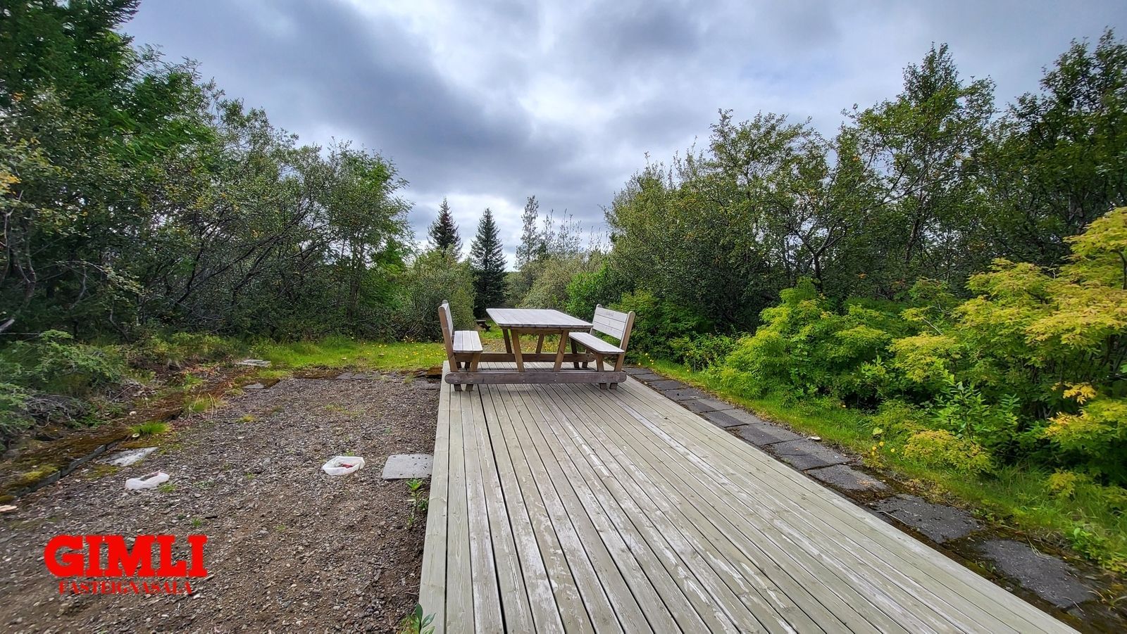 Hún er mjög gróin með fallegum birkitrjám og grasflötum að hluta þar sem auðvelt er að taka á móti stórum hópi vina með ferðavagna. Mjög víðsýnt er í 360 gr.