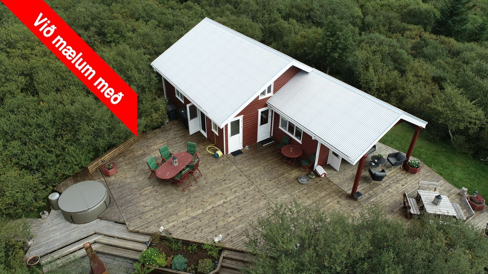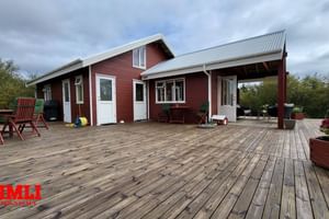 Að auki fylgir aðalhúsinu óskráð mjög gott gestahús og tvær útigeymslur.
