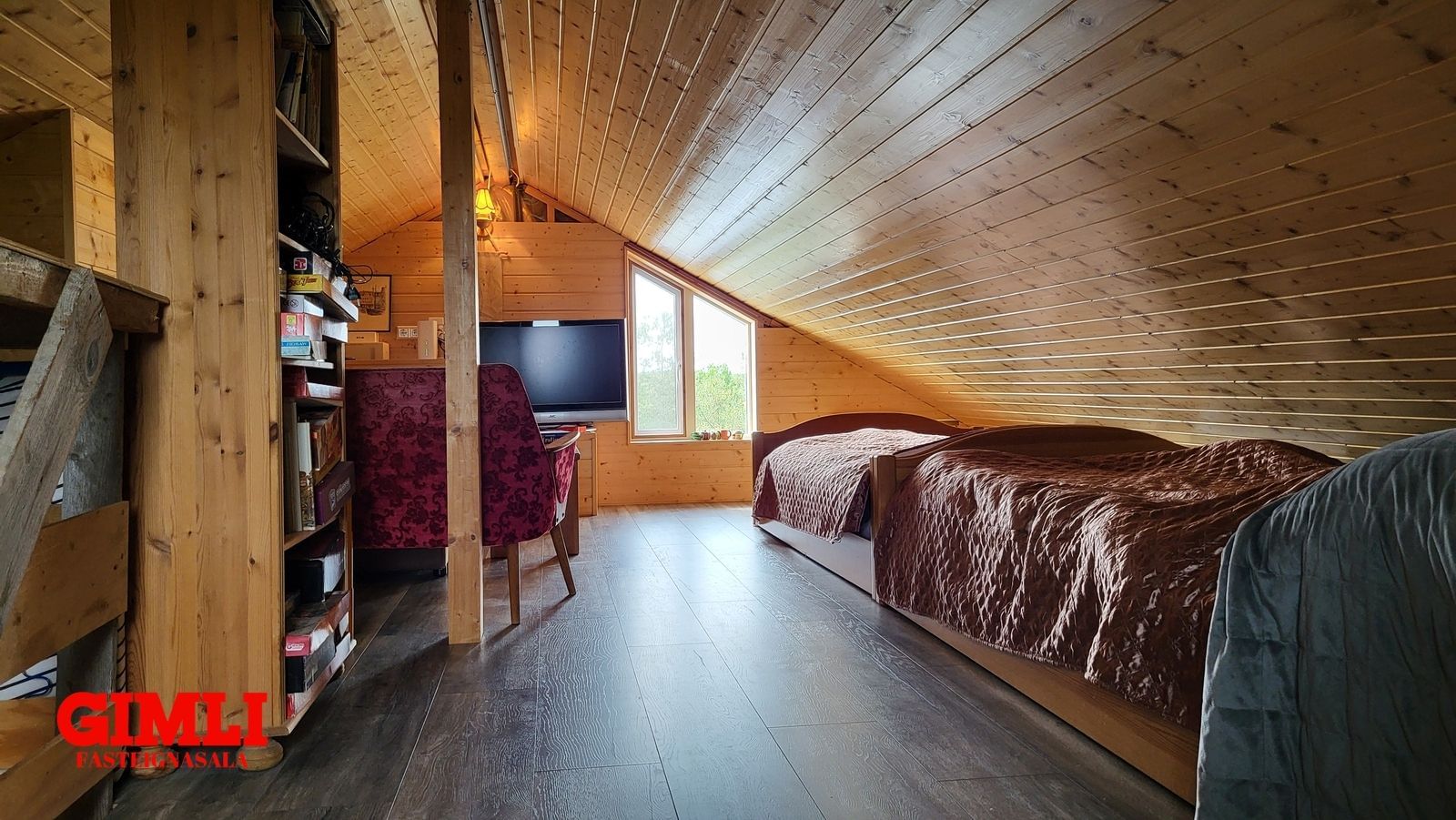 Yfir hluta hússins er plássgott svefnloft sem rúmar vel 3-4 rúm og er þar einnig sjónvarpskrókur.