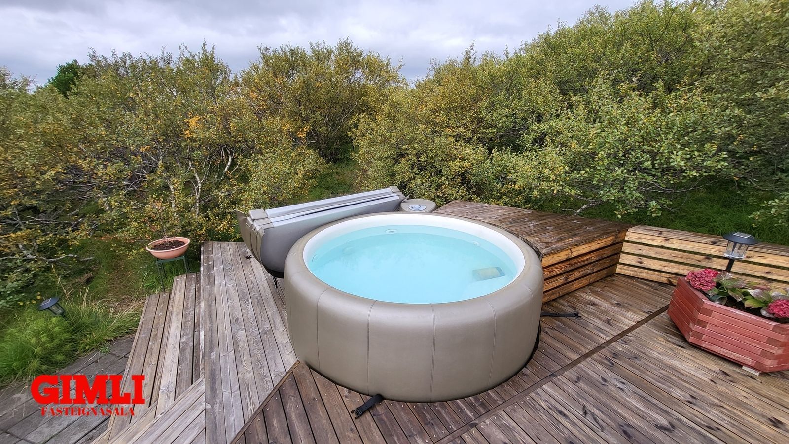 Mjög stór hitatúpa annar mjög vel heitavatnsnotkun hússins.
