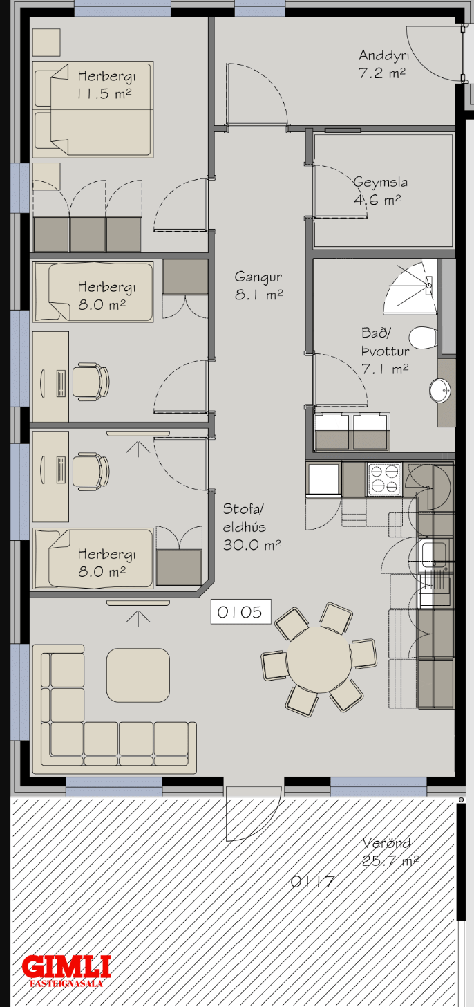 Lilja Hrafnberg Viðskiptafræðingur/Löggiltur fasteignasali, í síma 8206511, tölvupóstur lilja@gimli.is NÁNARI LÝSING:Forstofa: Gengið er af stétt inn í rúmgóða forstofu með glugga.