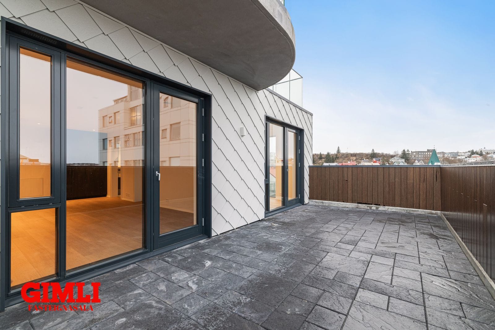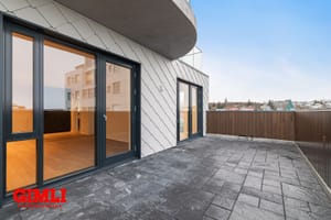 Stór þakverönd (28,1 m²)  sem gengið er útá frá stofu og svefnherbergi.