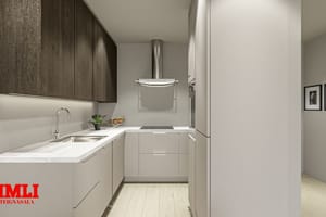 Eldhús/stofa: Rúmgott alrými, eldhúsinnrétting er tvítóna, með dökkri viðaráferð á efri skápum og ljósum neðri skápum. Heimilistækin eru frá Ormsson, helluborð, ofn, háfur og innbyggð uppþvottavél. Úr alrými er gengið út á suður svalir með flottu útsýni.