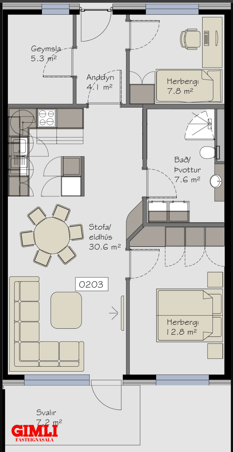 Ólafur Björn Blöndal Löggiltur fasteigna-, fyrirtækja og skipasali, í síma 6900811, tölvupóstur olafur@gimli.isNÁNARI LÝSING:Forstofa: Gengið er af svalagangi inn í rúmgóða forstofu.