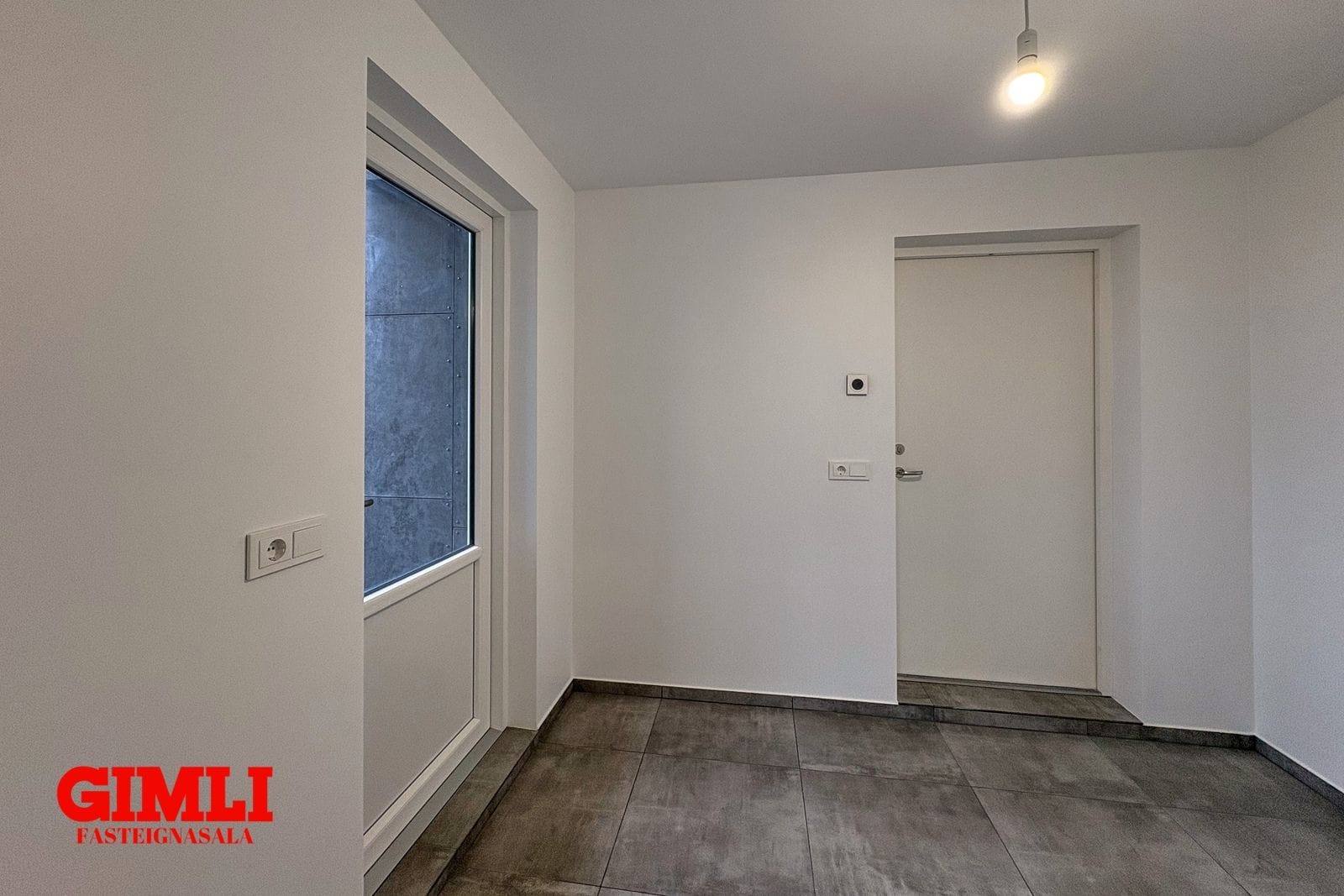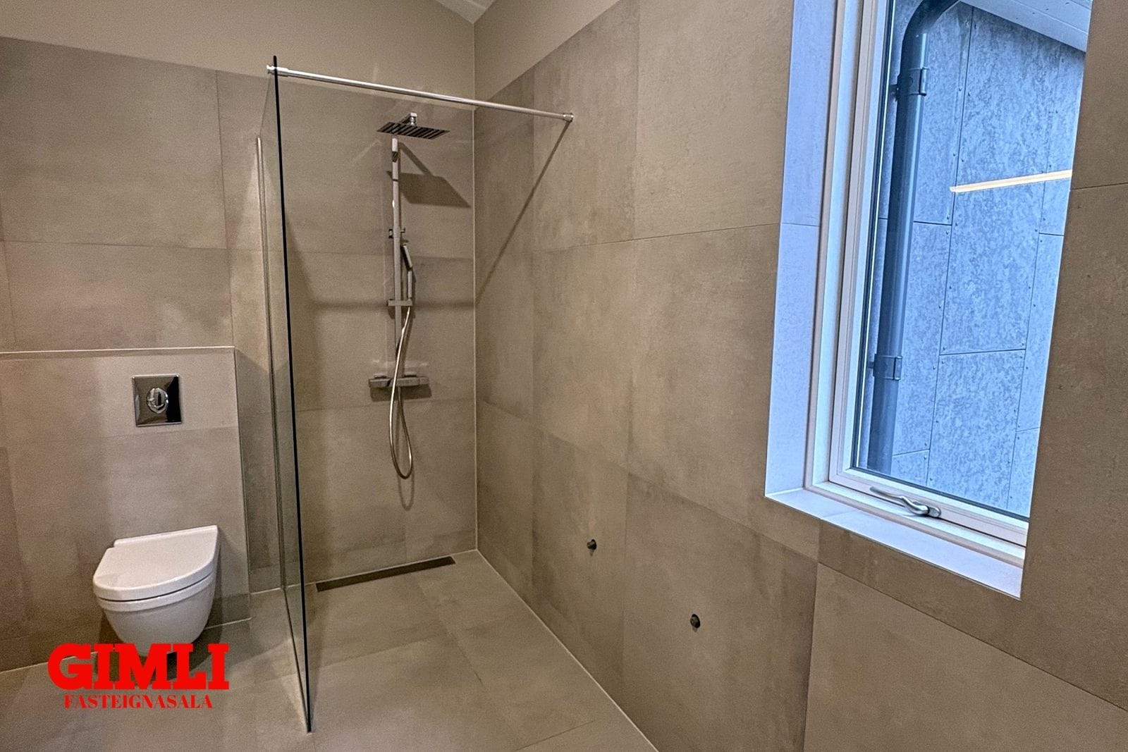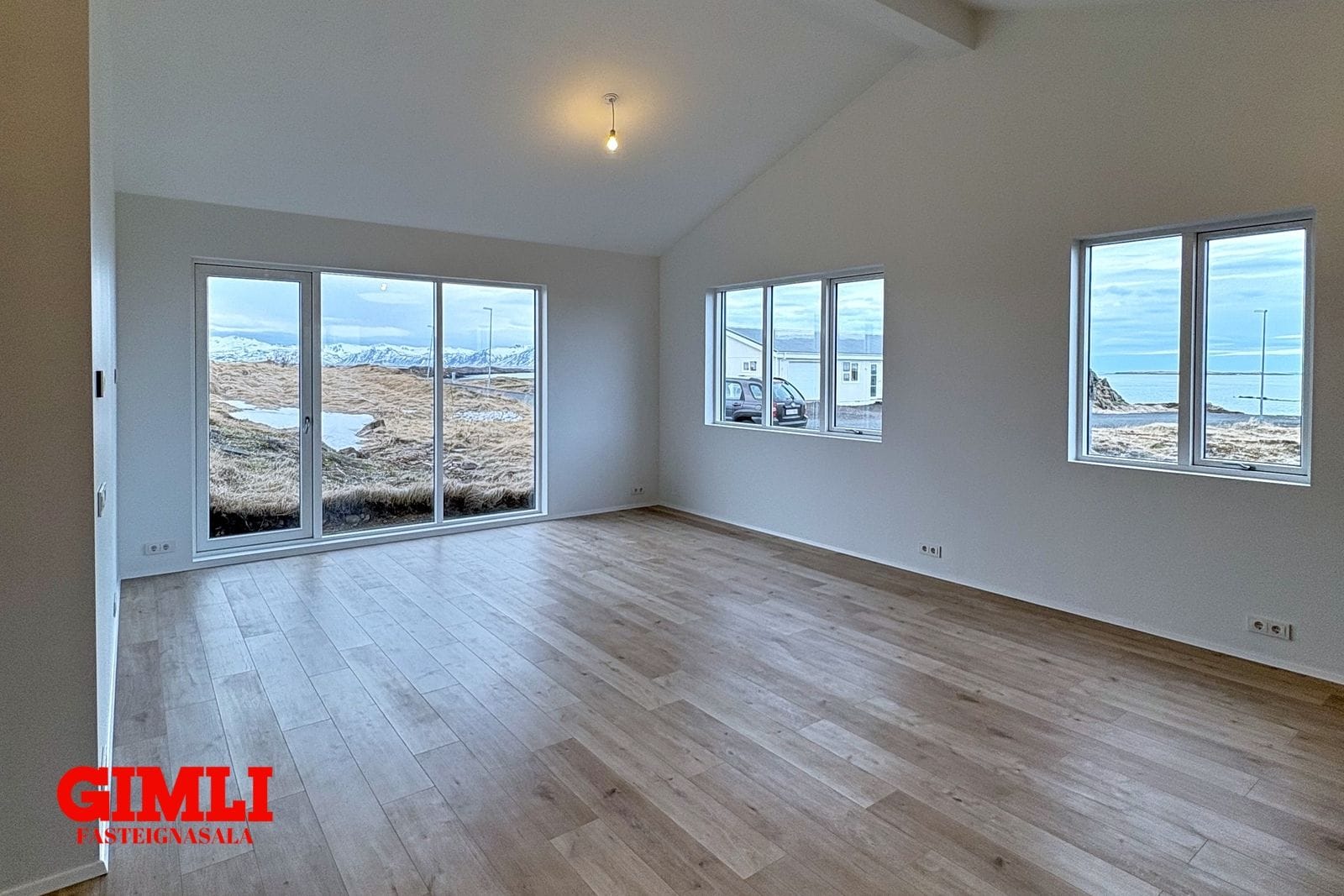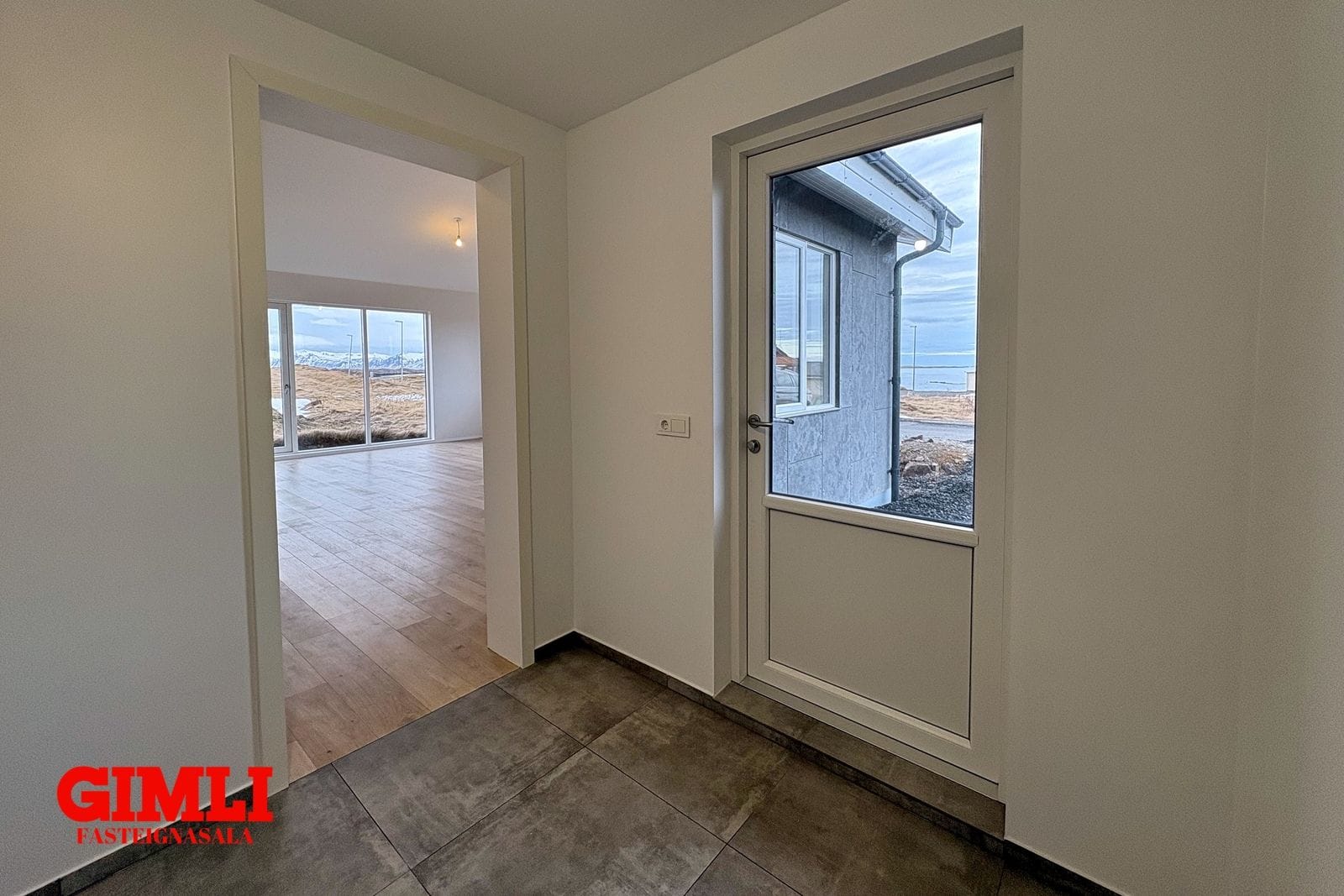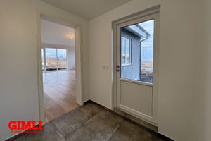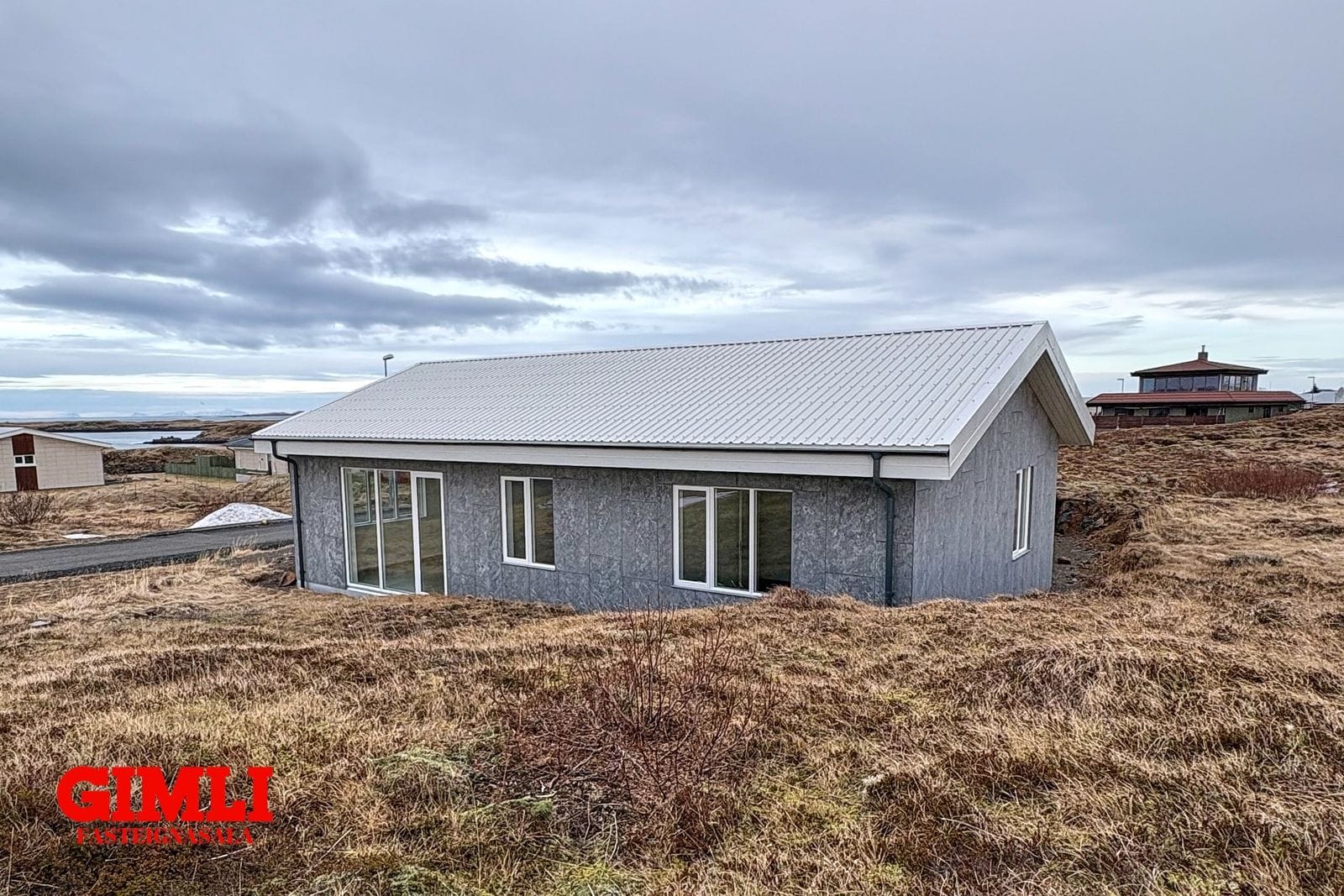 Eignin er fullfrágengin á byggingarstigi 4, matsstigi 7 og getur afhenst við kaupsamning.Nánri upplýsingar veitir Guðmunda Björnsdóttir Stackhouse í síma 7927576, eða gudmunda@gimli.isNÁNARI LÝSING:Húsið er reist með SIP einingum, sem eru sterkbyggðar og vel einangraðar samlokueiningar, samsettar úr OSB plötum og pólýstýren. Innra byrði veggja er klætt tveggja tommu rafmagnsgrind, tveggja tommu ull, 12 mm krossviði og 12 mm gifsi. Loft eru klædd með einföldu gifslagi, en veggir með tvöföldu. Að utan er húsið klætt með gráum fiber cement panel frá Struktúr.