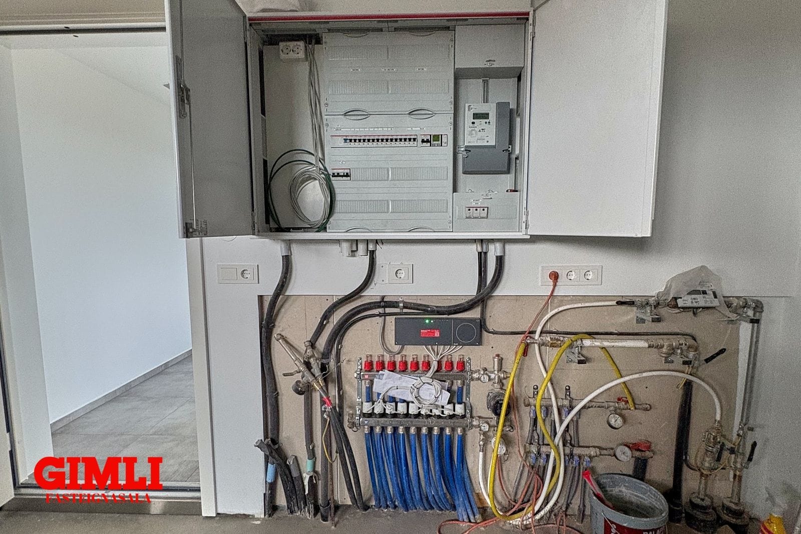 Rafkerfi og hitastýring: Gólfhitastýring (sér stýring í hverju rými) frá Danfoss. Innstungur og rofar frá Vilma.