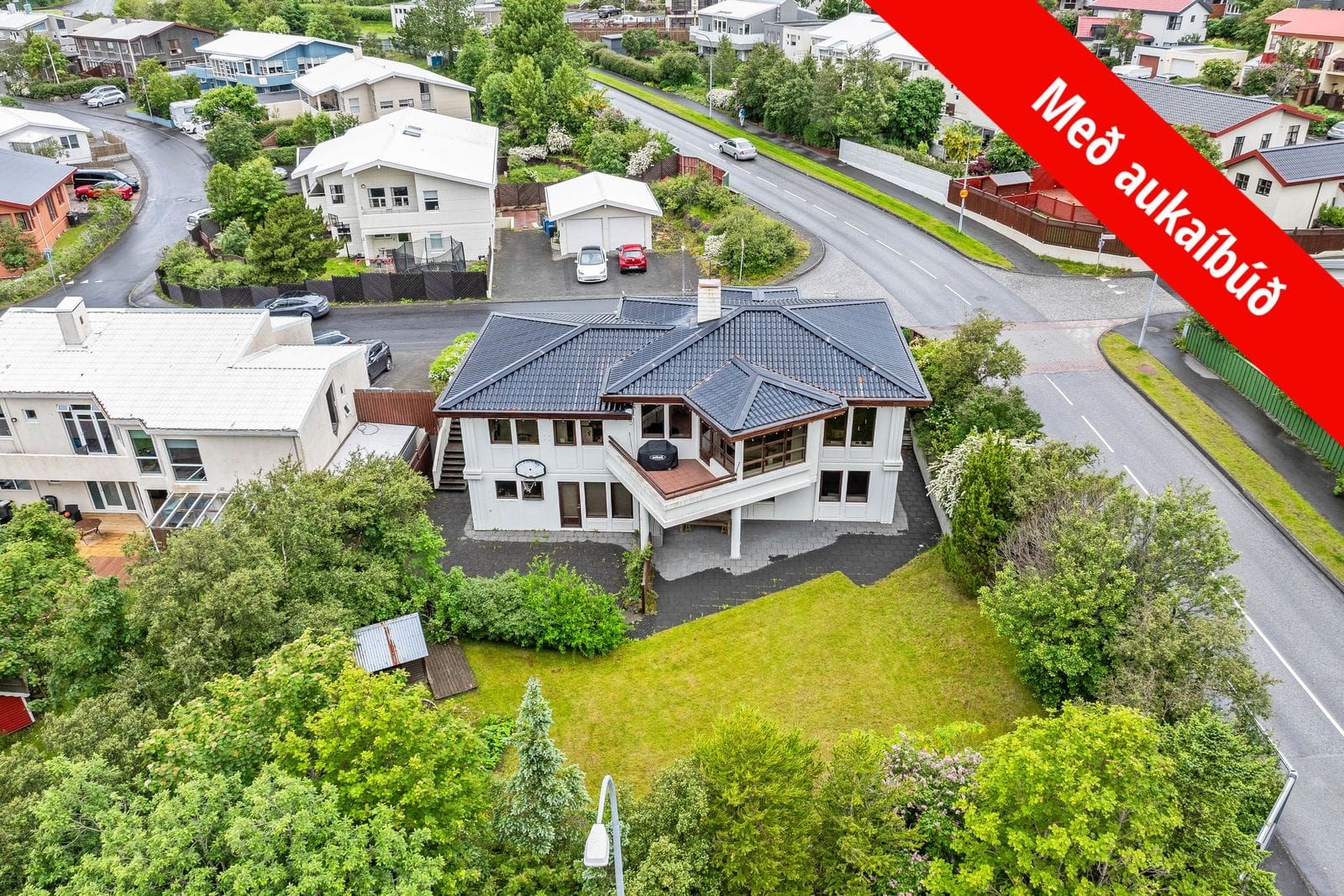 Lóðin: Er stór, skjólgóð og rótgróin en fyrir liggja hugmyndir að skipulagi m.a. með heitum potti, gróðurhúsi, útieldhúsi með barborði og hálfyfirbyggðu plássi fyrir færanlega útiborðstofu.