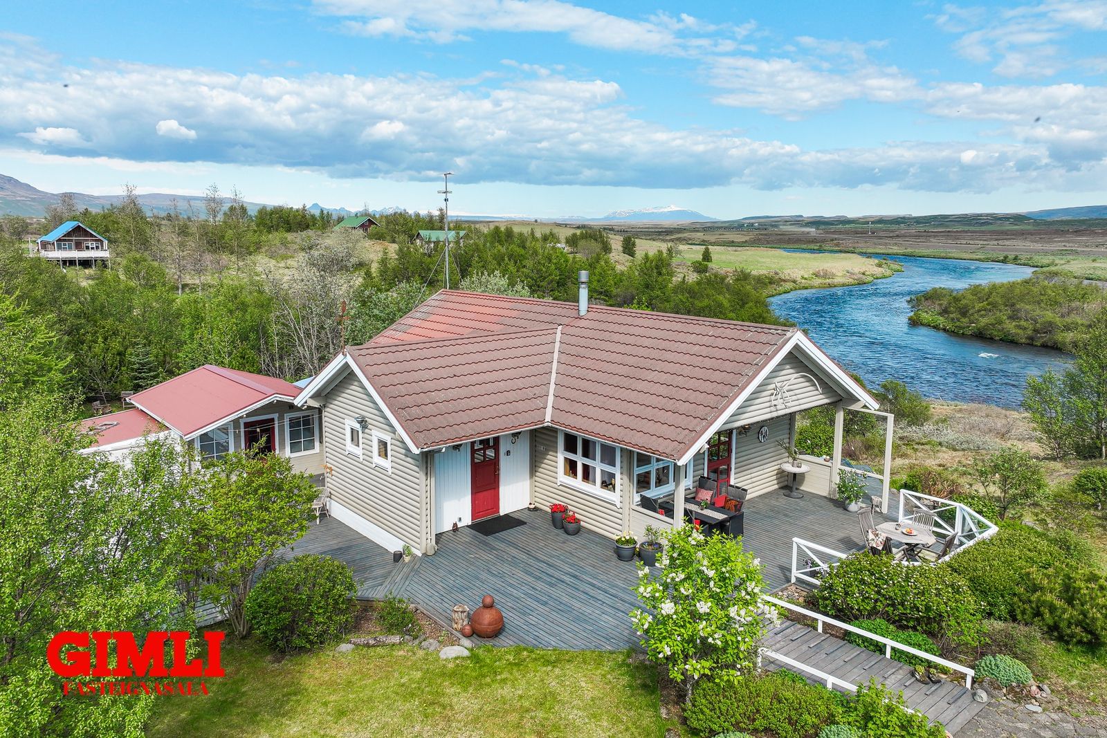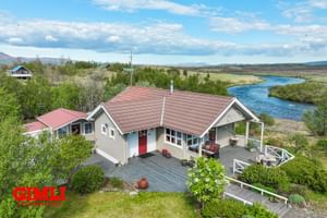 Gimli fasteignasala og Guðmunda Björnsdóttir Stackhouse kynna: Koðrabúðir 14, 806 Selfoss. Frábærlega staðsett 94,4 fm vel skipulagt heilsárshús á fallegum útsýnisstað í grónu landi við Tungufljót. Vandað hefur verið til verka í alla staði við byggingu hússins og í efnisvali. Húsið stendur á 3965 fm eignarlóð. Stór verönd/pallur er í kringum húsið með heitum potti. Gott aðgengi af bílastæði. Bókið skoðun hjá Guðmunda Björnsdóttir Stackhouse í síma 7927576, eða gudmunda@gimli.isMyndband af eigninni má sjá hérEignin samanstendur af þremur svefnherbergjum, eldhúsi, stofu/borðstofu með útgengi á verönd, baðherbergi með sturtu, verkstæði/vinnustofu, tvær geymslur, ásamt mjög góðu svefnlofti, tengi fyrir þvottavél á gangi. Veröndin er einstaklega rúmgóð með glæsilegu útsýni yfir tungufljót. Heitur pottur með loki er á verönd.