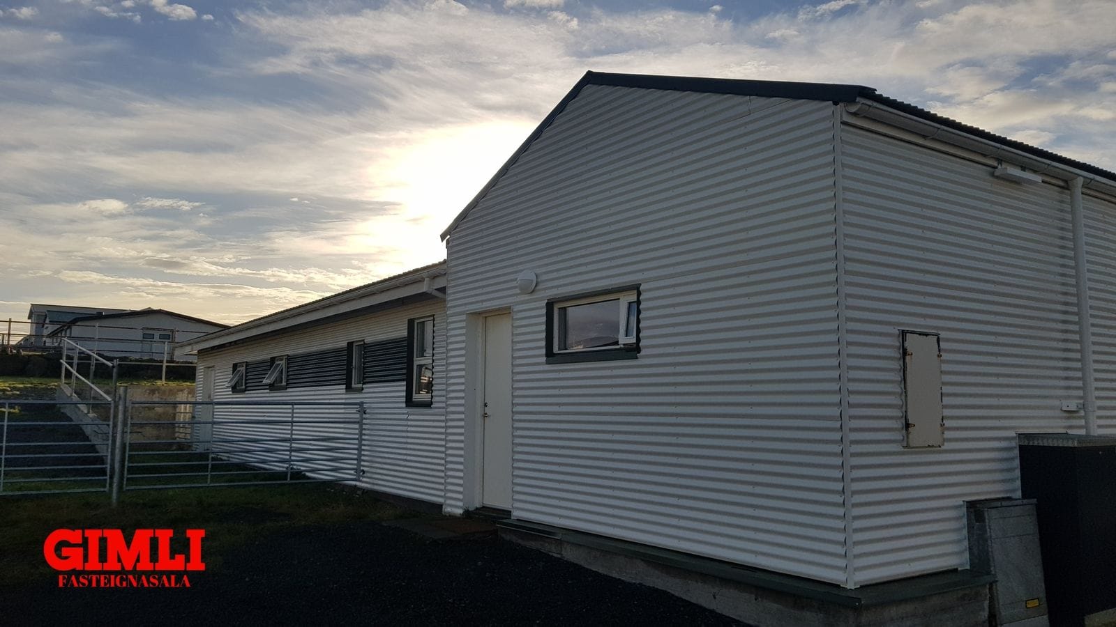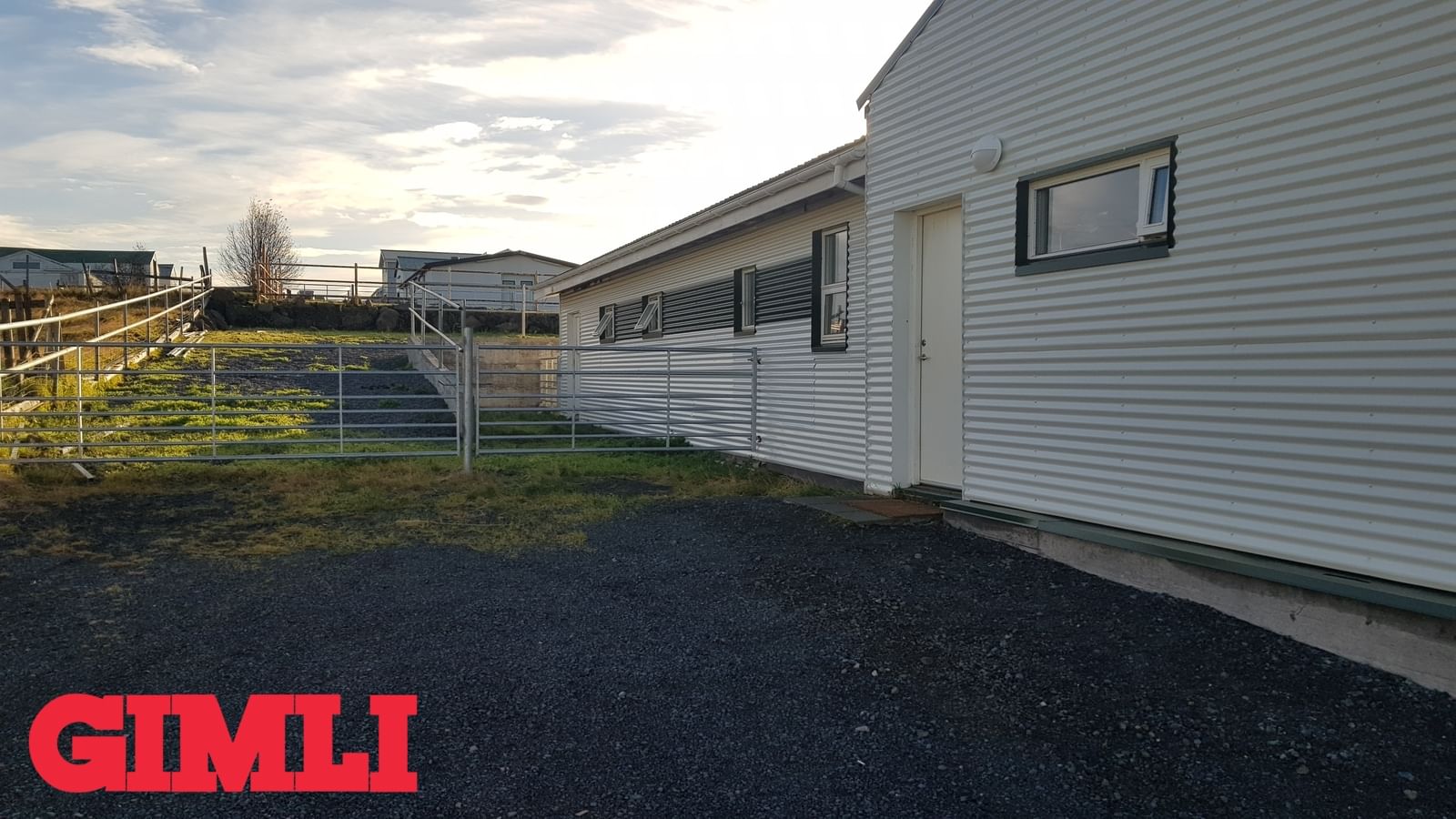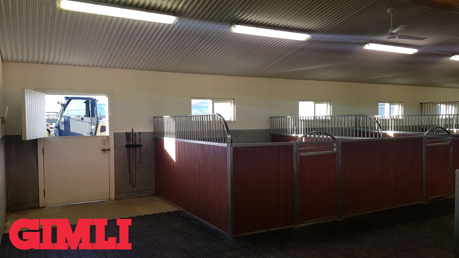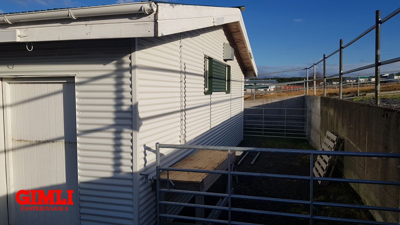 Um er að ræða nýlegt alls 185 fm hús sem er það glæsilegasta á svæðinu og þó víðar væri leitað. Allt mjög rúmgott bæði fyrir hesta og menn. Óvenju glæsileg og rúmgóð inniaðstaða. Húsið rúmar 12 hross og eru allar stíur rúmlega löglegar, þ.e. 5 stk. 9 fm tveggja hesta stíur og ein tveggja hesta graðhestastía. Milliveggir stía með harðplasti og ryðfrítt járnavirki. Hiti er í öllum stíum og eru þær safnstíur með lúgum út í taðkassa. Tvær breiðar tvískiptar hurðir út í stórt sérgerði og eru öll útihlið og rekkverk nýtt galvaniserað. Hlaðan er mjög stór og góð með tvöfaldri hurð og hárri lofthæð. Mjög rúmur gangur við inngang í húsið. Stór og góð hnakkageymsla og snyrting þar við hliðina. Stór og smekkleg kaffistofa með hvítri innréttingu og öllum tækjum,flísalagt gólf og góður borðkrókur og gluggi yfir í hesthúsið.