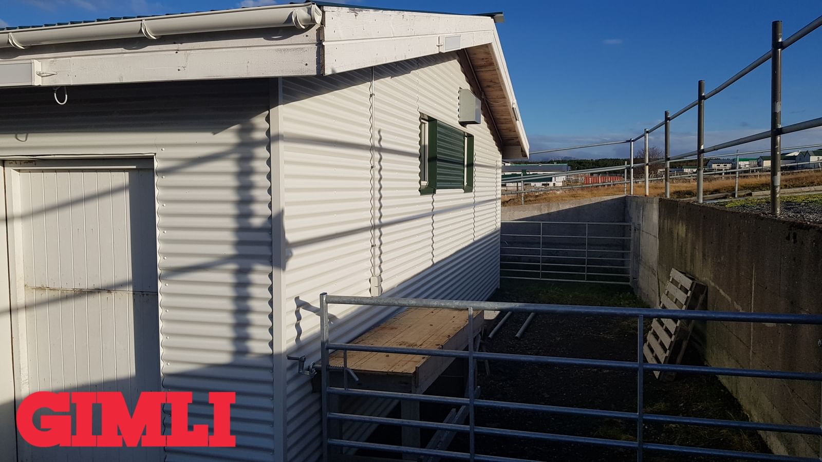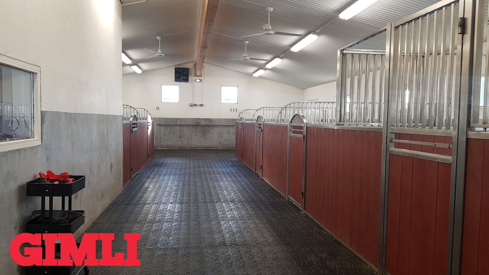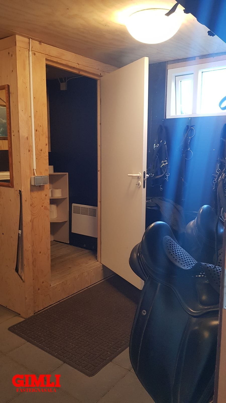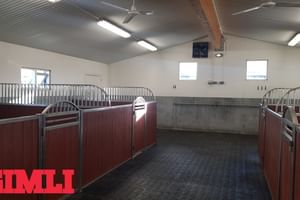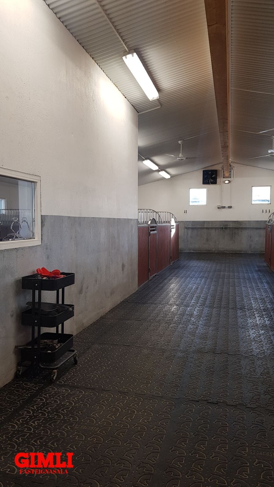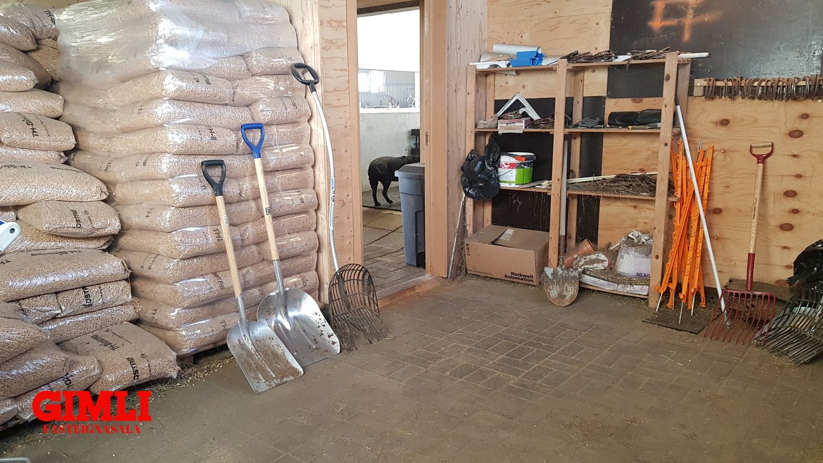 Um er að ræða nýlegt alls 185 fm hús sem er það glæsilegasta á svæðinu og þó víðar væri leitað. Allt mjög rúmgott bæði fyrir hesta og menn. Óvenju glæsileg og rúmgóð inniaðstaða. Húsið rúmar 12 hross og eru allar stíur rúmlega löglegar, þ.e. 5 stk. 9 fm tveggja hesta stíur og ein tveggja hesta graðhestastía. Milliveggir stía með harðplasti og ryðfrítt járnavirki. Hiti er í öllum stíum og eru þær safnstíur með lúgum út í taðkassa. Tvær breiðar tvískiptar hurðir út í stórt sérgerði og eru öll útihlið og rekkverk nýtt galvaniserað. Hlaðan er mjög stór og góð með tvöfaldri hurð og hárri lofthæð. Mjög rúmur gangur við inngang í húsið. Stór og góð hnakkageymsla og snyrting þar við hliðina. Stór og smekkleg kaffistofa með hvítri innréttingu og öllum tækjum,flísalagt gólf og góður borðkrókur og gluggi yfir í hesthúsið.