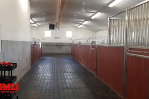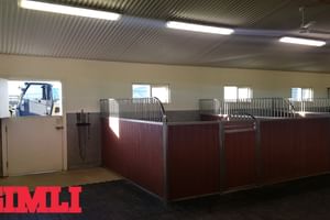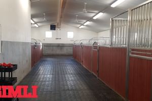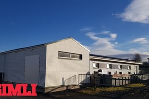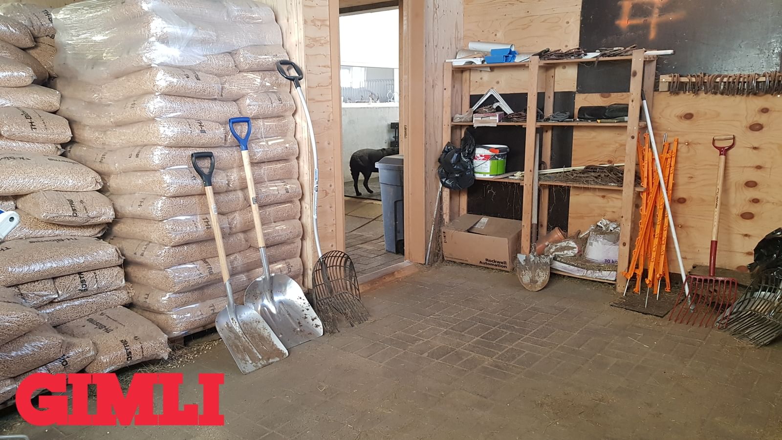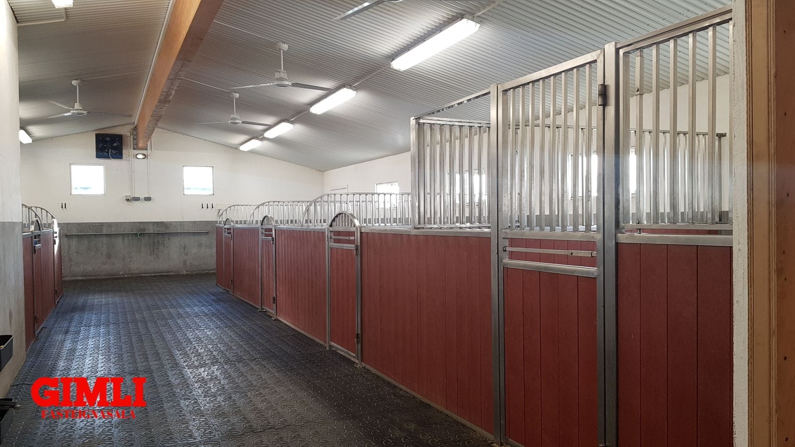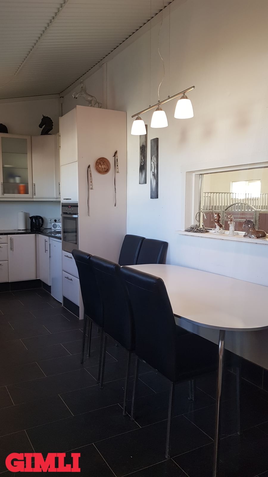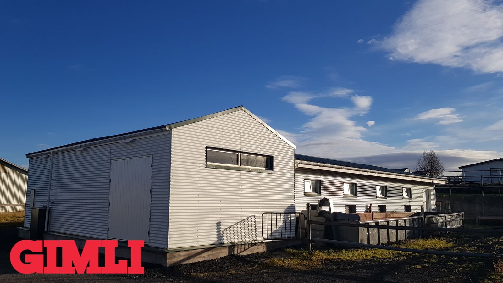 Um er að ræða nýlegt alls 185 fm hús sem er það glæsilegasta á svæðinu og þó víðar væri leitað. Allt mjög rúmgott bæði fyrir hesta og menn. Óvenju glæsileg og rúmgóð inniaðstaða. Húsið rúmar 12 hross og eru allar stíur rúmlega löglegar, þ.e. 5 stk. 9 fm tveggja hesta stíur og ein tveggja hesta graðhestastía. Milliveggir stía með harðplasti og ryðfrítt járnavirki. Hiti er í öllum stíum og eru þær safnstíur með lúgum út í taðkassa. Tvær breiðar tvískiptar hurðir út í stórt sérgerði og eru öll útihlið og rekkverk nýtt galvaniserað. Hlaðan er mjög stór og góð með tvöfaldri hurð og hárri lofthæð. Mjög rúmur gangur við inngang í húsið. Stór og góð hnakkageymsla og snyrting þar við hliðina. Stór og smekkleg kaffistofa með hvítri innréttingu og öllum tækjum,flísalagt gólf og góður borðkrókur og gluggi yfir í hesthúsið.