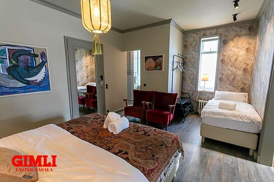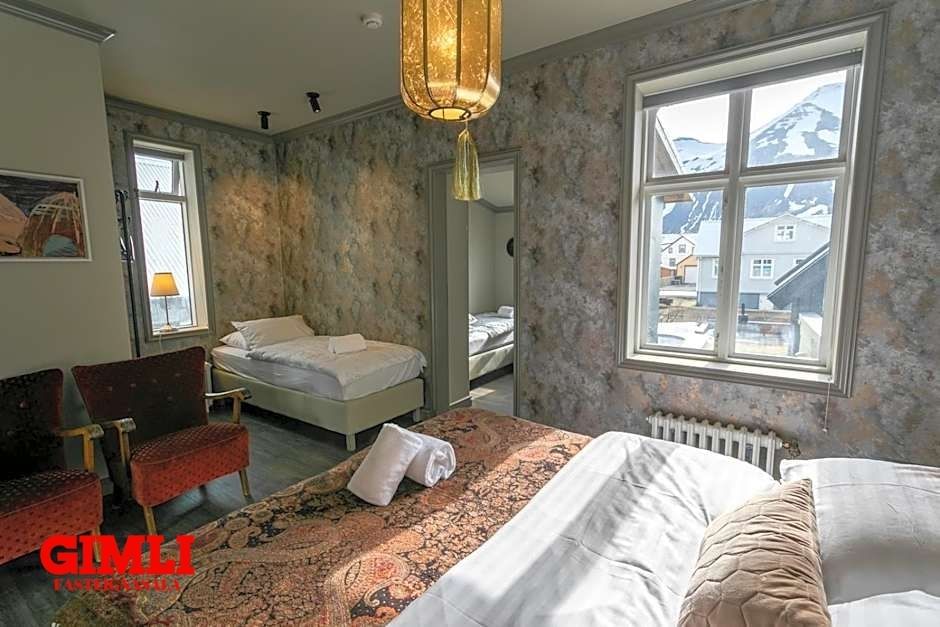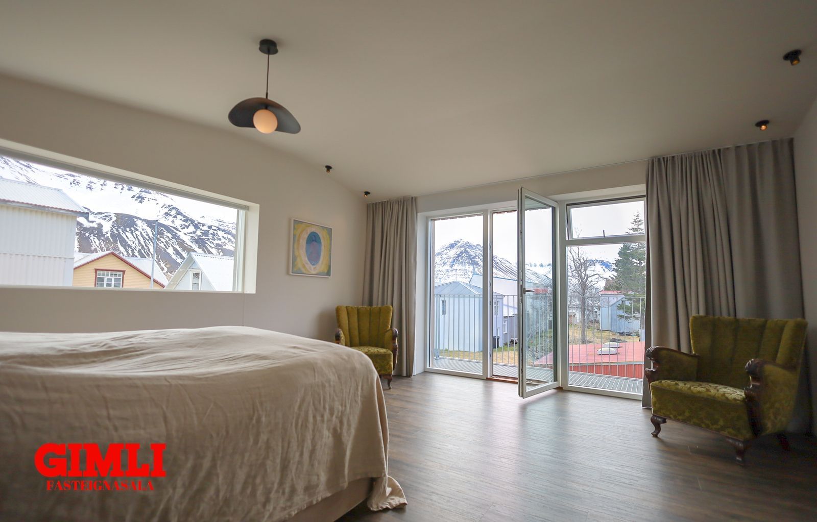 NÁNARI LÝSING:Í hótelinu eru 17 herbergi, fyrir samtals 38 manns. Einnig eru 2 starfsmannaíbúðir fyrir alls 5 starfsmenn og 70 fm rými sem hægt er að nýta sem geymslu/skrifstofu. Einstök lúxusíbúð hefur verið innréttuð í hluta hótelhúsnæðisins, stórt alrými með eldhúsi, setu- og borðstofu. Tvö svefnherbergi, bæði með baðherbergi m.m. Margir nýtingarmöguleikar.