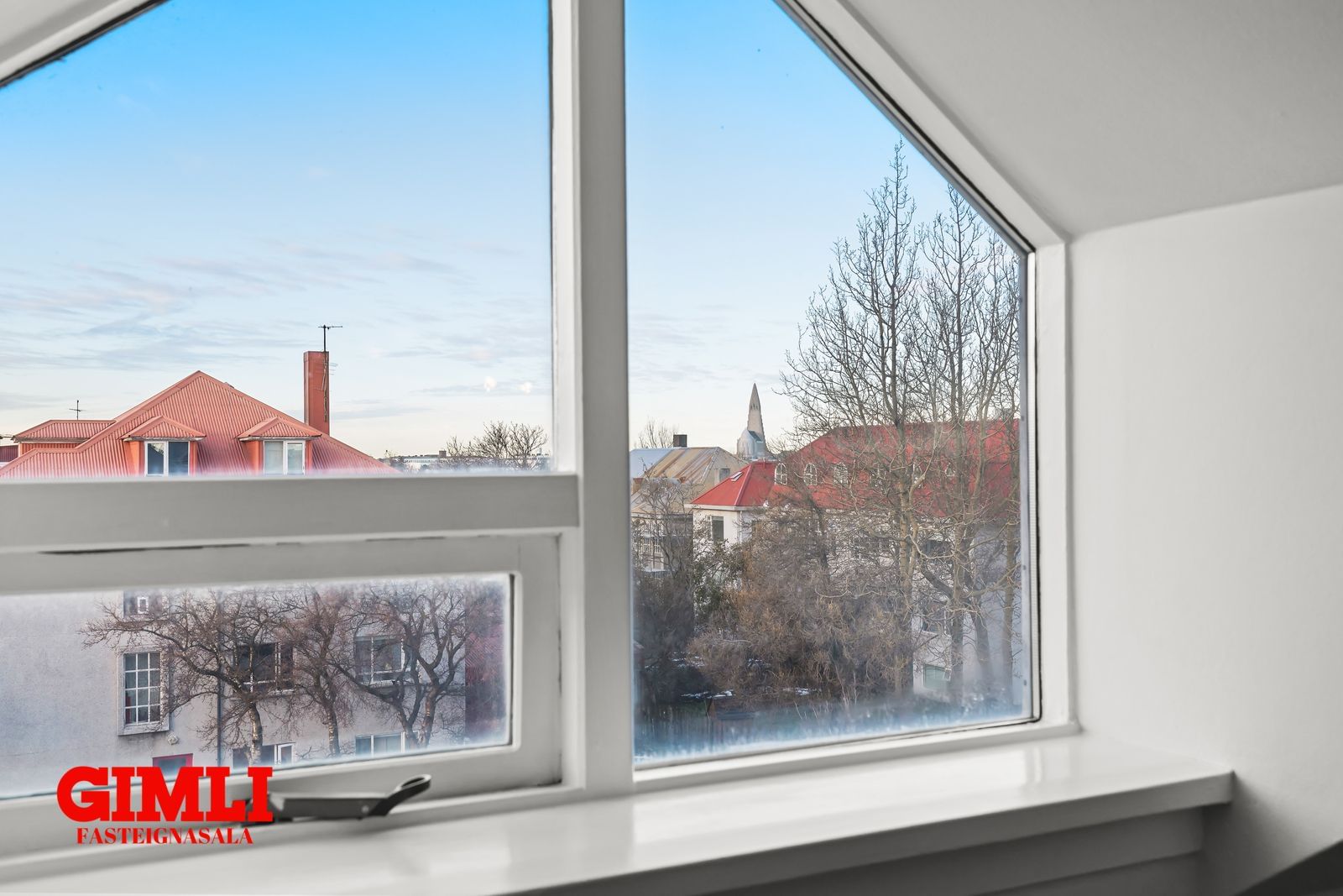 Stofurnar eru tvær, bjartar og rúmgóðar með fallegu útsýni að Hallgrímskirkju, parket á gólfi.