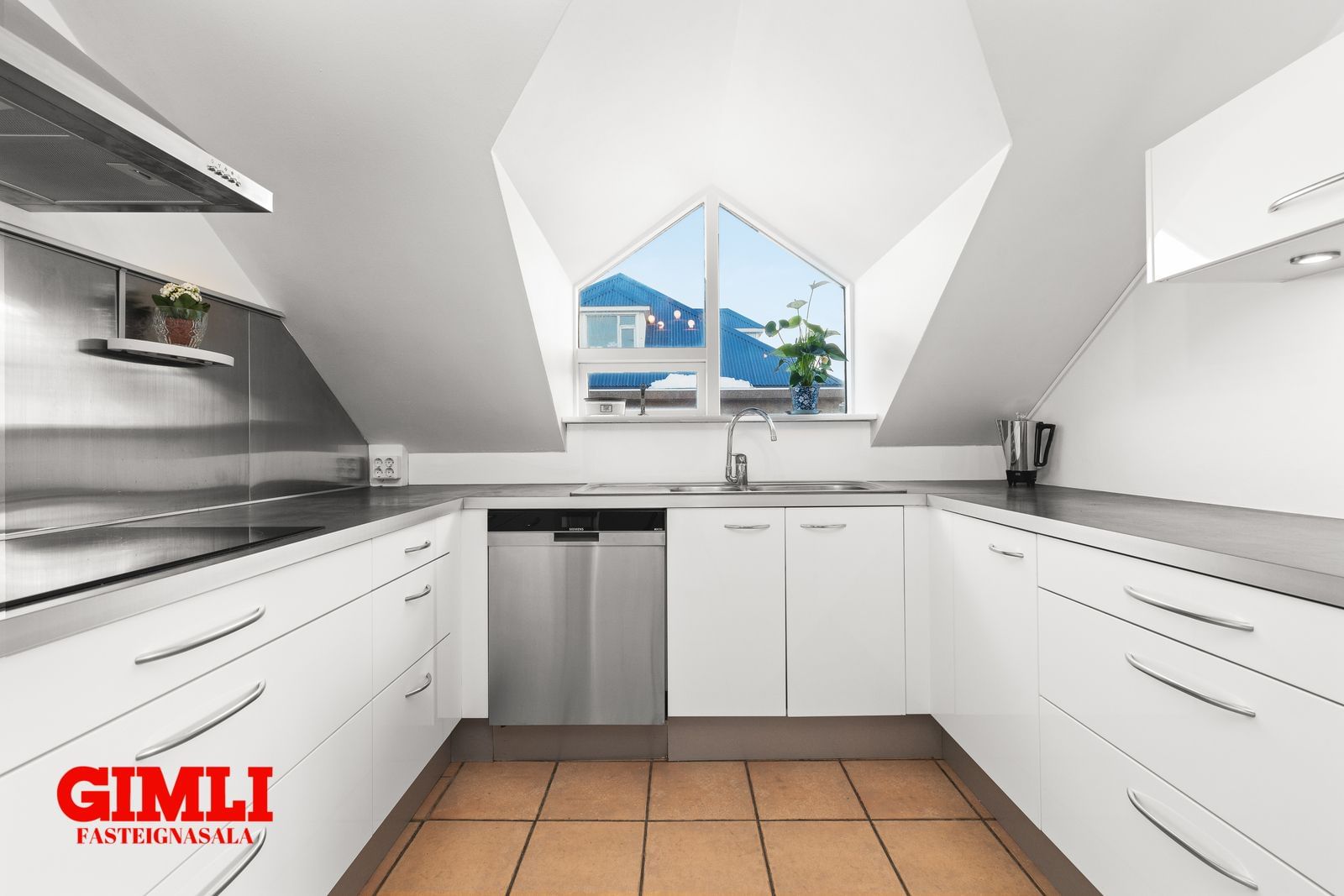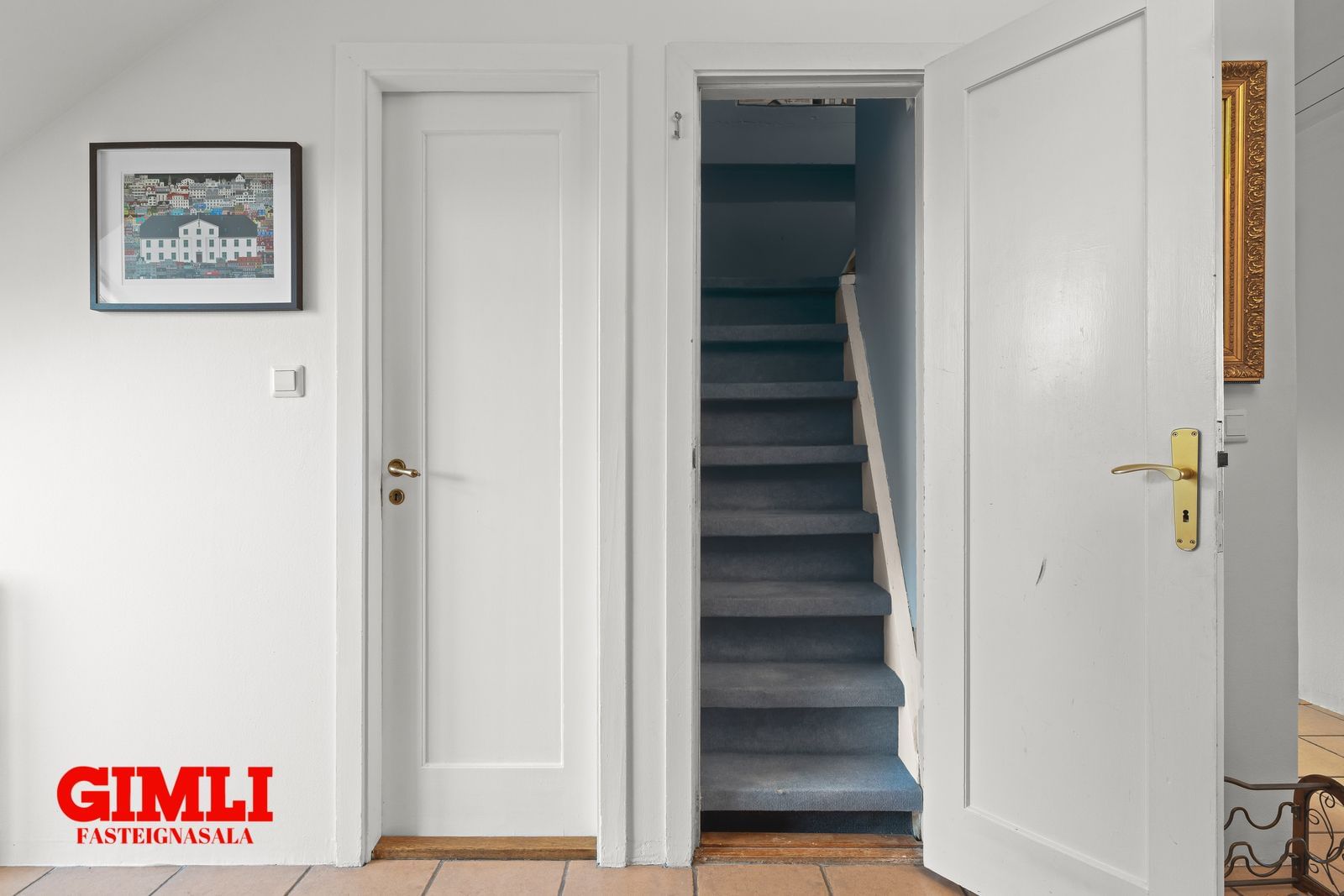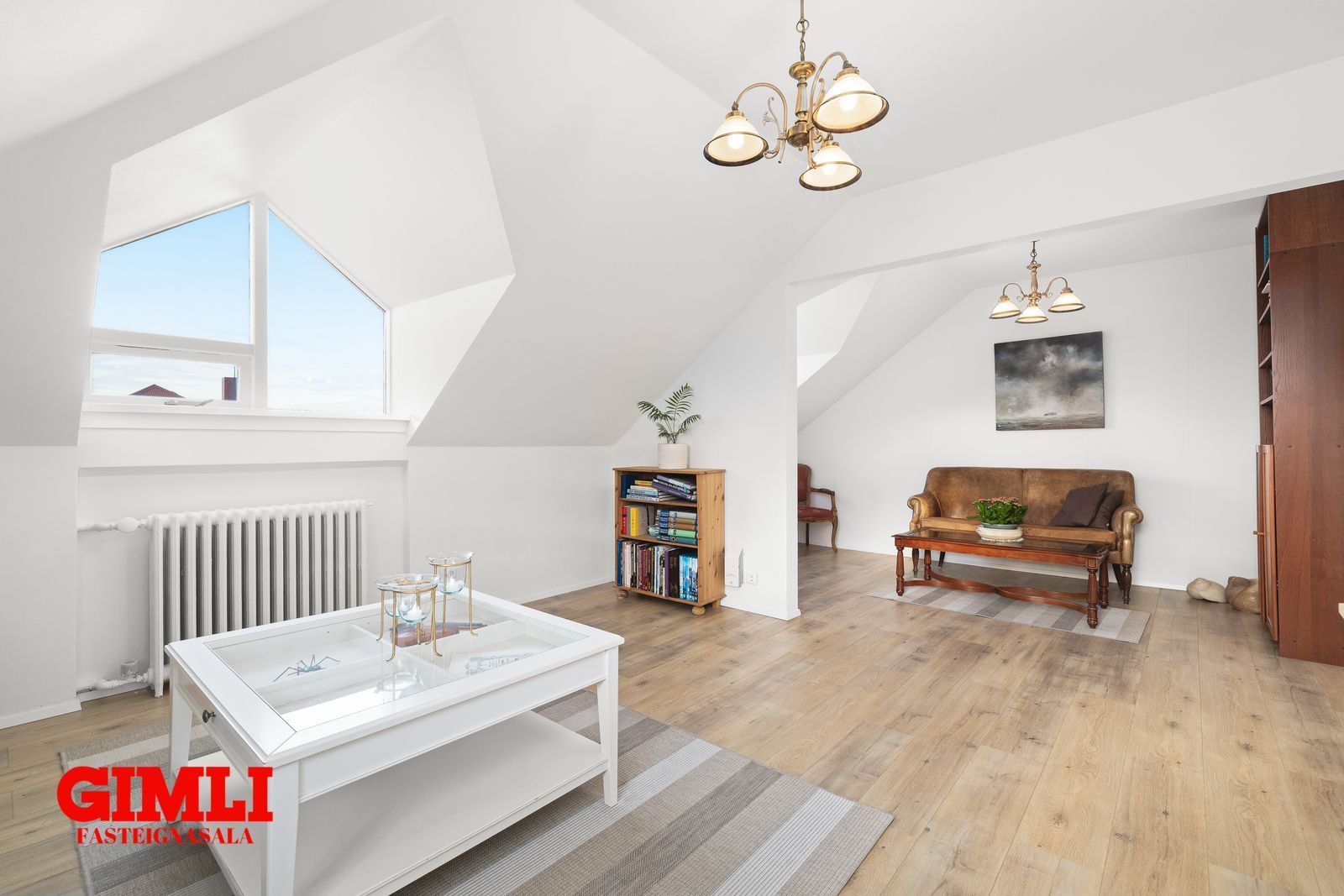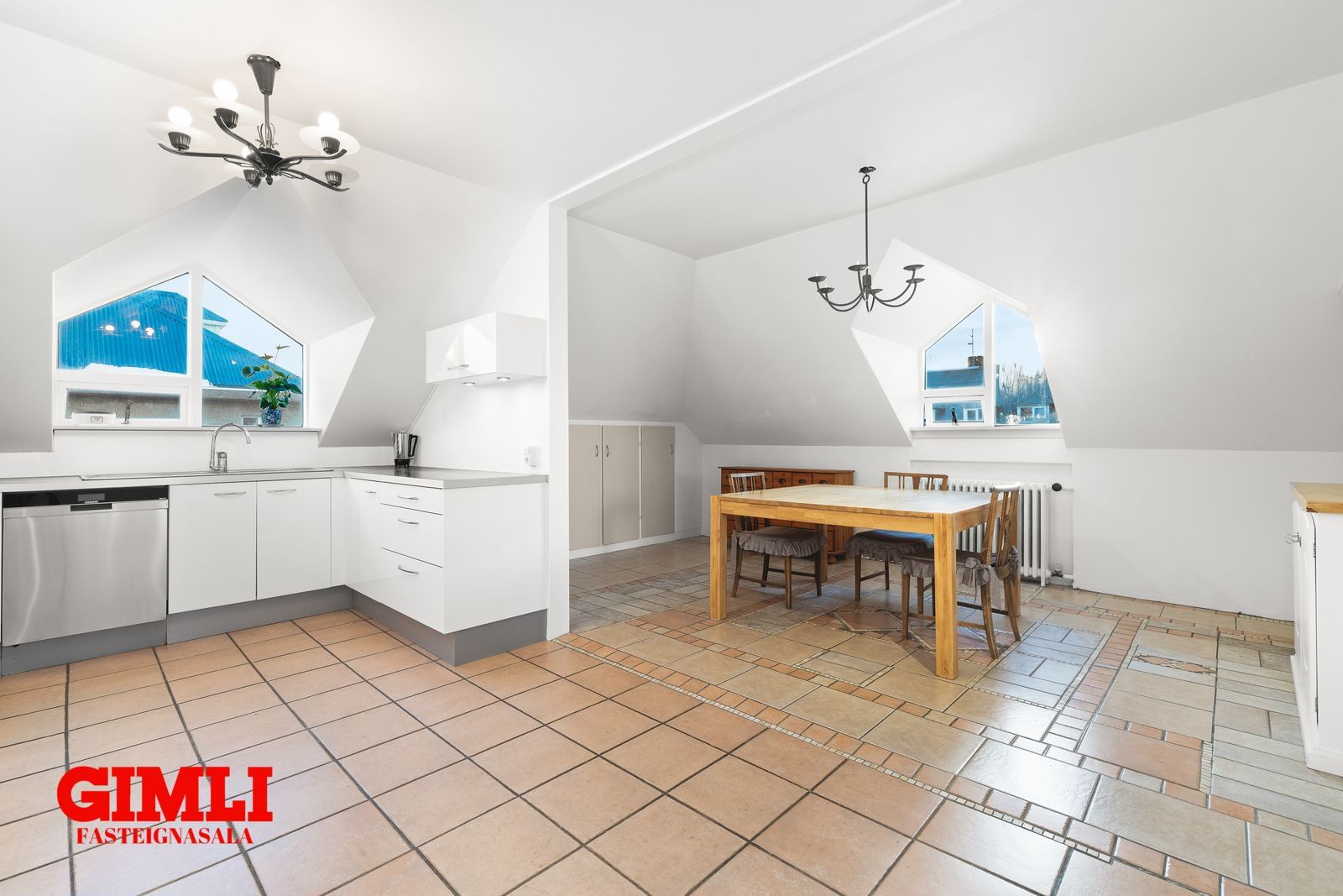 Auk þess fylgir rishæðinni geymslurými í kjallara.