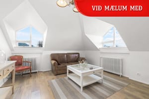 Fasteignamat 2026 85.800.000 mkr.Eins og skipulagið er í dag eru svefnherbergin 3 (voru fjögur ), opin borðstofa við hliðina á eldhúsi og tvær samliggjandi stofur. Auk þess eru tvö lítil leik- eða geymsluherbergi í risinu.Anddyri er teppalagt fyrir framan íbúðina.