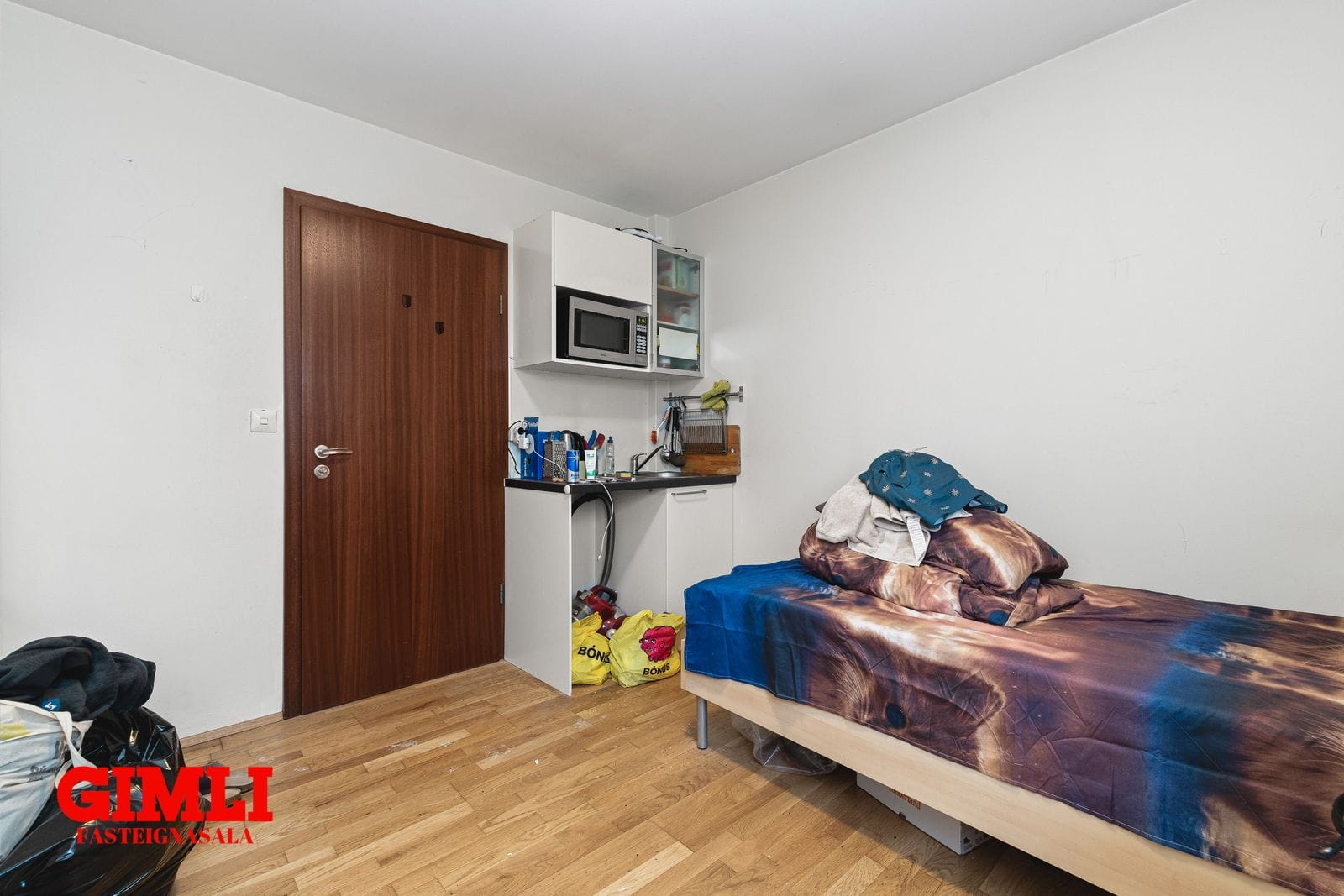 herbergi (skráð sem geymsla) með lítilli innréttingu og góðum glugga, hægt er að leigja herbergið út en það hefur aðgengi að snyrtinug og sturtu.