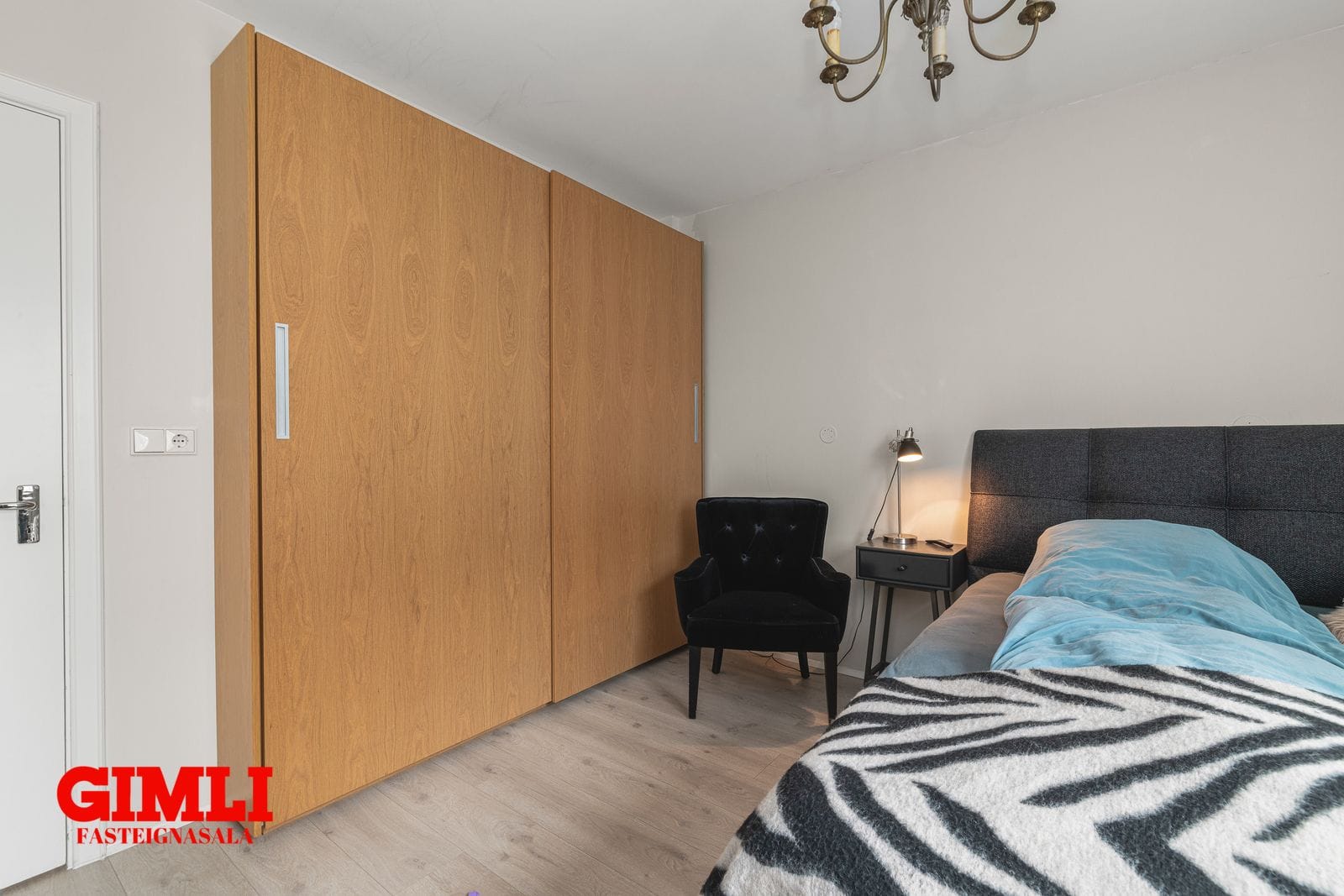Hjónaherbergi með góðum skápum.