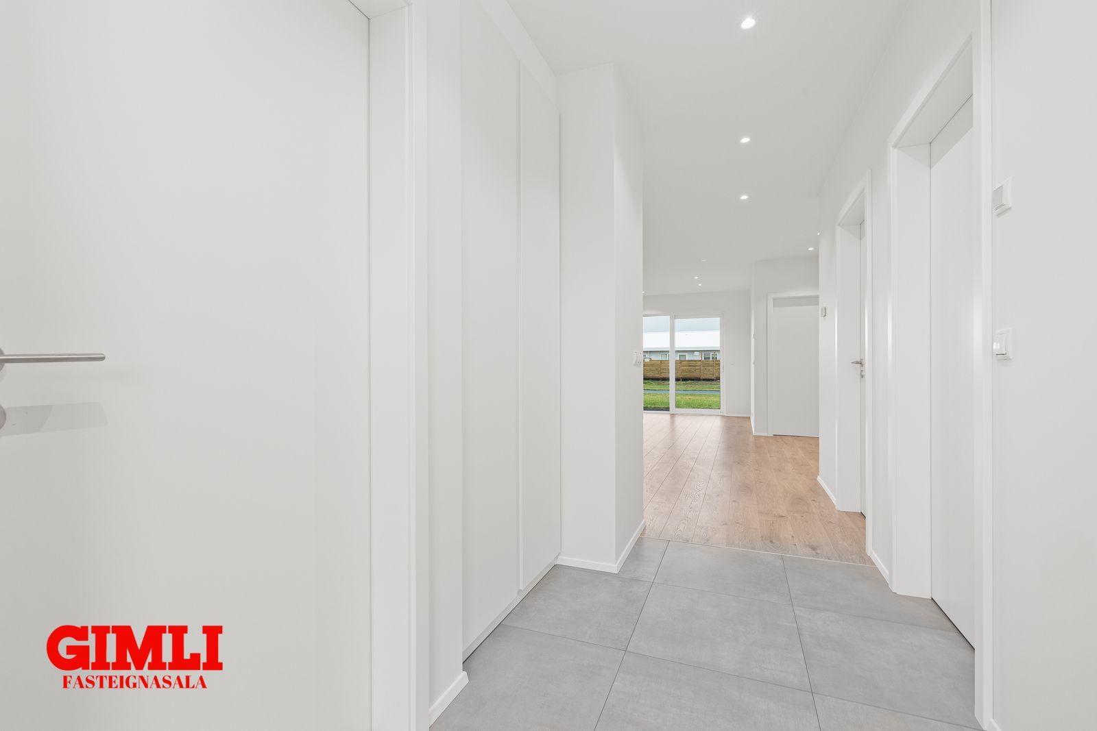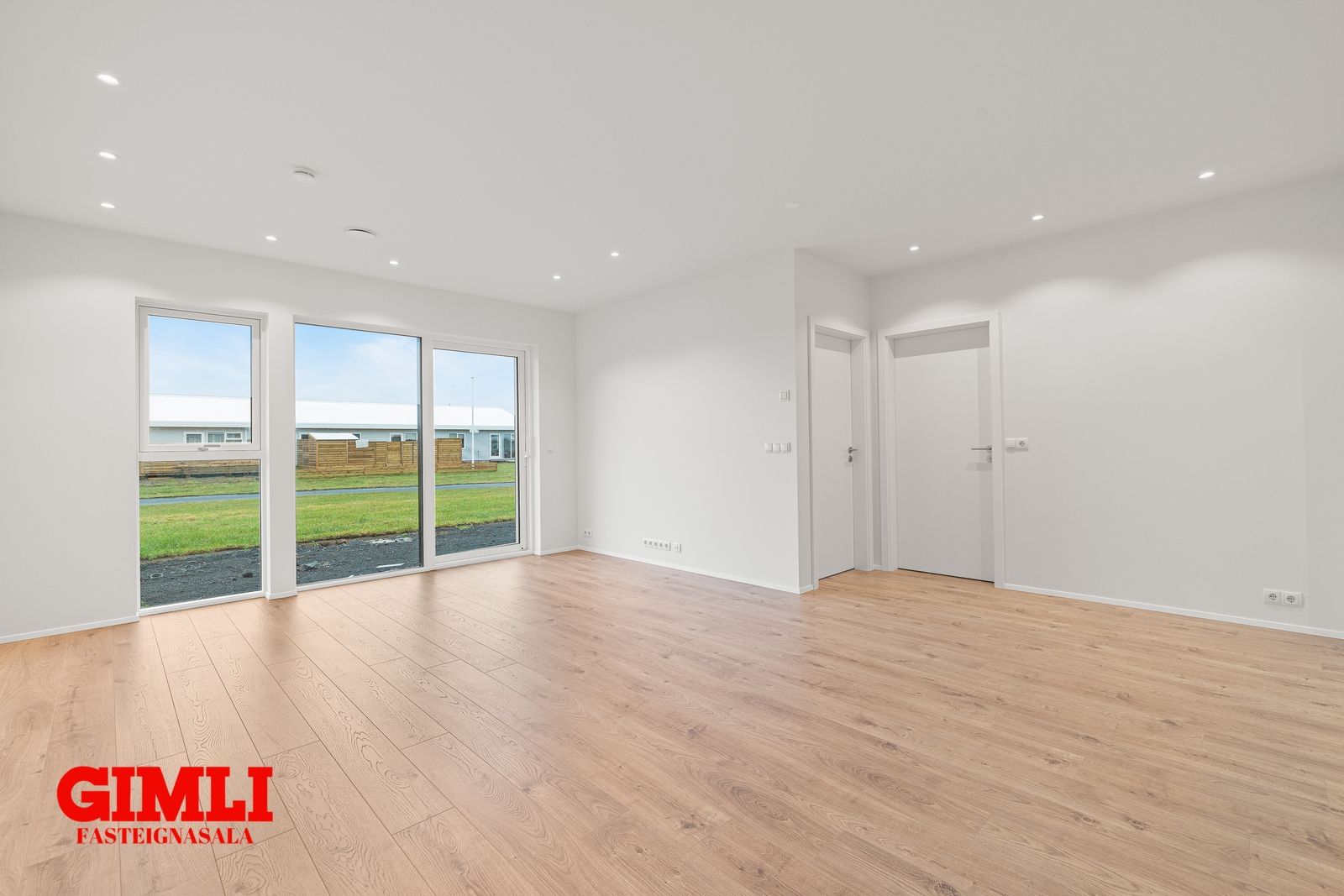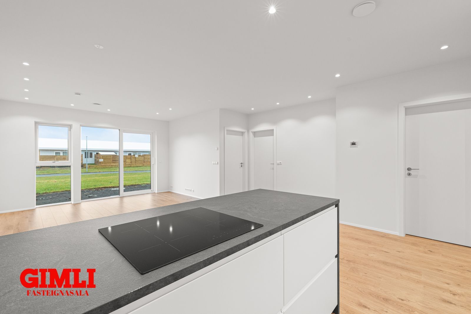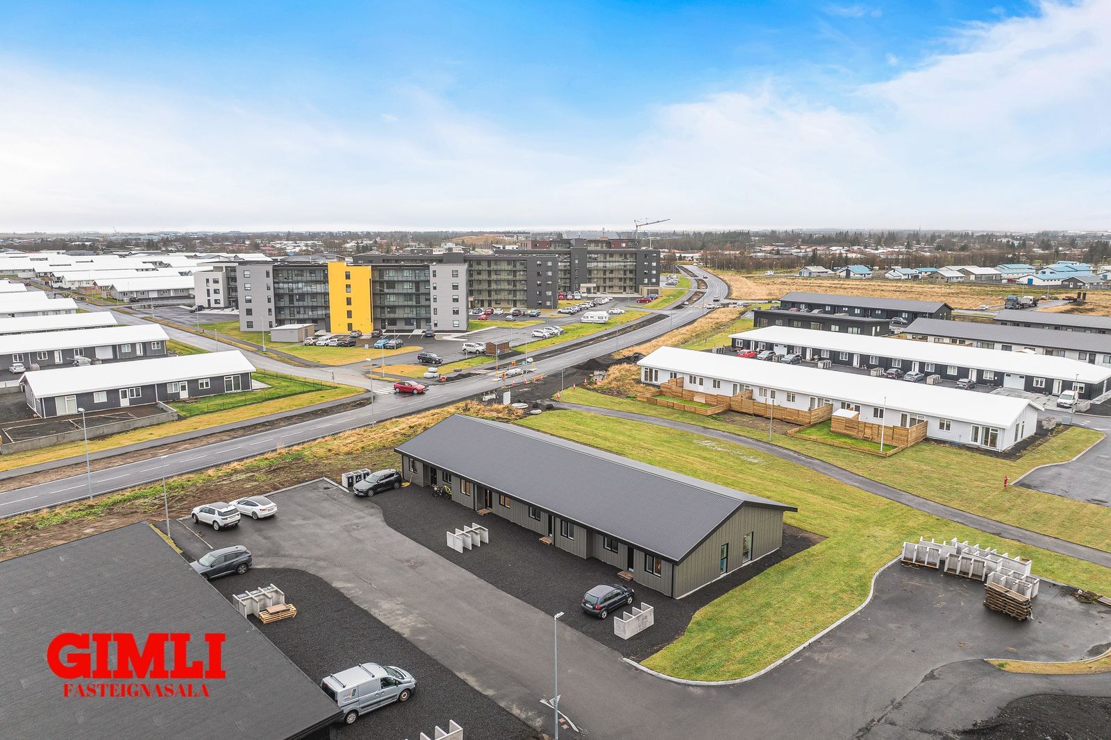 Um er að ræða nýtt 101 fm miðjuraðhús með 3 svefnherbergjum á Selfossi.Húsið er byggt úr timbri árið 2025 og er klætt að utan með grárri álklæðningu. Eignin skiptist í forstofu, 3 herbergi, eldhús/borðstofu/stofu í alrými, hvítri eldhúsinnréttingu með bakaraofni í vinnuhæð, eyju/tanga með spanhelluborði og góðu skúffum, hægt er að sitja við eyjuna. Innbyggður ísskápur og innbyggð uppþvottavél. Rennihurð út í garð þar sem búið er að tyrfa hluta af lóðinni. Innbyggð lýsing er í öllum rýmum með dimmer. Gólfhiti í öllu húsinu ásamt stýringum.