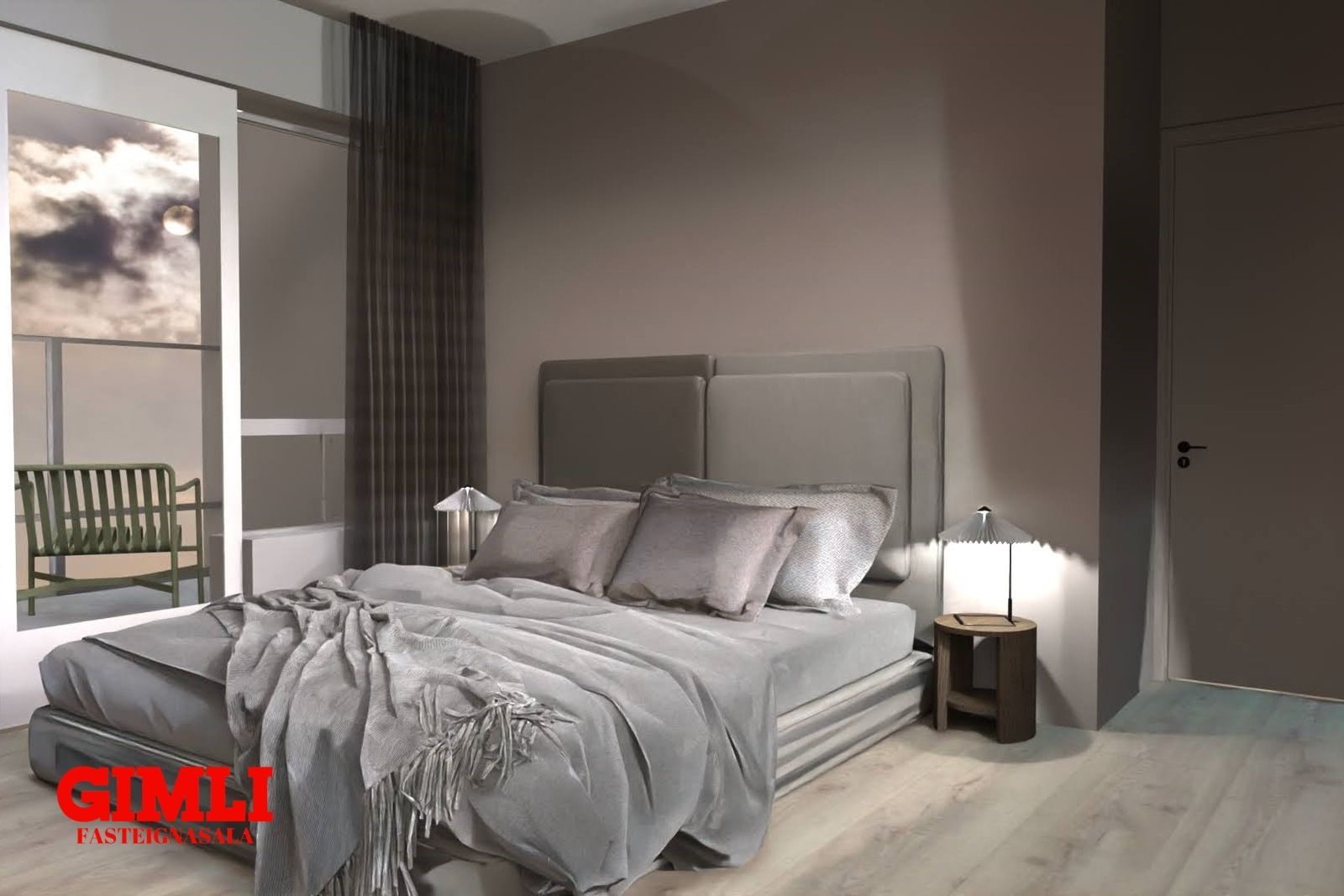 Baðherbergi með flísalagðri "walk in" sturtu með glerþili. Vegghengt salerni, sérsmíðuð innrétting með Dekton steini frá REIN á borði og speglaskápur. Ljósar 60x60 flísar á gólfi og sturtu. Handklæðaofn. Ljóst harðparket á gólfi í hjónaherbergi og fataherbergi.
