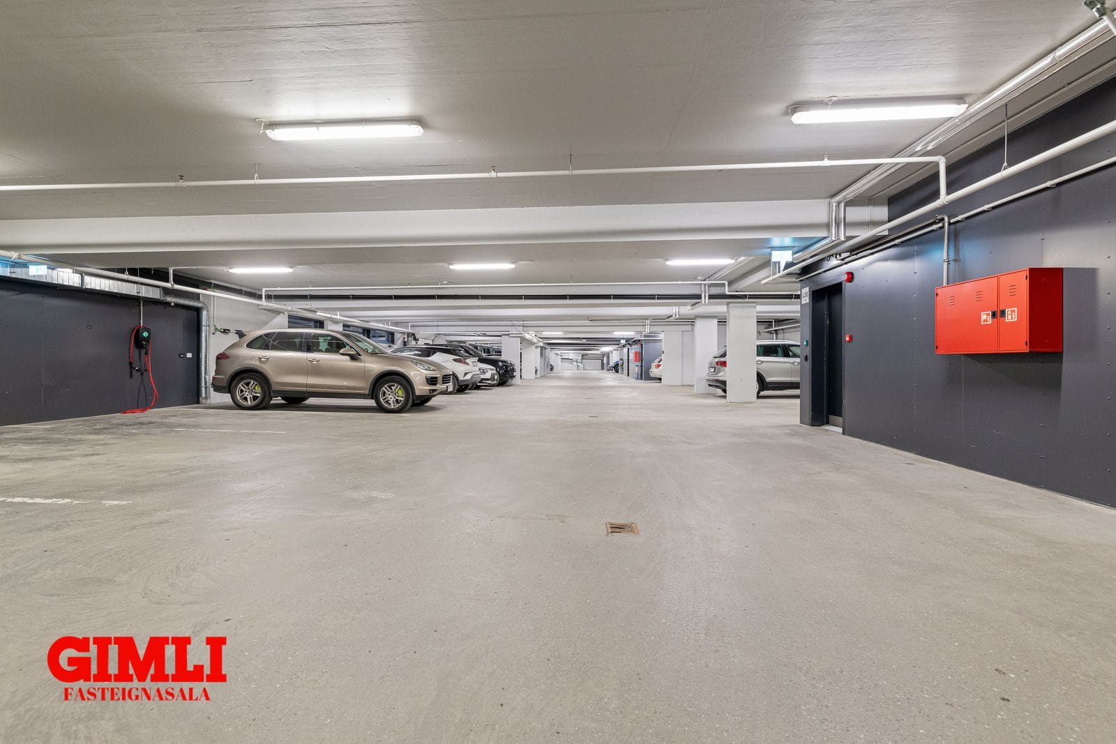 Íbúðinni fylgir stæði í upphituðu bílahúsi, rafhelðslustöð.
