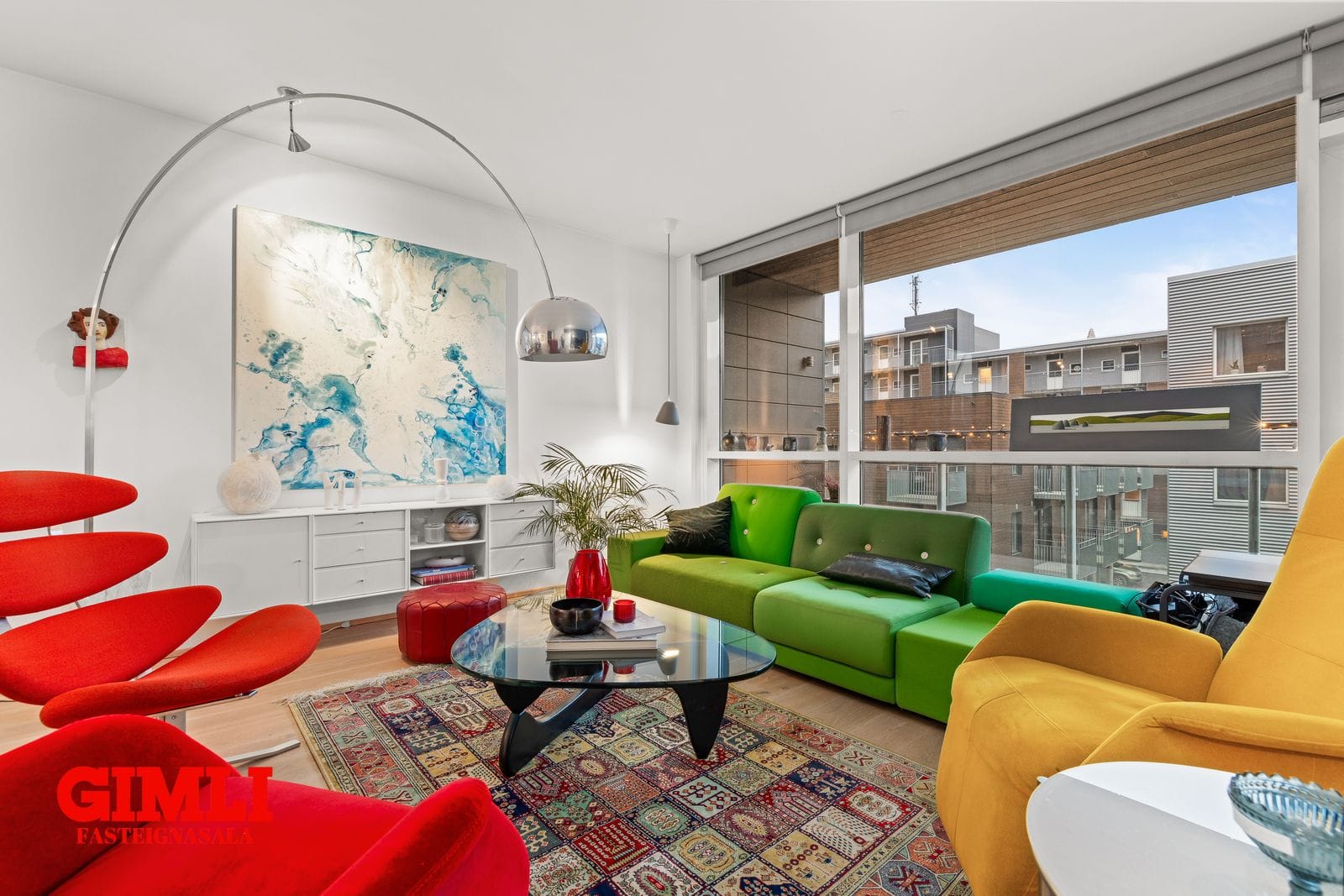 Gólfsíðum gluggum sem veita meiri birtu inní íbúðina.
