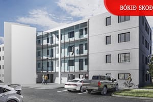 Gimli fasteignasala kynnir 4ra herbergja endaíbúð á annarri hæð með sérinngangi af svölum í vönduðu nýju lyftuhúsi. Eignin verður tilbúin til afhendingar í byrjun árs 2026. Íbúðin sem er 98,9 fm að stærð (4,6 fm geymsla innan íbúðar) skilast fullfrágengin með innréttingum frá HTH, án gólfefna á meginrýmum en gólf votrýma verða flísalögð. Gluggar og svalahurðir eru ál/tré frá Gluggatækni ehf. Innréttingar og skápar eru frá HTH. Eldhúsinnrétting er tvítóna, með dökkri viðaráferð á efri skápum og ljósum neðri skápum. Aðrar innréttingar eru ljósar. Heimilistæki frá Ormsson, helluborð, ofn, háfur og innbyggð uppþvottavél. Innihurðir eru með mattri hvítri áferð og eru yfirfelldar. Gólf á baðherbergi er flísalagt og veggir flísalagðir að hluta, flísar frá Álfaborg. Á baðherbergi er upphengt salerni, sturta, vegleg vaskinnrétting, speglaskápur og innrétting fyrir þvottavél og þurrkara. Húsið er byggt úr forsteyptum einingum með staðsteyptum milliplötum.