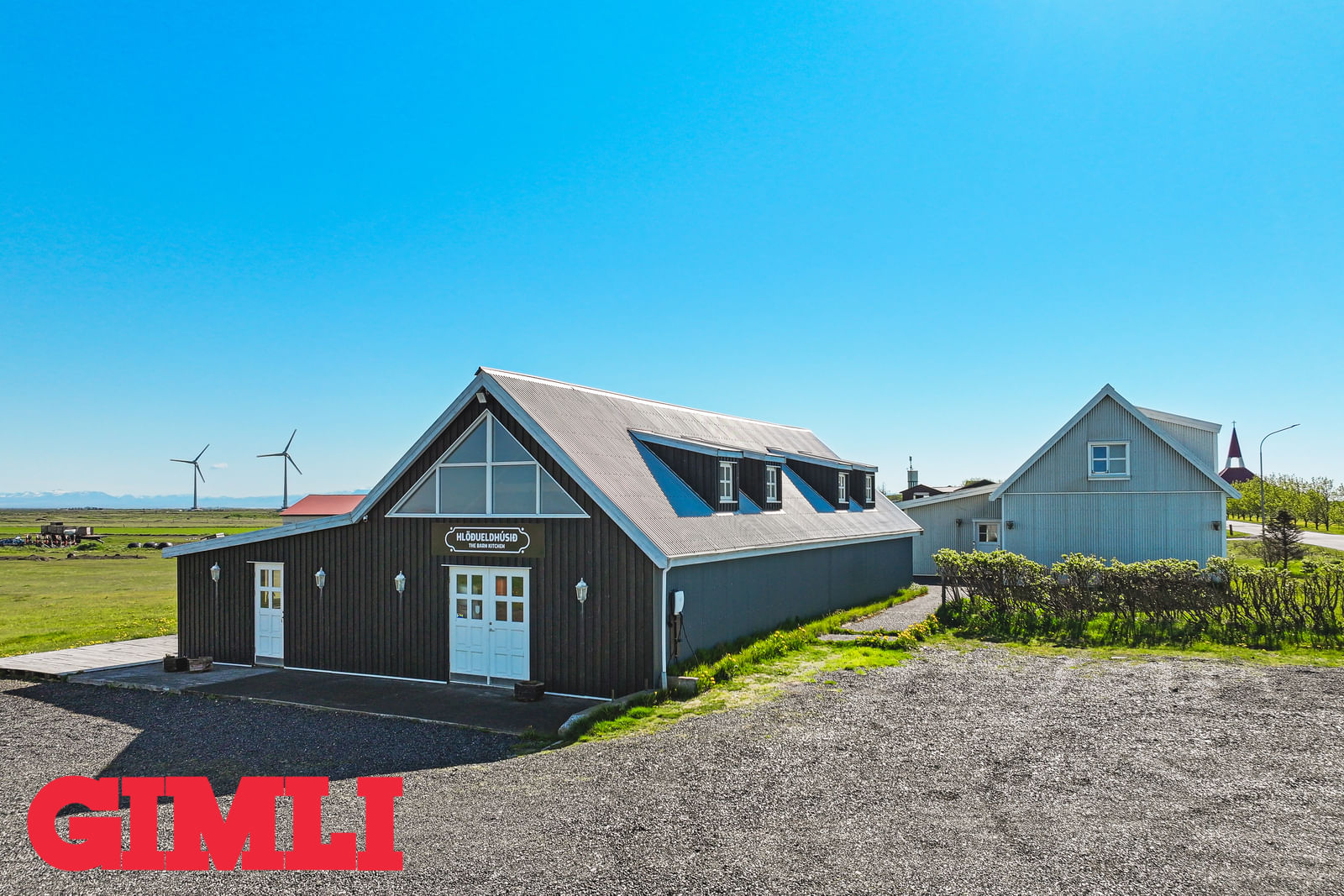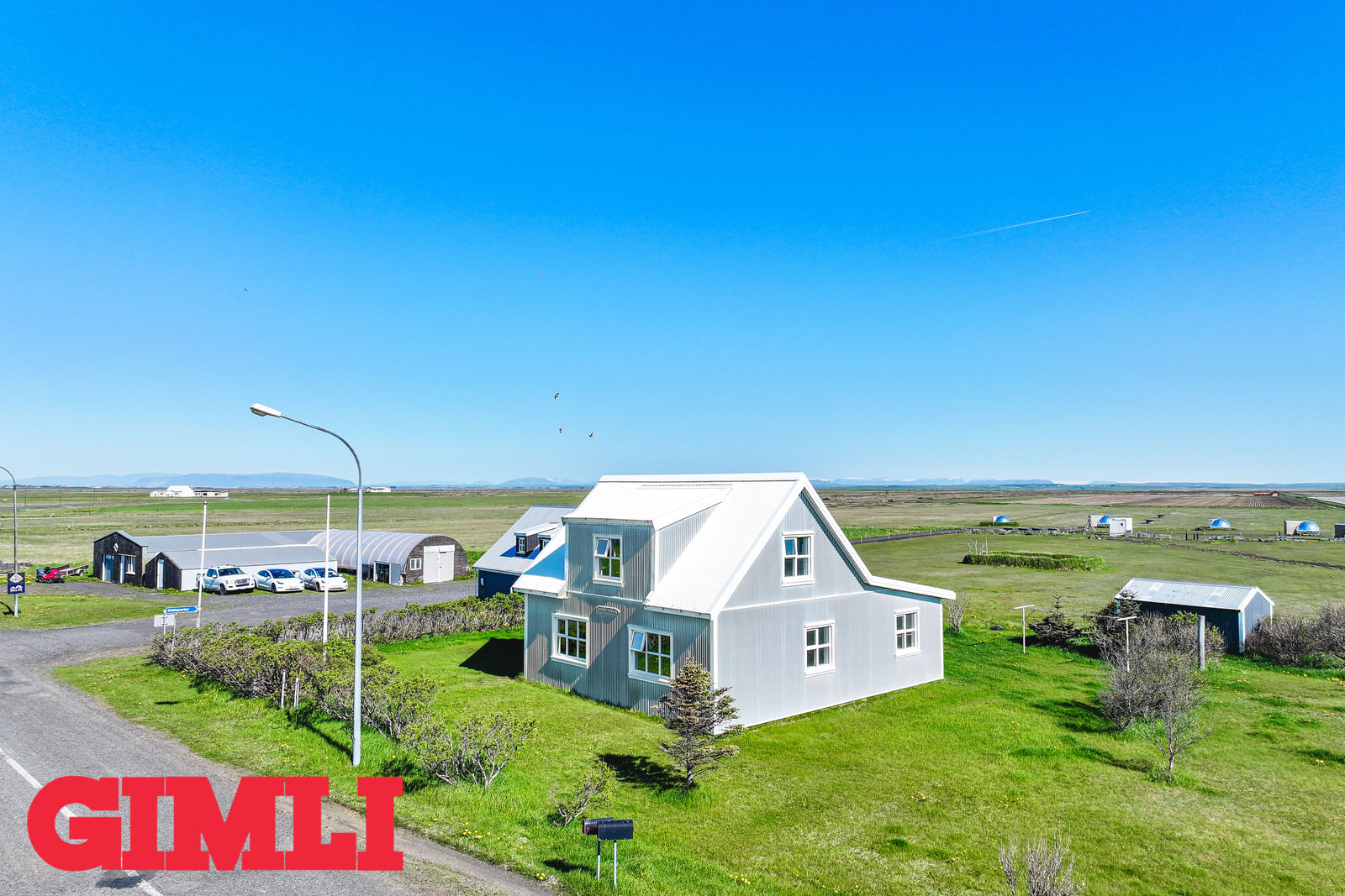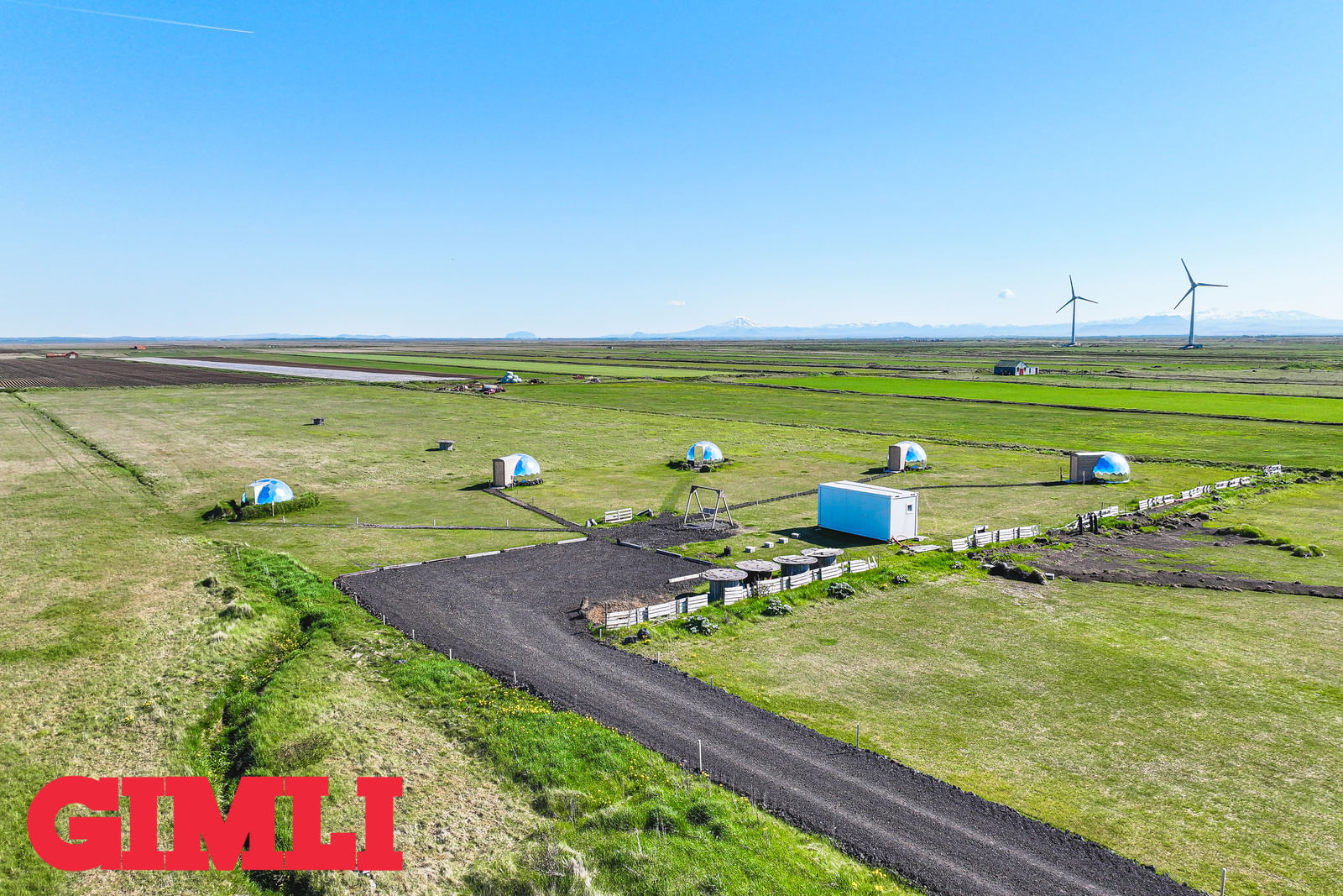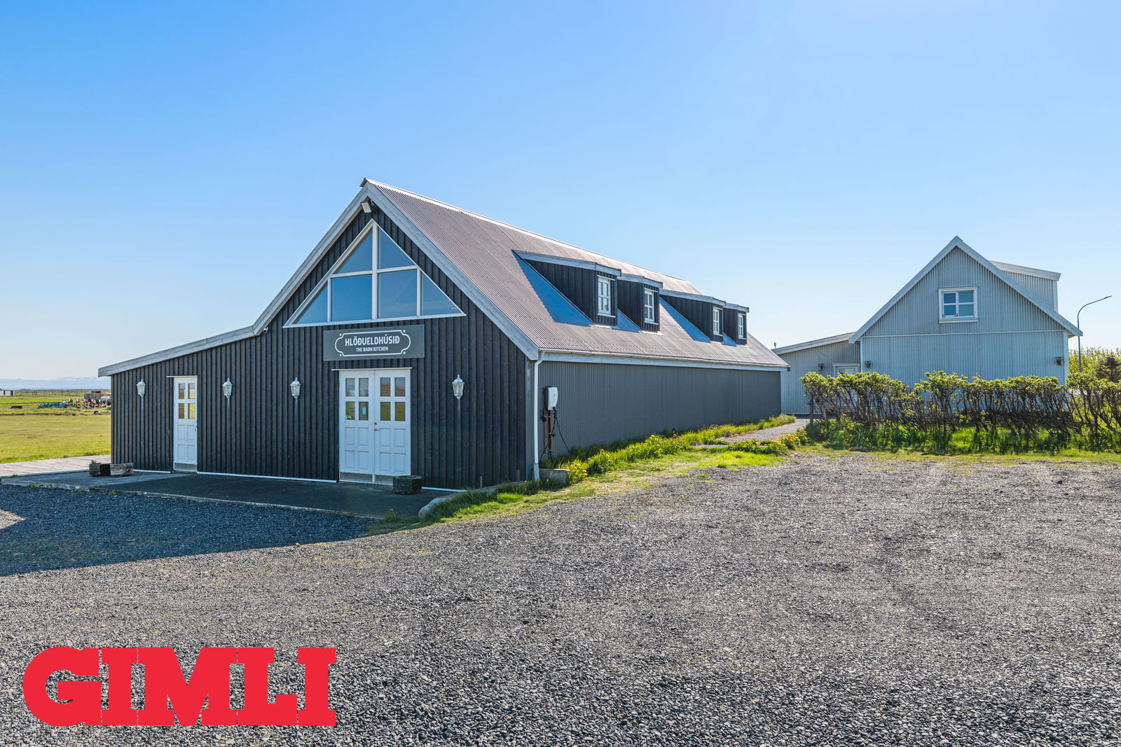 Veislusalur (Hlöðueldhúsið) í Þykkvabæ, ásamt íbúðarhúsi, fylgieignum og 5 glerkúluhúsum fyrir ferðamannagistingu. Hlöðueldhúsið er sérlega fallega innréttaður veislusalur með afar vel útbúnu veitingaeldhúsi með aðstöðu fyrir matreiðslunámskeið fyrir hópa og góðri snyrtiaðstöðu. Húsið er skráð 204,5 fm og er allt nýlega uppgert. Íbúðarhúsið er 100,2 fm að stærð á tveimur hæðum. Aðrar fylgieignir eru 146,2 fm geymsluhúsnæði sem hefur að hluta til verið byrjað að innrétta sem íbúðarhúsnæði, 49 fm geymsluhúsnæði og 77,5 fm bogaskemma sem nýtt hefur verið sem gróðurhús en býður upp á mikla möguleika.