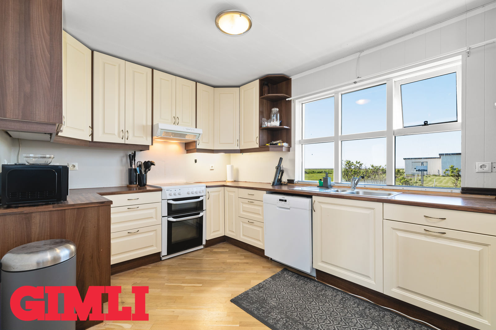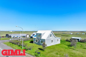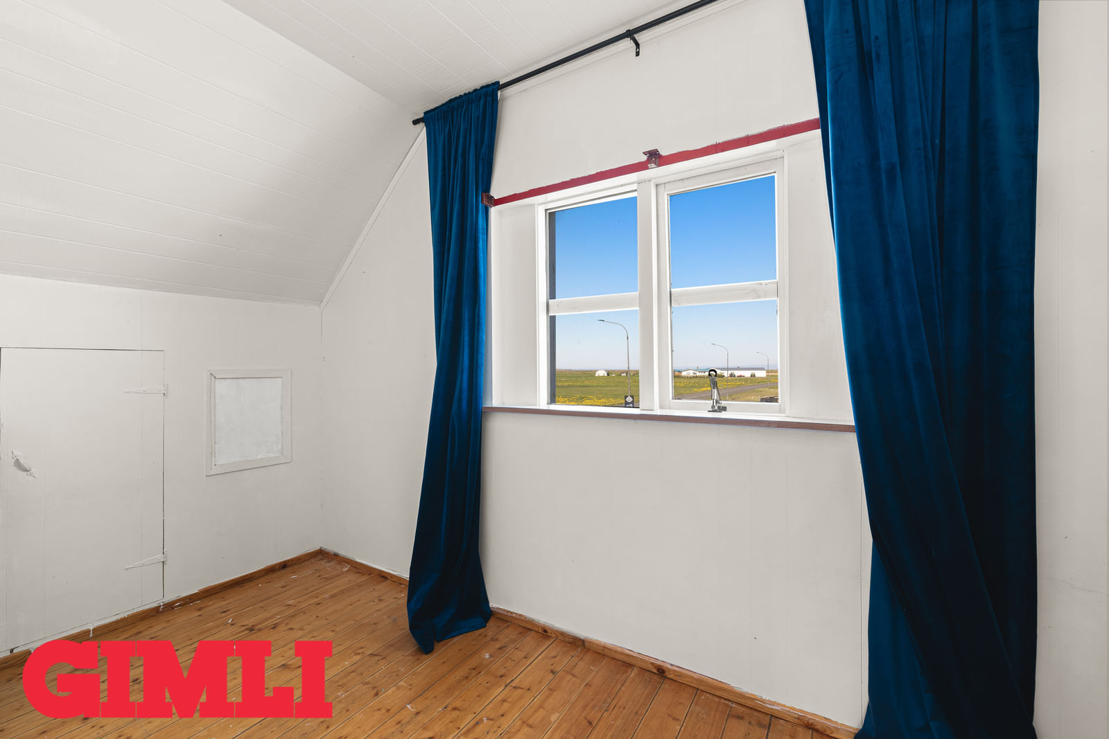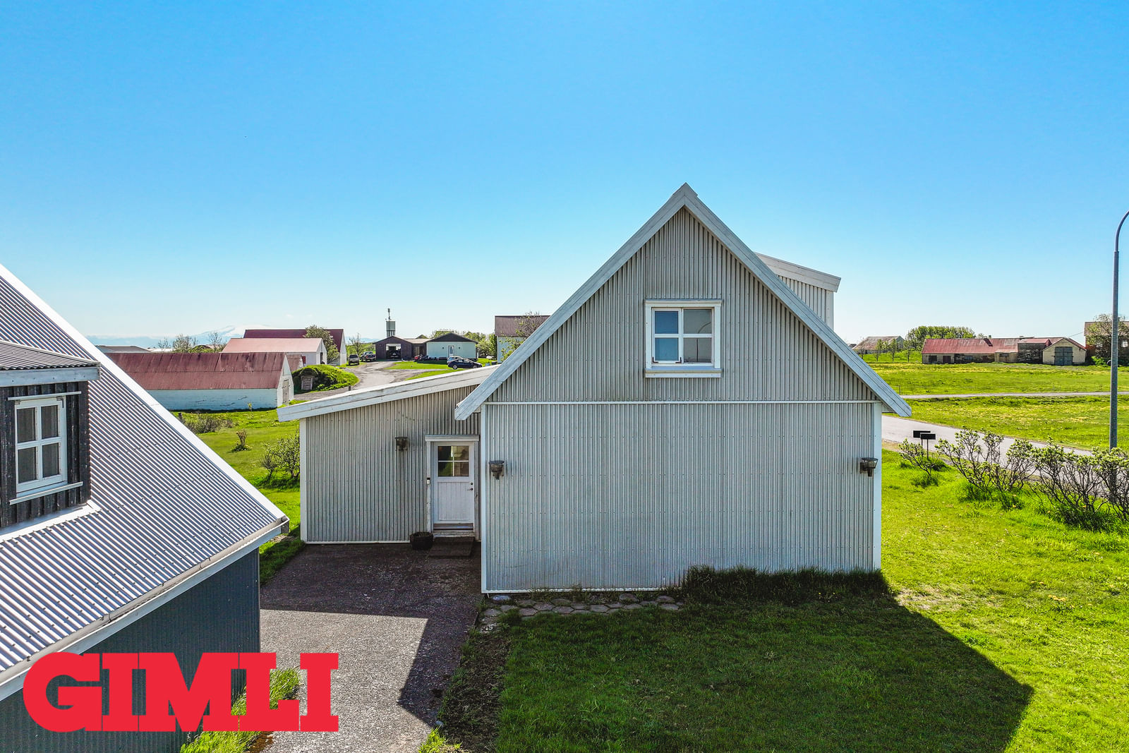 Íbúðarhúsið er 100 fm tvílyft bárujárnsklætt timburhús í góðu standi sem skiptist þannig að neðri hæðin samanstendur af forstofu, baðherbergi með sturtu, plássgóðu þvottahúsi, góðu eldhúsi og stofum. Efri hæðin er með fjórum herbergjum með fallegu útsýni.