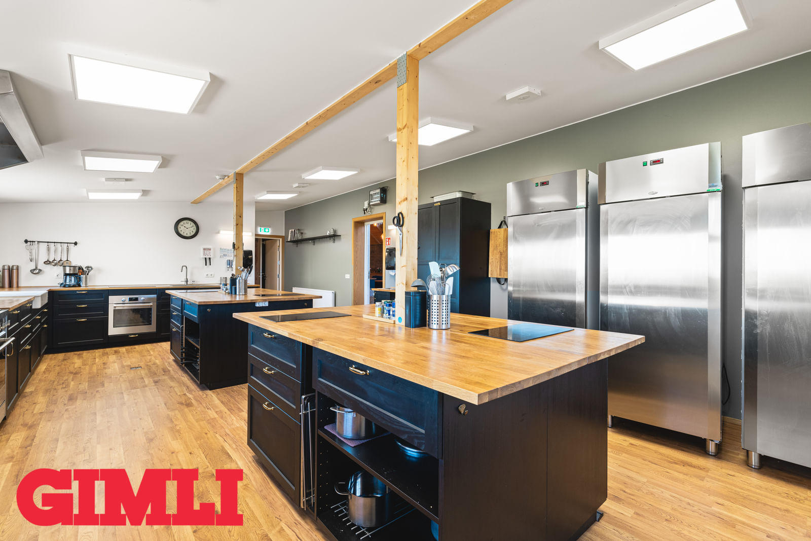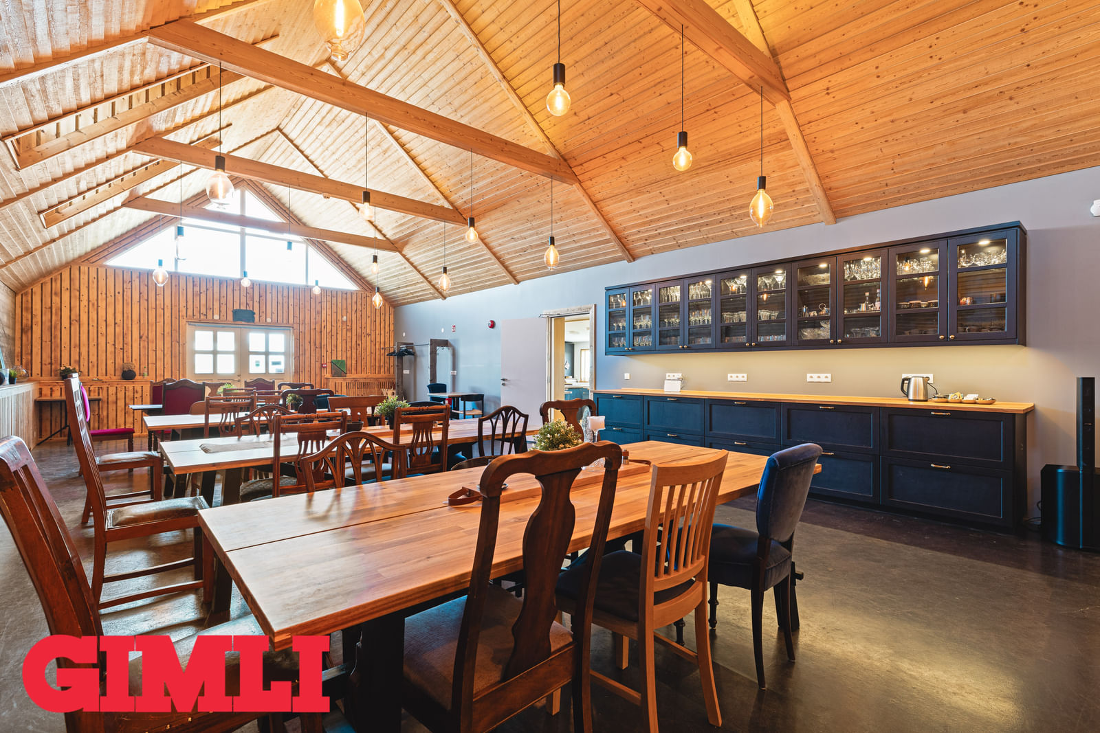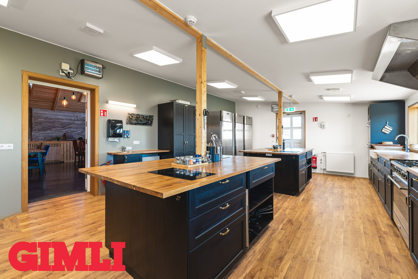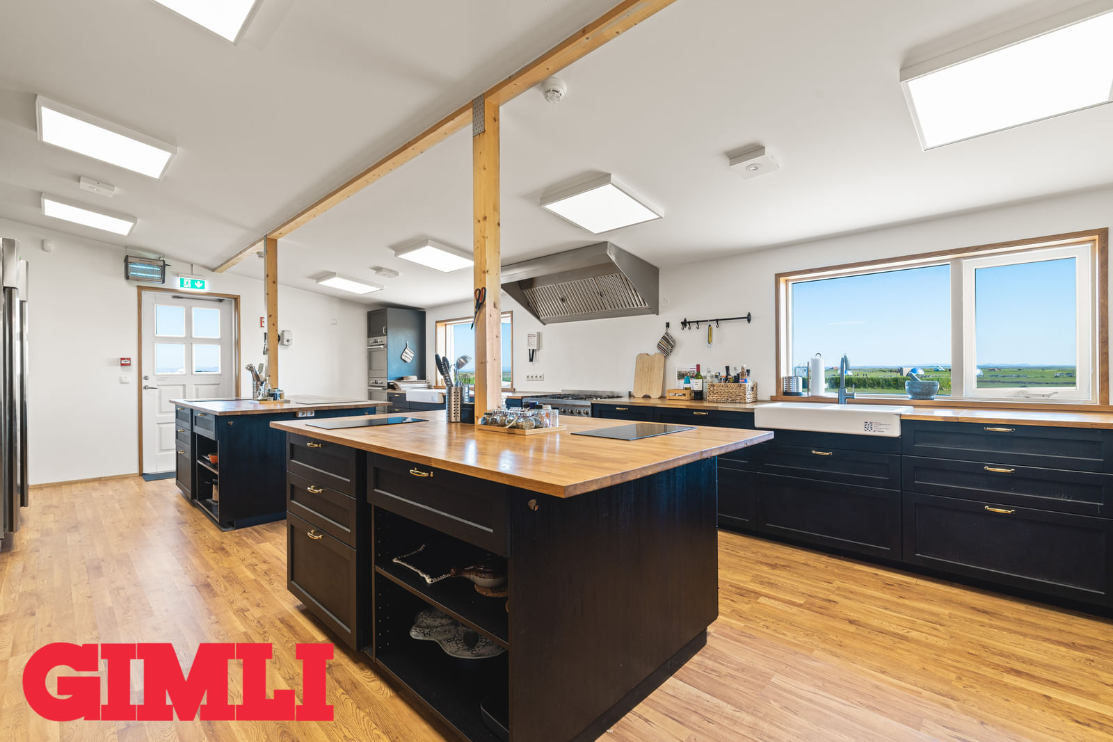 Veitingahúsið /samkomuhúsið sem er 204 fm og hefur verið nýtt sem hús til samkomu og námskeiðahalds er allt endurnýjað að utan sem innan og skiptist í stóran veitingasal með mikilli lofthæð, bar í því rými.  Stórt eldhús með sex eldunarstöðvum, stór eyja og allt mjög vel tækjum búið. Gott loftræstikerfi og öll tæki sem afkastamikil eldhús þurfa.